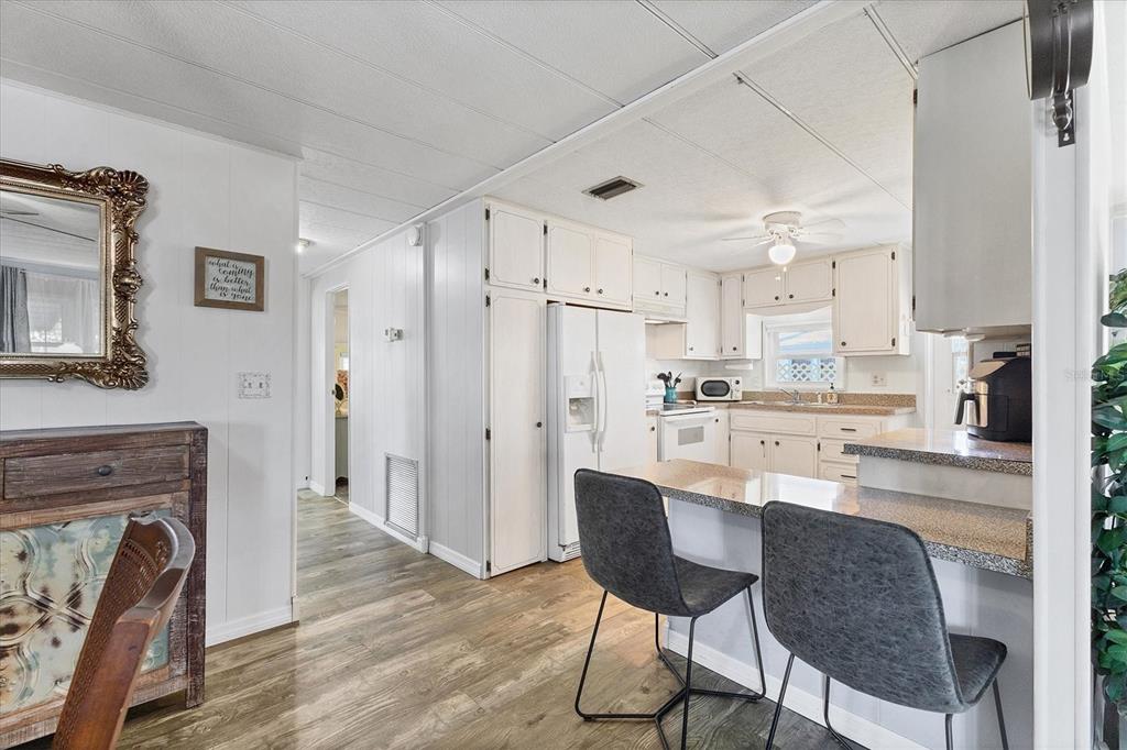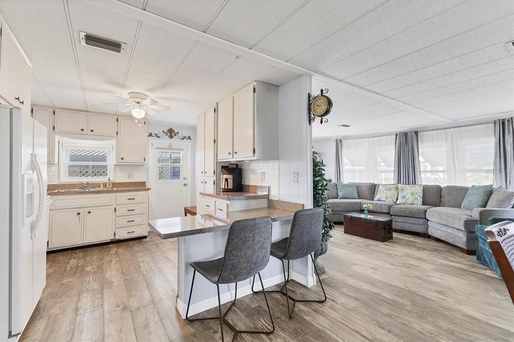 Welcome to your dream home or winter getaway in the highly sought-after tidevue estates, a 55+ land owned community. this charming corner lot features an inviting open front porch and a carport, perfect for creating an outdoor living room. the property even includes a golf cart for your convenience! step inside to find a cozy florida room and enjoy the beauty of native florida landscaping, complete with three newly planted trees. the home has updated electrical and plumbing systems, with the ac unit replaced in 2020. the roof has been resealed, and the sub-flooring has been replaced, with laminate flooring throughout with the exception of carpet in the bedrooms. the open floor plan offers a spacious kitchen with a breakfast counter, neutral cabinetry, and plenty of storage. the home is partially furnished, making it move-in ready. you'll find two sheds for additional storage, and the primary bedroom features three closets and an ensuite bathroom with a walk-in shower. located within walking distance to the recreational center, this home offers both comfort and convenience. low hoa of only $600 annually. pets are not permitted. plenty of activities to keep you busy in this community. take a water aerobics class in the solar-heated community pool or work on your tan. the community library has free wi-fi connection. updated fitness center. meet friends and make new ones for a game of indoor pickle ball, bocce ball, or shuffleboard. join the golf league. take a bike or golf cart ride to veteran's park to watch the wildlife and sunset. ellenton premium outlet mall, restaurants, and medical facility's just minutes away. easy access to i-75. explore sarasota and visit university town center mall, st. armand's circle, selby botanical gardens, and the ringling mansion & museum. not to mention a short drive to our beautiful gulf beaches.1210 44TH AVENUE E, ELLENTON, FL 34222