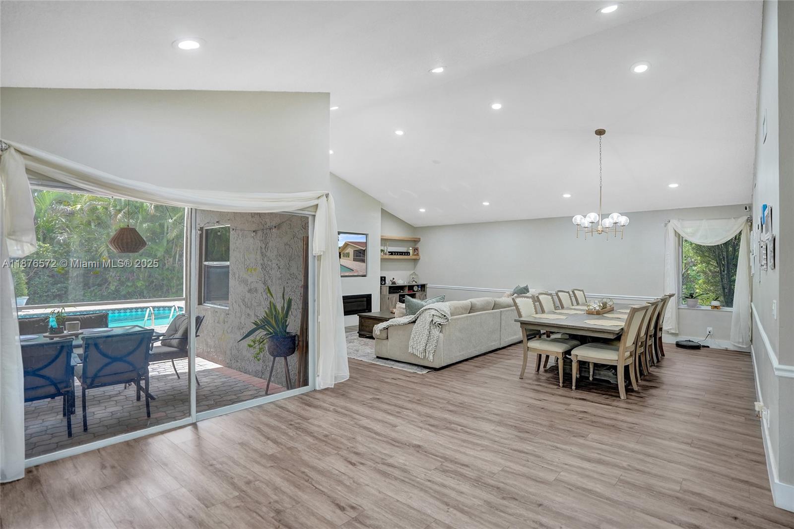 Cul-de-sac pool home in the desirable rock creek community of cooper city/hollywood! this 3-bed, 2-bath gem sits on a private 13,000+ sq ft lot backing onto a greenbelt. vaulted ceilings, ceramic tile floors in bathrooms/lpv in all other living areas, create a warm, open feel. french doors lead to a screened patio and fully paved pool deck—perfect for entertaining. updated kitchen and living areas feature quartzite waterfall counters and 2022 appliances. roof replaced 7 years ago. 2-car garage, $200 quarterly hoa with access to parks, tennis center, and trails. zoned for top-rated schools and close to dining, shopping, and highways. private cul-de-sac park, illuminated walking trail, community pool, tennis, basketball and gym.12100 PARK DR, COOPER CITY, FL 33026