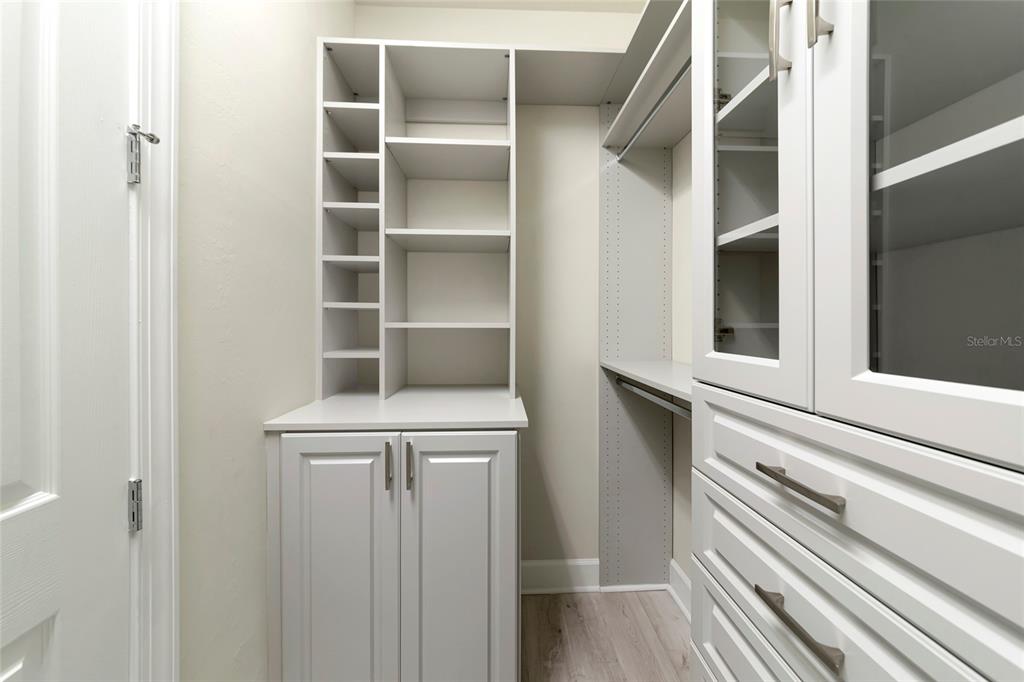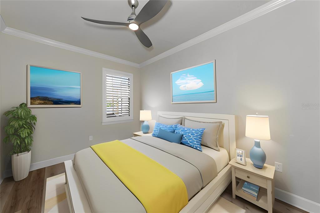 Split Bedroom Walk-In Closet(s)Ceiling Fan(s) High Ceilings Stone Counters Thermostat Open Floorplan Window TreatmentsCrown Molding Primary Bedroom Main FloorExterior Features: