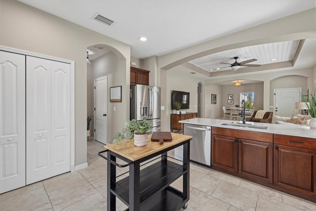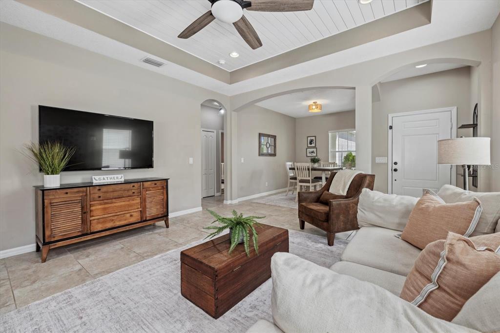 Split Bedroom Walk-In Closet(s)Ceiling Fan(s) Eating Space In Kitchen Stone Counters Thermostat Open Floorplan Window Treatments Solid Surface Counters Tray Ceiling(s)Exterior Features: