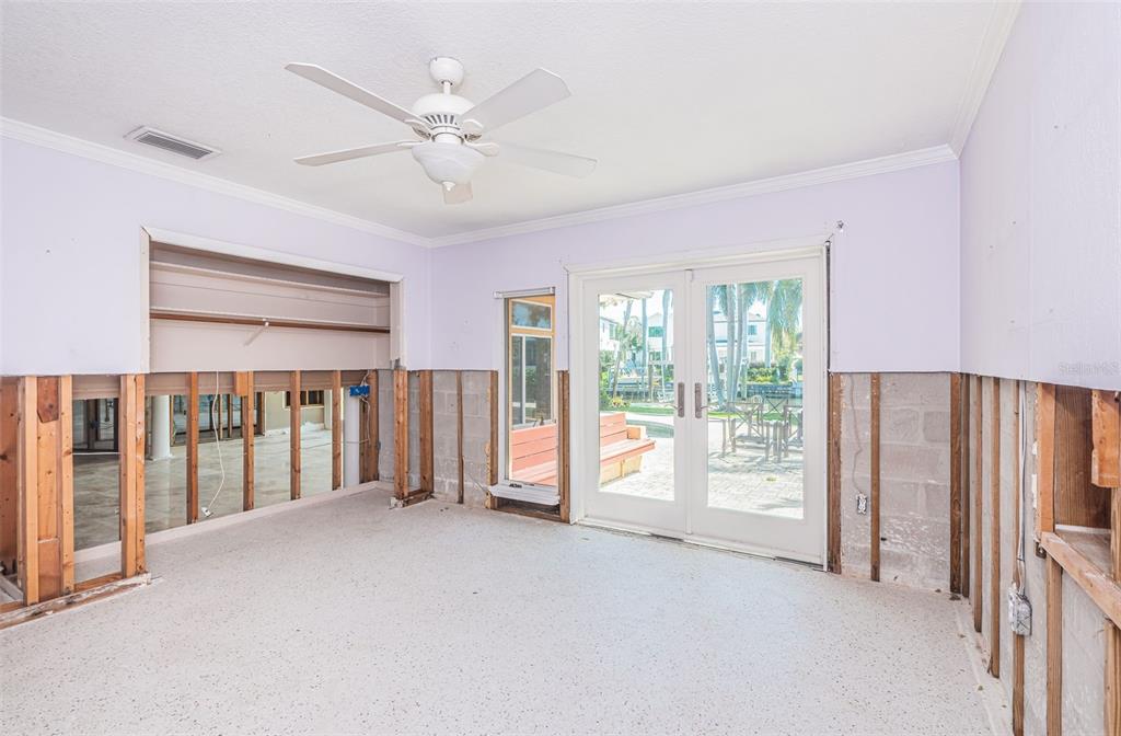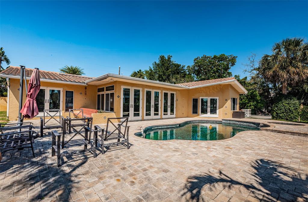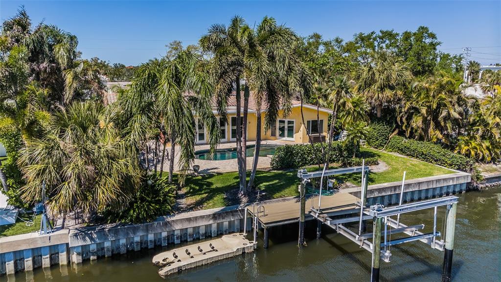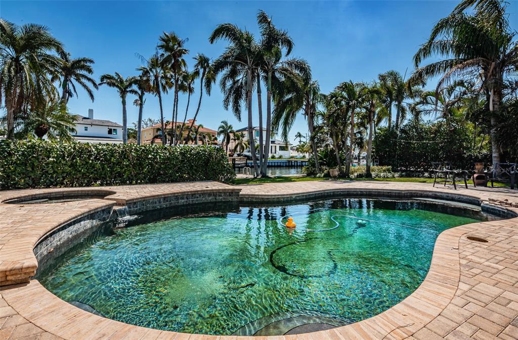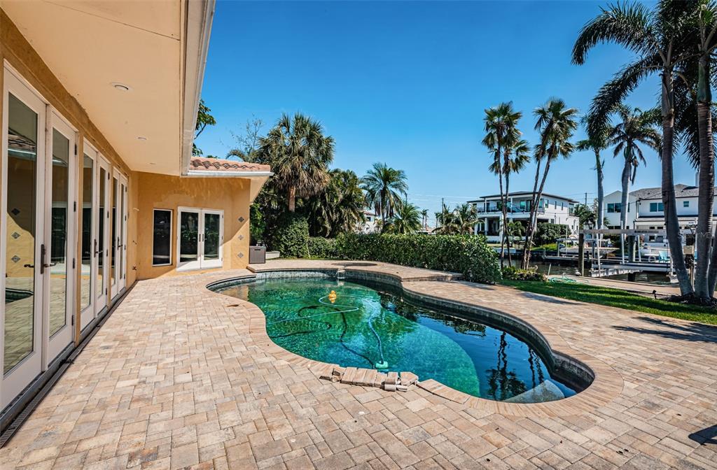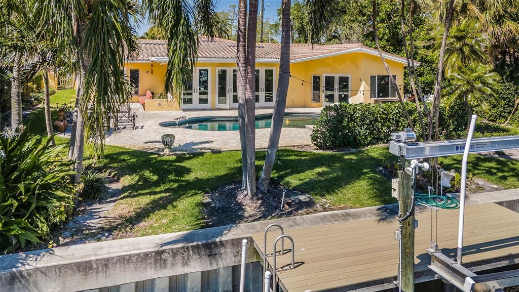 Opportunity abounds at this spectacularly located eden isle property with 80 waterfront feet on a canal with access to tampa bay for most low- to medium-profile craft at snell isle-overlook bridge. this exceptional neighborhood is close to downtown st petersburg and all of its social, cultural and recreational activities. either renovate the existing 3-bedroom, 2-bath 2,144 sf house with integral 2-car garage with access to side yard and impeccable landscaping, or raze it and raise up a completely new structure to your specifications. flood damage from fall 2024 hurricanes has been remediated via drywall removal, and this blank canvas is waiting to become your dream home. new dock decking at the seawall provide access to a 5-year-old operational, 15,000 lb boat lift. the current house has a split bedroom plan featuring a large primary suite with walk-in shower and separate wc. access the pool deck and back yard from the primary bedroom via a double french door. the 2nd and 3rd bedrooms share a specious hall bath with tub. the home boasts a large, open-concept kitchen, sunny living-dining area with impact-rated doors leading to a lovely, custom brick paver pool deck and lounge area. the pool and spa were re-furbished in 2018. mature landscaping in the front yard skirts a brick paver semi-circular driveway. exterior is stucco over concrete block construction with terra cotta-style concrete tile roofing (2011). this property to be sold strictly as-is. sellers' personal items do not convey. room sizes approximate. buyer's agent to verify.1233 EDEN ISLE NE, ST PETERSBURG, FL 33704