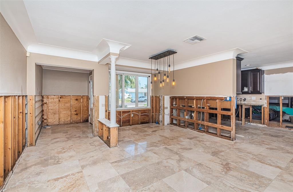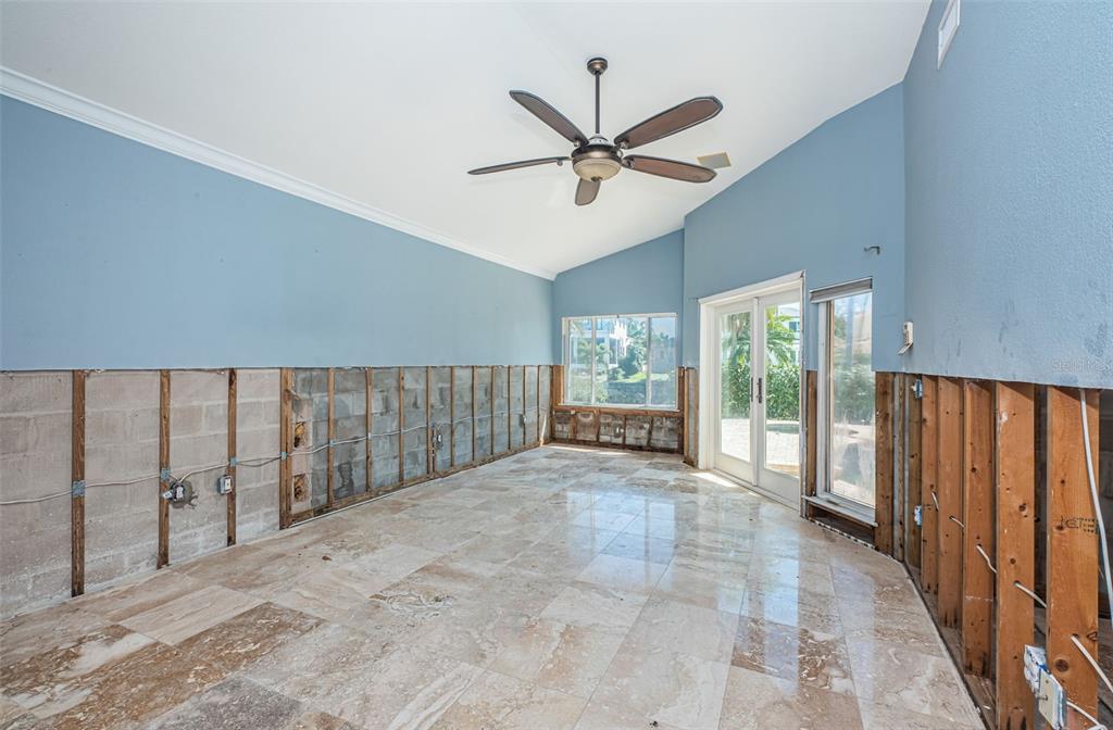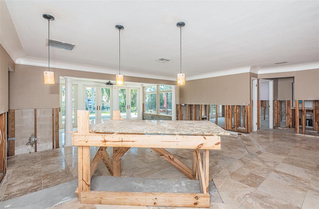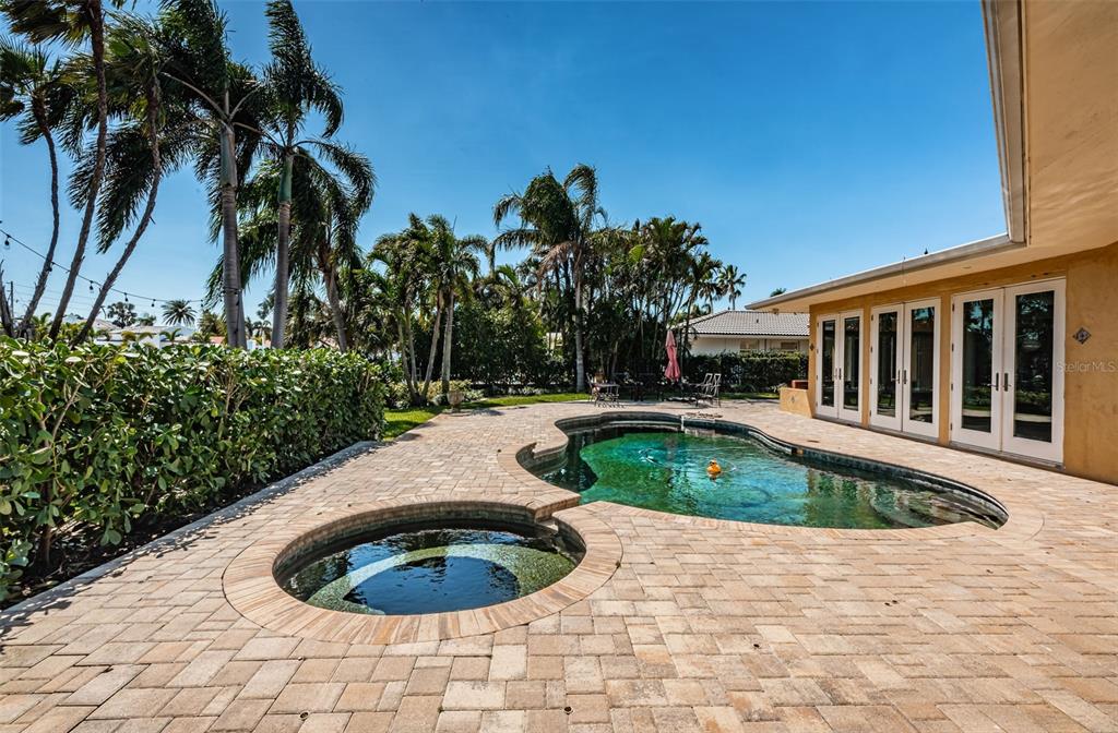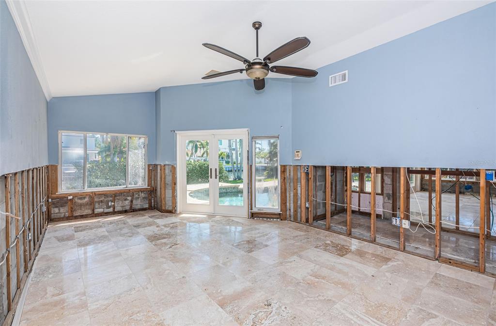 Opportunity abounds at this spectacularly located eden isle property with 80 waterfront feet on a canal with access to tampa bay for most low- to medium-profile craft at snell isle-overlook bridge. this exceptional neighborhood is close to downtown st petersburg and all of its social, cultural and recreational activities. either renovate the existing 3-bedroom, 2-bath 2,144 sf house with integral 2-car garage with access to side yard and impeccable landscaping, or raze it and raise up a completely new structure to your specifications. flood damage from fall 2024 hurricanes has been remediated via drywall removal, and this blank canvas is waiting to become your dream home. new dock decking at the seawall provide access to a 5-year-old operational, 15,000 lb boat lift. the current house has a split bedroom plan featuring a large primary suite with walk-in shower and separate wc. access the pool deck and back yard from the primary bedroom via a double french door. the 2nd and 3rd bedrooms share a specious hall bath with tub. the home boasts a large, open-concept kitchen, sunny living-dining area with impact-rated doors leading to a lovely, custom brick paver pool deck and lounge area. the pool and spa were re-furbished in 2018. mature landscaping in the front yard skirts a brick paver semi-circular driveway. exterior is stucco over concrete block construction with terra cotta-style concrete tile roofing (2011). this property to be sold strictly as-is. sellers' personal items do not convey. room sizes approximate. buyer's agent to verify.1233 EDEN ISLE NE, ST PETERSBURG, FL 33704