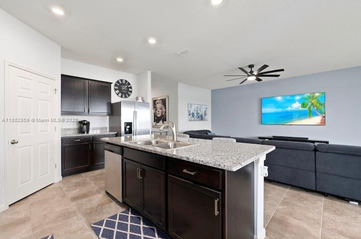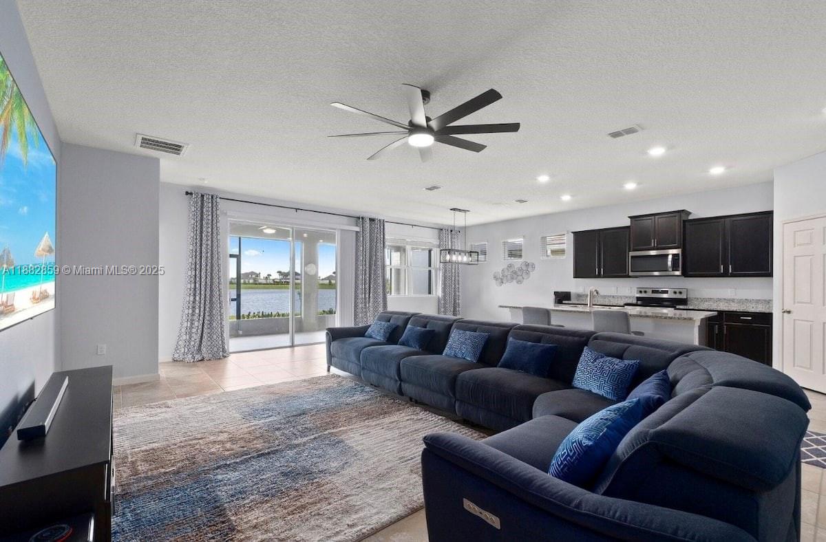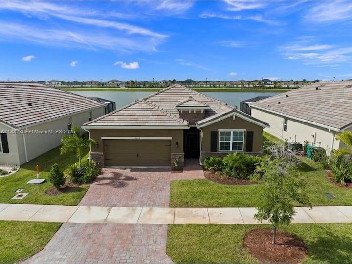 Waterfront luxury in the estates at tradition! this 2021 cbs smart home features 4 bedrooms, 2 bathrooms, 2-car garage, and a screened-in patio perfect for sunsets. energy-efficient with keypad entry, garage remotes, concrete tile roof, paver driveway, and mature landscaping with irrigation. open floor plan with volume ceilings, spacious kitchen with granite counters, breakfast bar, stainless steel appliances, and pantry. owners’ suite with dual vanities, separate shower, and 2 walk-in closets. gated community with clubhouse, pool, lawn maintenance & cable included. minutes from shops, dining, i-95 & hospitals.12341 SW ARABELLA DR, PORT ST. LUCIE, FL 34987