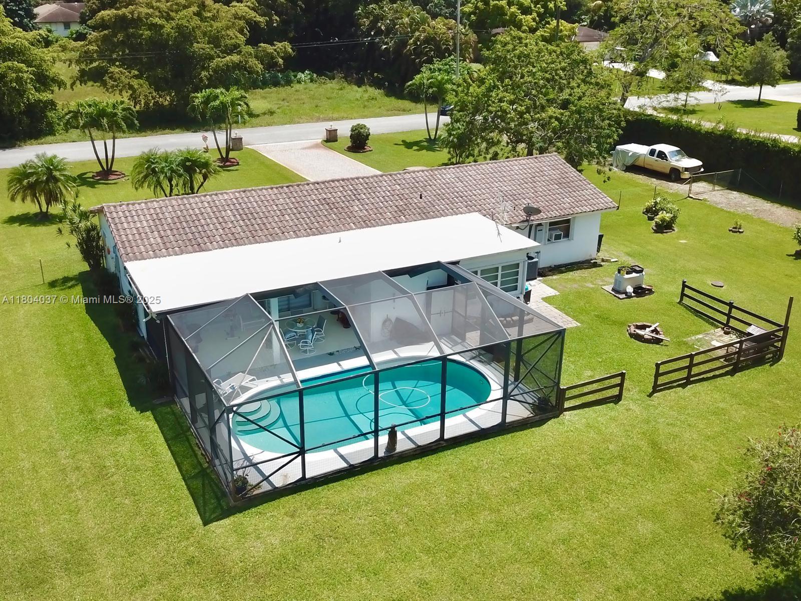 Stunner one-acre lot in davie offers plenty of space to expand this cozy 2/2 single family with screened pool. the one-story home has split floor plan, master bedroom with walking closet, hurricane impact windows, accordion shutters and impact doors. the screened backyard area offers a separate covered area so you can enjoy the pool without getting sunburned. the oversized lot features lush tropical landscaping, with fruit trees including coconut and mango trees. storage shed 24x12 offers extra storage space/workshop. 2 car garage and super long driveway fit up to 6 cars and additional space to park your boat, rv, or trailer. no hoa! a hardwired generator for the whole home. new a/c, pool equipment and water softener. close to i-595, restaurants, and shopping. seller is highly motivated!12411 SW 12TH ST, DAVIE, FL 33325