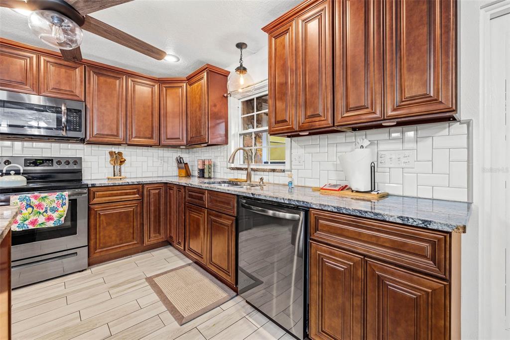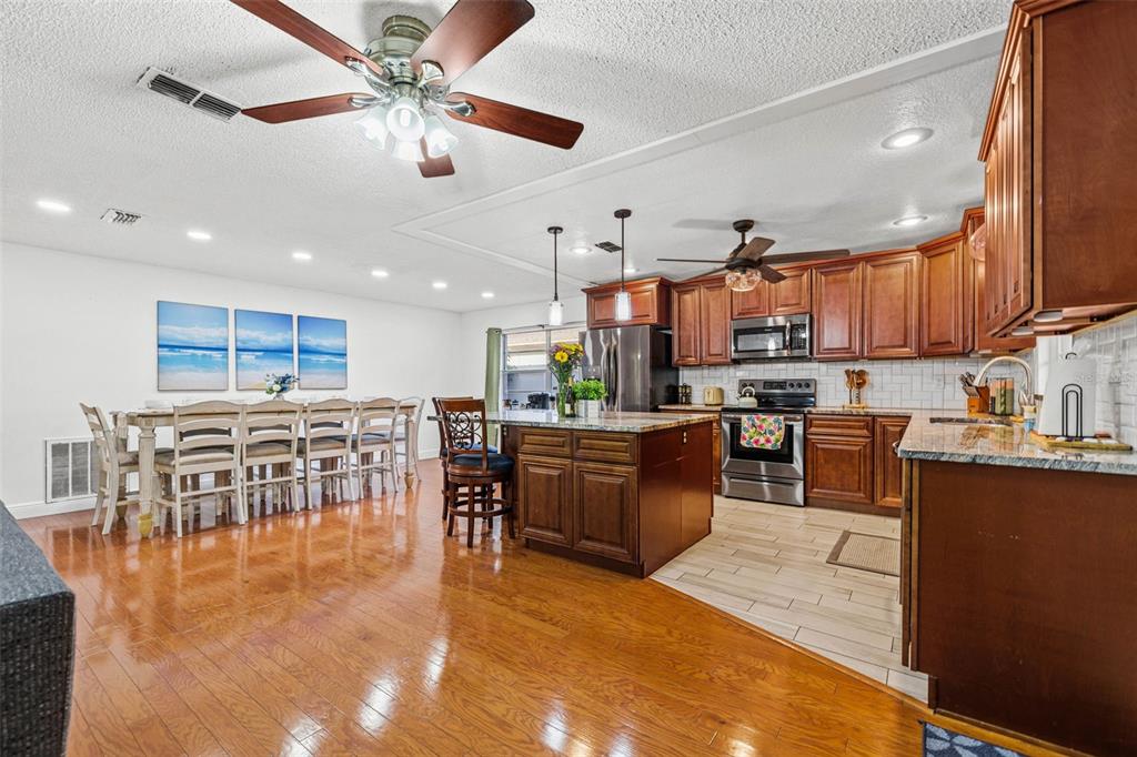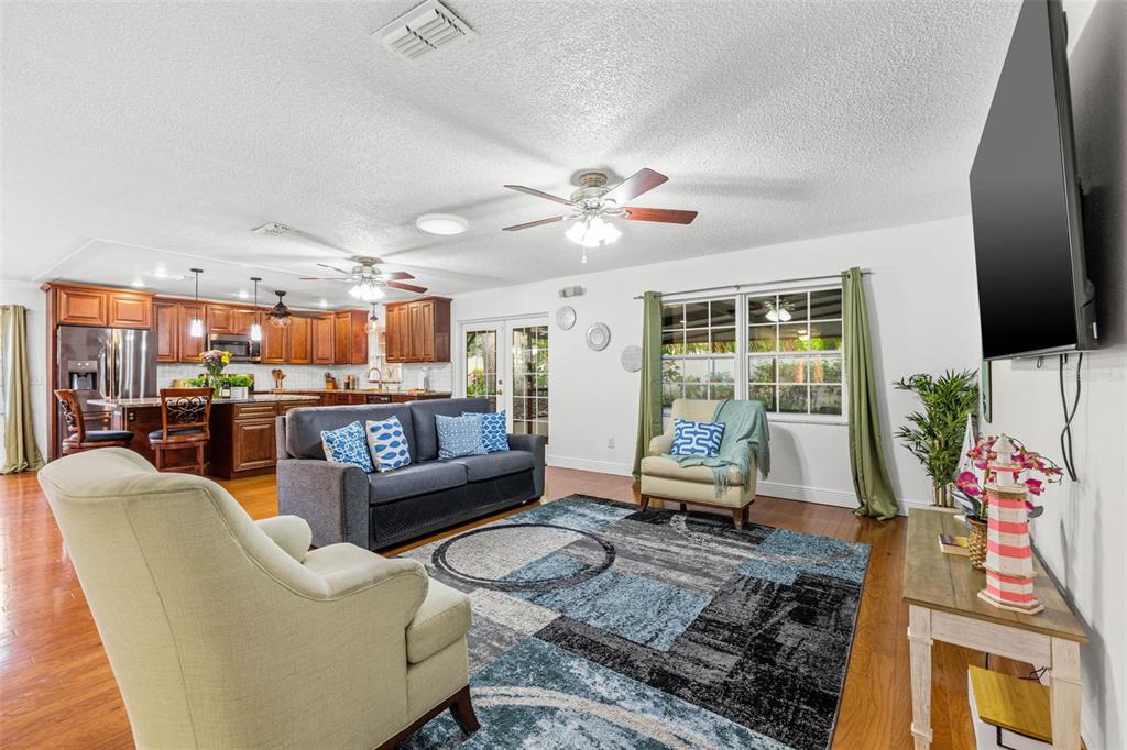 Ceiling Fan(s) Living Room/Dining Room Combo Open Floorplan Window Treatments Solid Surface Counters Solid Wood Cabinets Skylight(s) Kitchen/Family Room ComboExterior Features:
