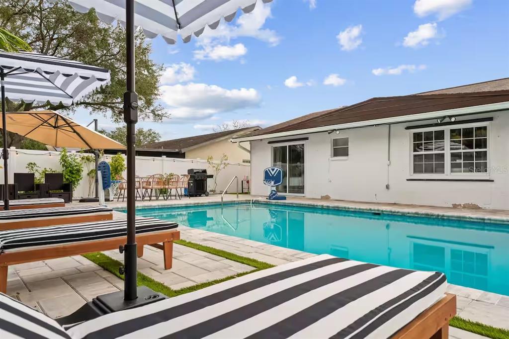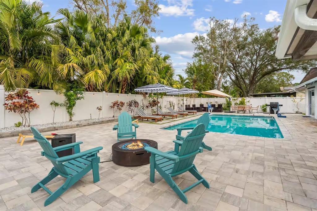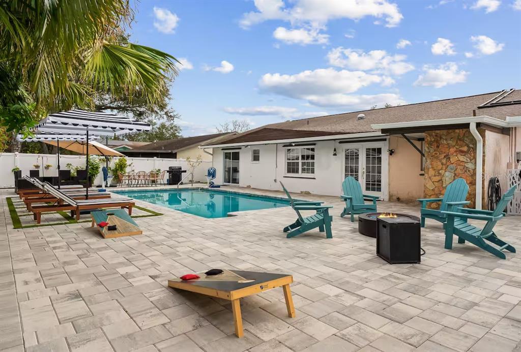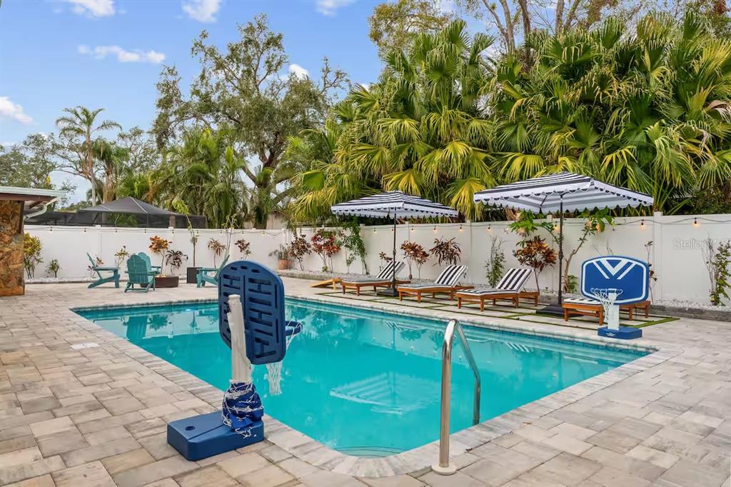 Prime location just 12 minutes to clearwater beach! welcome to 1242 whisper drive—a turnkey family home or investor gem with 3 beds, 2.5 baths, and a stunning remodeled kitchen featuring wood cabinets and granite counters. the open living area flows seamlessly to your private pool with a brand-new heater (2023), now showcasing a modern open design for year-round enjoyment. the master suite offers direct pool access, while two additional bedrooms provide comfort for all. outside, the expansive backyard boasts mini golf, a fire pit, and plenty of space for outdoor fun. the converted garage is now an entertainer’s dream with a pool table, air hockey, and ps5 gaming setup. updates include a 2023 electrical panel and 2017 roof. fully furnished (negotiable) and rental-ready, this home also features pet-friendly fencing, beach gear, and an outdoor shower. whether you seek a high-earning short-term rental or a luxe family retreat, this property delivers. schedule your showing today!1242 WHISPER, LARGO, FL 33770