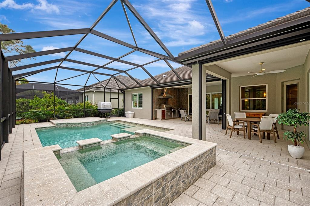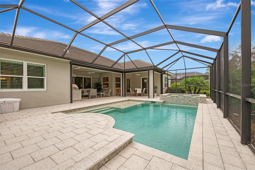 This is the house you have been waiting for in grand palm! built in 2020, this nearly new sanibel model offers a split floor plan with an open concept living area, impact windows and doors, high ceilings, real wood plantation shutters and designer wood look tile floors throughout. add to your culinary adventures with ease in your chef’s kitchen that includes upgraded ge cafe stainless steel appliances; gas cooktop, built-in double oven with convection, double stacked custom cabinets and matching range hood that vents outside, elegant natural quartzite stone countertops, shiny gray ceramic backsplash and a composite sink. the walk-in pantry provides a place for all your kitchen essentials with real wood shelving. steps away, enjoy your perfectly prepared meal in your oversized dining room open to the great room, over looking the lanai. pocket sliding glass doors lead out to the covered, screened lanai with electric roll down, hurricane protection, wifi operational! this exquisite heated salt water pool with raised spa is certainly a wow factor. custom built and designed with water features and sun shelf surrounded by shelllock pavers. a full pool bath, with enclosed glass shower with tile to the ceiling, accessible from the lanai is steps away! the spacious master suite, situated towards the back of your home, gives you maximum peace and privacy. double master closets, complete with custom closet organizers, provide easy storage for all your warm weather clothing. the spa like master bath is adored with an over sized, full glass enclosed walk-in shower, a relaxing garden tub surrounded by accent tile, dual vanities and a private toilet room. guests can enjoy their stay in one of two bedrooms located in the guest wing with the second bathroom between. need a little more space? the french door, enclosed club room has many useful options with a sliding glass door leading out to the extended covered lanai. make it your home office, a quiet sitting room or can double as an extra bedroom. you will want to write home about this custom built and designed laundry room! the lg front loading washer and gas dryer are built in with quartzite countertop, a composite sink and 42” upper cabinets. this sanibel offers a 3 car garage with a 4’ extension and full coverage epoxy flooring. plenty of room to house your vehicles and golf cart with additional overhead storage space . throughout the home you will find 8’ interior doors and upgraded base boards. take advantage of the resort style heated pools, participate in social gatherings, pickle ball, tennis, bocce ball and a fitness center right in the community with no additional fees. want to enjoy the gulf beaches? venice beach is less than 20 minutes away! come live the florida dream. schedule your showing today!12424 DAVIE, VENICE, FL 34293