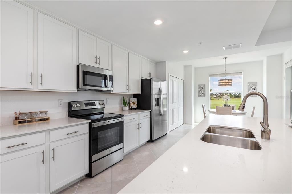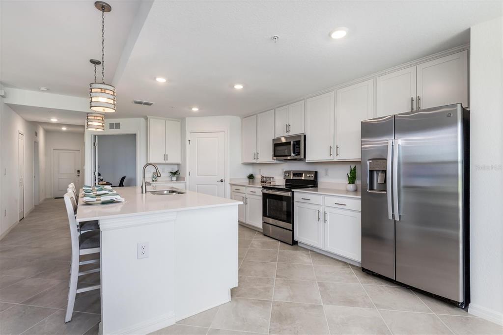 Golf membership included! imagine waking up in your light-filled, barely lived-in 1st floor veranda condo in wellen park golf & country club, where every day offers a new and exciting adventure or a day of rejuvenation and relaxation. this turnkey furnished 2-bedroom, 2-bath home with a versatile den, offers a spacious, open floor plan with tile flooring throughout and a chef’s kitchen featuring an oversized quartz island, ample cabinetry, and two pantry closets. the front and rear lanai’s, offer multiple outdoor retreats. start your mornings with coffee on the rear lanai, soaking in gorgeous golf course views. the front lanai is a great spot for family fun night, dinner parties or unwinding with a good book. beyond your front door, the wellen park golf & country club lifestyle awaits: a stunning resort-style pool, state-of-the-art fitness center, aerobics room, pickleball, tennis, bocce ball, a full-service spa, dog park, and an active calendar led by a full-time lifestyle director. the gordon lewis designed 18-hole golf course is perfect for all skill levels. after a fun day of golf, stop by the tiki bar for a delicious lunch and a cold drink with friends. located just 2 miles from downtown wellen park and a short drive to the venice historic district, gulf beaches, boating, fine dining, and boutique shopping, this is florida living at its finest—convenient, carefree, and completely turnkey.12550 GALAPAGOS #104, VENICE, FL 34293