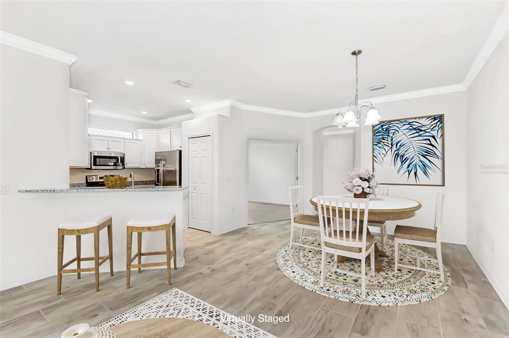 Modern color palette & priced to sell. owner has submitted to fema new elevation certificate that will remove from flood zone. nestled in this iconic wellen park neighborhood, this twin villa within the veneto section of gran paradiso combines elegance, functionality, and modern interior basics like grey plank tile flooring and bright white cabinets to give the new owner a modern coastal pallette. floorplan and enhancements this villa spans approximately 1,564 square feet, featuring two bedrooms, two bathrooms, and a den. the open great room design includes grey plank tile throughout the main living area for a sense of expansiveness. granite counters, crown molding, and white cabinets in the kitchen and baths add to a modern florida home template that is both beachy and warm. in a twin villa, grey plank tiles paired with white cabinets create a quintessential coastal look. the tiles, with their weathered wood mimicry, add texture and durability, while the white cabinets provide a bright, clean backdrop that reflects light, enhancing the airy, spacious feel.. the master bedroom and den connect to the main area through french doors, allowing for privacy or an open flow. the secondary bedroom is situated across from the entry for guest privacy with direct bathroom access. a covered lanai that can be accessed from both the master bedroom and the main living area provides additional living space with garden view. location this twin villa, located in the veneto section of gran paradiso, has proximity to the private owners' gate of gran paradiso, giving you quick access to everything around this wellen park neighborhood. gran paradiso is known for its tuscan-inspired architecture and is just 6.8 miles from the nearest beach and 1 mile from downtown wellen park, offering easy access to a vibrant community life with events, dining, and shopping. lower fees this property enjoys the lowest hoa fees in gran paradiso, providing access to amenities like a clubhouse, swimming pool, fitness center, tennis and pickleball courts, and lots of beautiful plaves for walking and bike riding within the gate, all while being over $500 less per year than similar properties in other sections like villagio on the streets of tesoro or benissimo. this beautiful home in gran paradiso offers a blend of comfort and convenience and it is priced to sell. the community is just 6.8 miles from the nearest beach and a mere mile from downtown wellen park, where a vibrant community life awaits with events, dining, and shopping. being part of wellen park, this home is in a walkable, bike-friendly environment, offering the best of florida living.Villa 2 bedrooms - GRAN PARADISO & VILLAS II for Sale