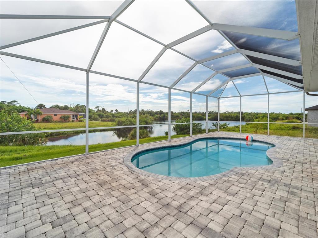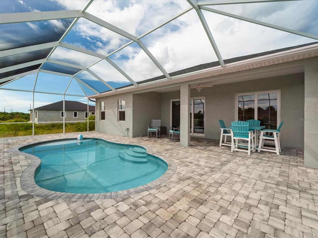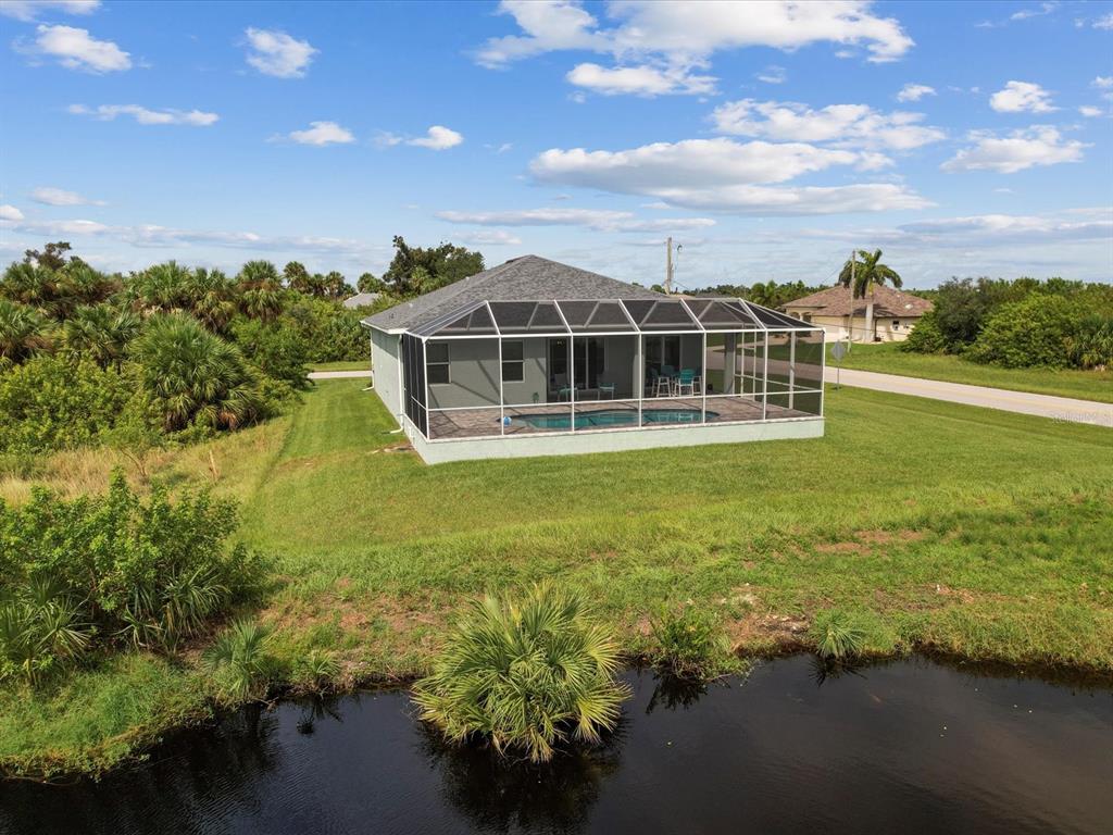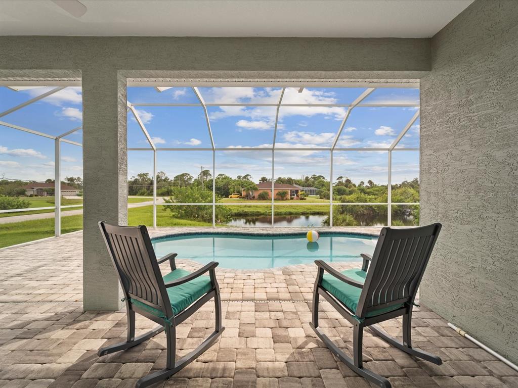 Fully furnished 2 year old pool home located on lovely lake in the beach community of rotonda heights! just bring your toothbrush to this welcoming home with an open floor plan that throughout entire house has modern, soaring high ceilings with volume trays, 8' doors, millennium durable allergen-free porcelain plank flooring (a must in florida with no need to replace carpet or laminate), high end quartz countertops, cabinetry that has its own crown molding plus elegant handles on doors & drawers with 42" uppers that are stepped (no blah evenly hung, straight across, zero personality cheapo's here), fully tiled bathrooms (no plastic pans or inserts), stainless steel appliances, a large, corner walk-in pantry, 5+ inch baseboards, upgraded full lighting package inclusive of ceiling fans in all bedrooms, living room & lanai! the lanai is complemented with an oversized, full home-width pool deck that has plenty of room for sunbathing and grilling for those who enjoy barbecuing poolside, along with being completely screened in for minimal pool maintenance! kidney shaped pool with its gorgeous decorative glass accent tile and led lighting also has sunshelf for toe-dipping, toddler play, or fur-family fun! engineering wise, don't get bamboozled by homes that are poorly designed, this beauty was built by a floridian builder who knows what has to be built in southwest florida for longevity and durability...hip roof design for long-term discounted insurance rates, off-ridge roof venting so peaks won't blow away, and stem wall construction which far exceeds monolithic slabs as sand can wash away but not cement blocks! additionally, 2-year old construction brings low-cost insurance and a peace of mind with low-maintenance home ownership. all furnishings are less than 2 years old and have barely been used since owner has been unable to find more than a few weeks of time to come down to enjoy their new build. promise you will not be disappointed in this gorgeous, fabulously built paradise gem located in the amazing rotonda heights community!127 RIFLE RD, ROTONDA WEST, FL 33947