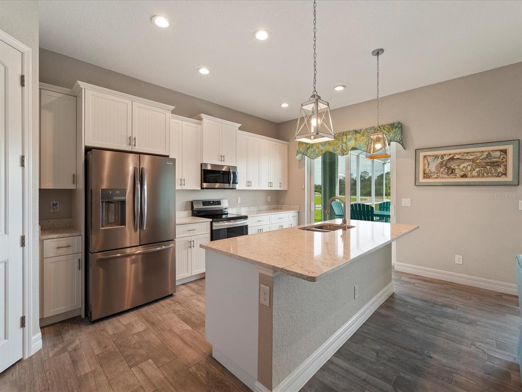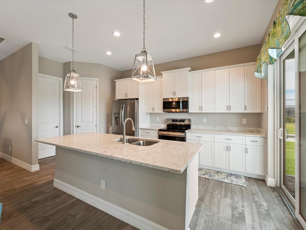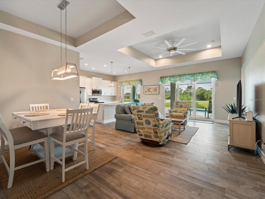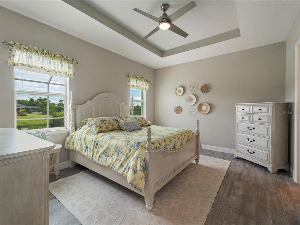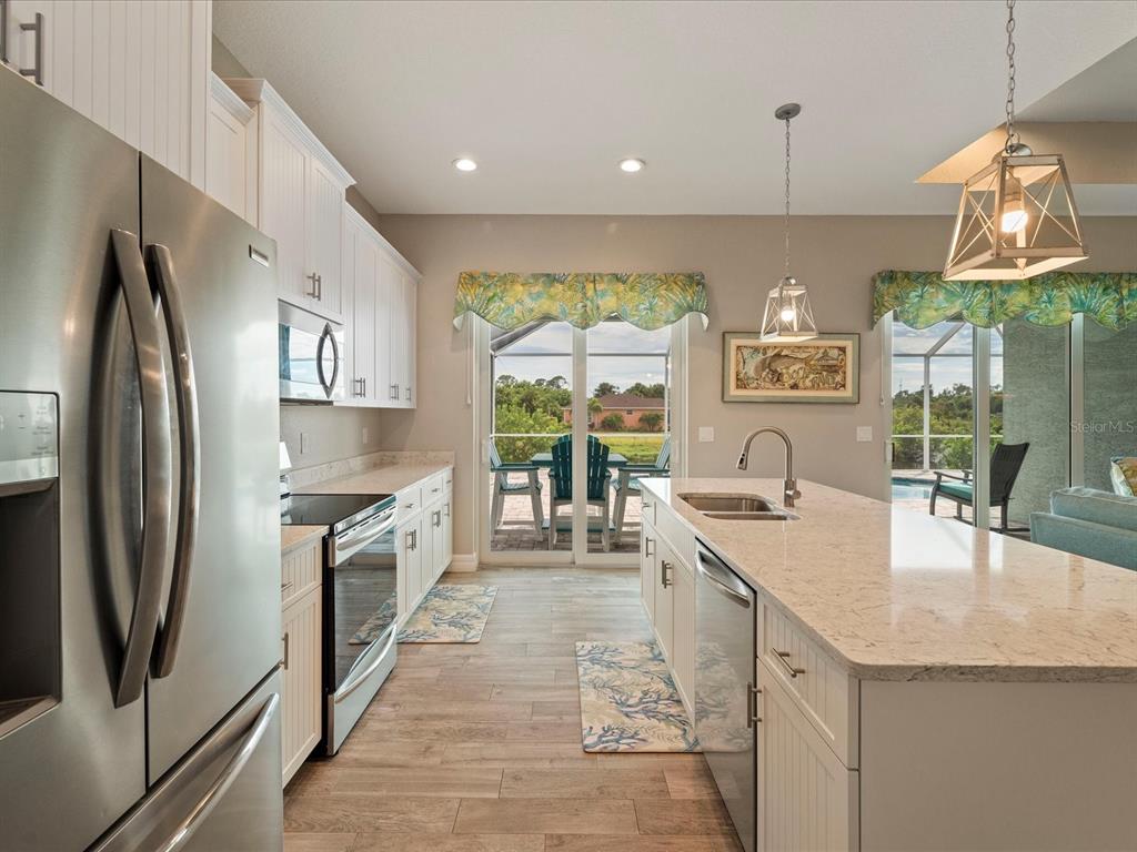 Fully furnished 2 year old pool home located on lovely lake in the beach community of rotonda heights! just bring your toothbrush to this welcoming home with an open floor plan that throughout entire house has modern, soaring high ceilings with volume trays, 8' doors, millennium durable allergen-free porcelain plank flooring (a must in florida with no need to replace carpet or laminate), high end quartz countertops, cabinetry that has its own crown molding plus elegant handles on doors & drawers with 42" uppers that are stepped (no blah evenly hung, straight across, zero personality cheapo's here), fully tiled bathrooms (no plastic pans or inserts), stainless steel appliances, a large, corner walk-in pantry, 5+ inch baseboards, upgraded full lighting package inclusive of ceiling fans in all bedrooms, living room & lanai! the lanai is complemented with an oversized, full home-width pool deck that has plenty of room for sunbathing and grilling for those who enjoy barbecuing poolside, along with being completely screened in for minimal pool maintenance! kidney shaped pool with its gorgeous decorative glass accent tile and led lighting also has sunshelf for toe-dipping, toddler play, or fur-family fun! engineering wise, don't get bamboozled by homes that are poorly designed, this beauty was built by a floridian builder who knows what has to be built in southwest florida for longevity and durability...hip roof design for long-term discounted insurance rates, off-ridge roof venting so peaks won't blow away, and stem wall construction which far exceeds monolithic slabs as sand can wash away but not cement blocks! additionally, 2-year old construction brings low-cost insurance and a peace of mind with low-maintenance home ownership. all furnishings are less than 2 years old and have barely been used since owner has been unable to find more than a few weeks of time to come down to enjoy their new build. promise you will not be disappointed in this gorgeous, fabulously built paradise gem located in the amazing rotonda heights community!127 RIFLE RD, ROTONDA WEST, FL 33947