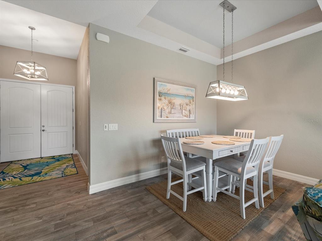 Walk-In Closet(s)Ceiling Fan(s) High Ceilings Living Room/Dining Room Combo Thermostat Open Floorplan Window Treatments Solid Surface Counters Solid Wood Cabinets Primary Bedroom Main Floor Tray Ceiling(s)Exterior Features: