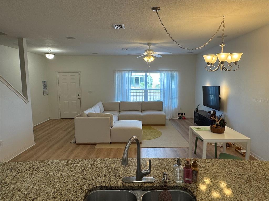 Walk-In Closet(s) Eating Space In Kitchen High Ceilings Living Room/Dining Room Combo Stone Counters Thermostat Open Floorplan Solid Surface Counters Kitchen/Family Room Combo PrimaryBedroom UpstairsCathedral Ceiling(s)Exterior Features:
