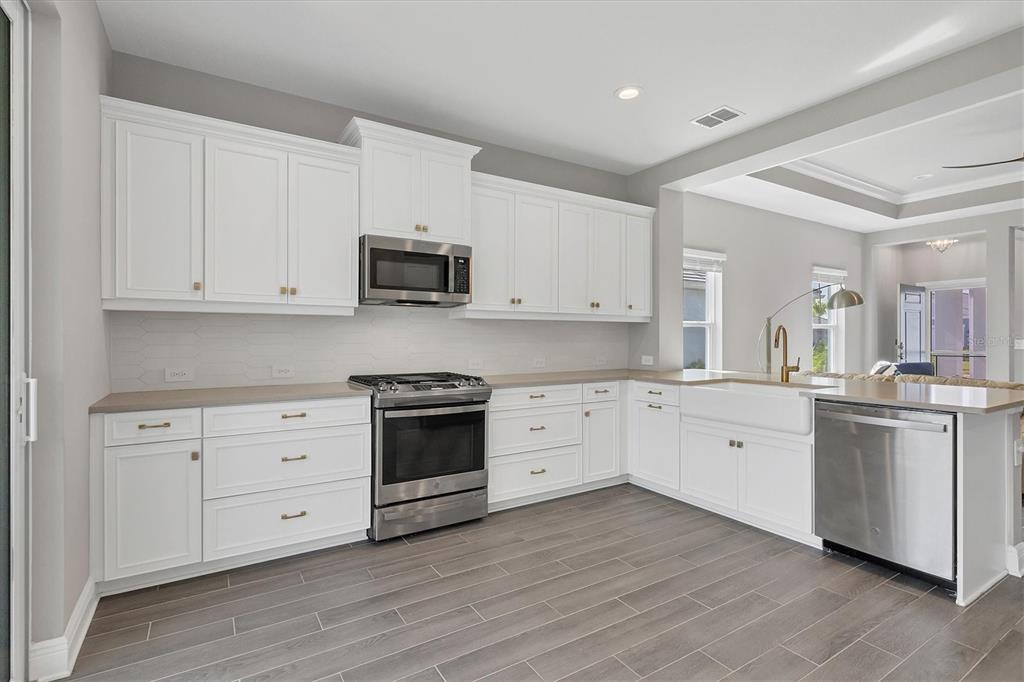 This 3-bedroom, 2-bathroom home offers a perfect blend of modern elegance and serene comfort. as you step inside, you'll be greeted by an open-concept living space that includes a dining room alongside the living room. your eyes will be drawn to the contemporary kitchen with sleek subway tile backsplash, ample counter space, and a gas stove for all your culinary adventures. another feature of the kitchen is the double sliding doors leading to the extended lanai. the screened lanai is perfect and provides a tranquil retreat with lovely views of a private preserve—ideal for relaxing or entertaining guests. the lanai has a ceiling fan, electric outlets, and a gas stub for you to add a grill or even better, add an outdoor kitchen. the home boasts a spacious ensuite primary bathroom and bedroom with a walk-in shower and two walk-in closets. the other two bedrooms are on the other side of the living room for privacy. additional highlights include impact windows and sliding doors everywhere creating an energy efficient home, along with security no matter what the weather will be. most of the rooms have ceiling fans installed. the garage has an epoxy-coated floor for easy maintenance. situated in the desirable wysteria community of wellen park, this home offers not only a place to live but a lifestyle to enjoy. in wisteria, enjoy the community pool, spa, and pickleball courts. wisteria is carefree living because the hoa takes care of lawn, landscape maintenance, and the irrigation system. enjoy nearby downtown wellen park with daily entertainment, shopping and restaurants, along with walking paths and bike trails. enjoy relaxing beside the large lake or on it with a kayak or paddleboard. and fishing is allowed. the cool today park is within two miles... this is the spring training stadium for the atlanta braves, plus has additional featured entertainment year long. no need to travel far for shopping, there’s a publix plaza, costco warehouse, and more in wellen park. schools and future medical facilities are in construction now. don’t miss your chance to own this beautiful property, schedule a showing now.12760 BROOKGREEN, VENICE, FL 34293