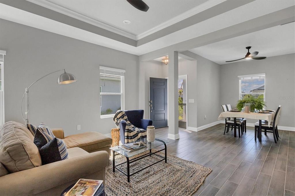 Walk-In Closet(s)Ceiling Fan(s) Eating Space In Kitchen Living Room/Dining Room Combo Stone Counters Open FloorplanCrown Molding Coffered Ceiling(s)Exterior Features: