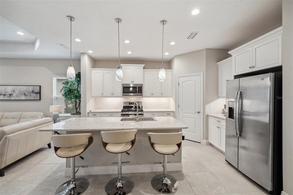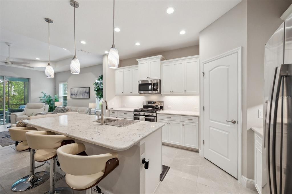 Serenity and tranquility best describe your new home in the exclusive streets of indigo nestled within lakewood ranch. indigo is a picturesque amenity-rich gated community 12 miles inland with excellent proximity to all of lakewood ranch, sarasota, st petersburg and tampa. this elegant tidewinds model villa has a plethora of natural lighting with an open airy spacious layout. built in 2020 it is situated on a quiet cul-de-sac. this 1,617 square feet of living area features 2 bedrooms, 2 full baths, study/den, great room, dining area, kitchen with an island seating, indoor laundry room, plenty of storage space, covered lanai and a convenient 2-car garage providing ample room for your vehicles. every detail in this home reflects quality, comfort, and care. the spacious great room is adorned with a tray ceiling, ceiling fan and seamlessly connects to the dining room. the 3 panel sliding pocket door leads to your covered lanai with your own private lush peaceful conservation area. there you can enjoy your morning coffee or simply relax in the evening taking in the sounds of nature. the lanai features a gas hookup for an outdoor kitchen / grill. the elegant kitchen is perfect for entertaining family and friends with a sizable island, breakfast bar, walk-in pantry, gas stove, beautiful tile backsplash, white cabinetry, stainless steel appliances, under cabinet accent lighting with stunning views of your backyard. the den / study is the perfect place to retreat in spacious style featuring engineered wood flooring and double doors. the owner’s suite boasts a large walk-in closet, a second oversized closet, two separate vanities with plenty of counter space, a walk-in shower and a private water closet. the guest bedroom adorned with plush carpeting, hosts a ceiling fan and a large oversized closet, welcoming your guests. the accompanying bath is equipped with tiled flooring, a linen closet, beautifully tiled with both a tub and shower. the laundry room features a convenient utility sink with shaker cabinets along with a storage closet. throughout the villa you will find 5 1/4" baseboards, high end ceramic tile, ceiling fans throughout, led recessed lighting and upgrades which are sure to please all. the hvac is a trane xr 2019 unit, 2023 maytag washer / dryer, 2020 rheem professional water heater. this ae flood zone property has a minimal flood insurance premium. indigo is a gated, natural gas community that features a full time on-site manager, full time activities director who manages an extensive calendar of activities and services for the residents. indigo has its own private oasis pool exclusive to villa residents. in addition there is a resort style heated community pool at the main clubhouse where you will find 5 cabanas with an abundance of seating, 4 pickleball courts, 2 bocce ball courts, 24-hour exercise gym, meeting room/banquet room and playground. the hoa fees include all ground maintenance, mowing, fertilizing, irrigation, shrubs, trees, etc. its prime location is close to interstate 75 which ensures easy access to beaches and shopping, including the renowned utc mall. a-rated gullett elementary and mona jain middle school are both a short distance. embrace a lifestyle of comfort, convenience and community in this charming indigo villa. don't miss your chance to make this beautiful villa yours. schedule your private showing today.Villa 2 bedrooms - INDIGO PH VII SUBPHASE 7A & 7B for Sale