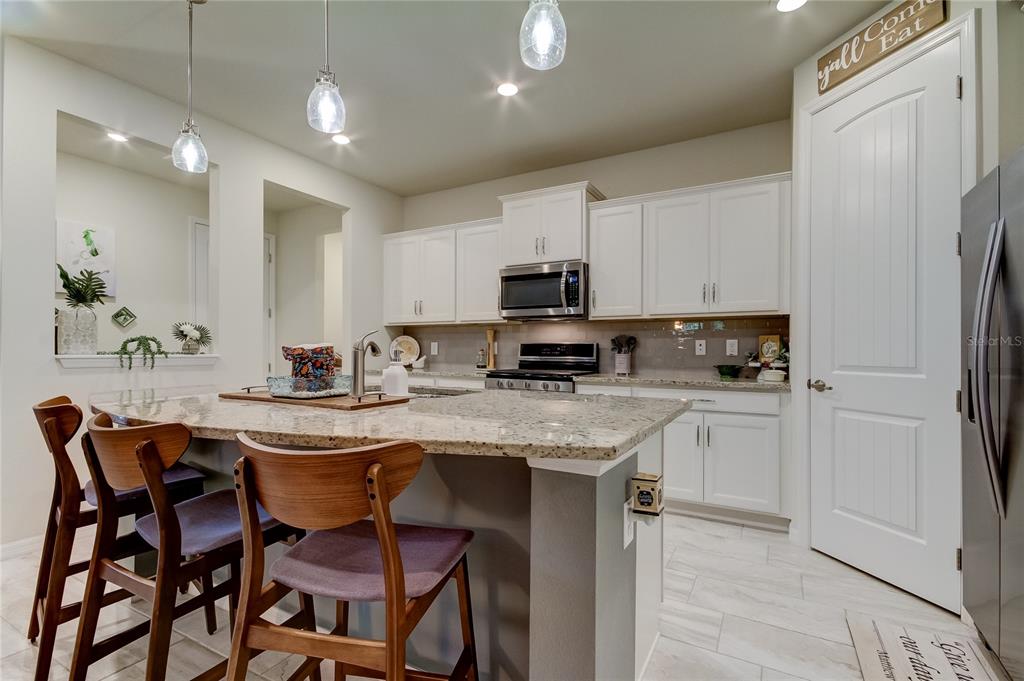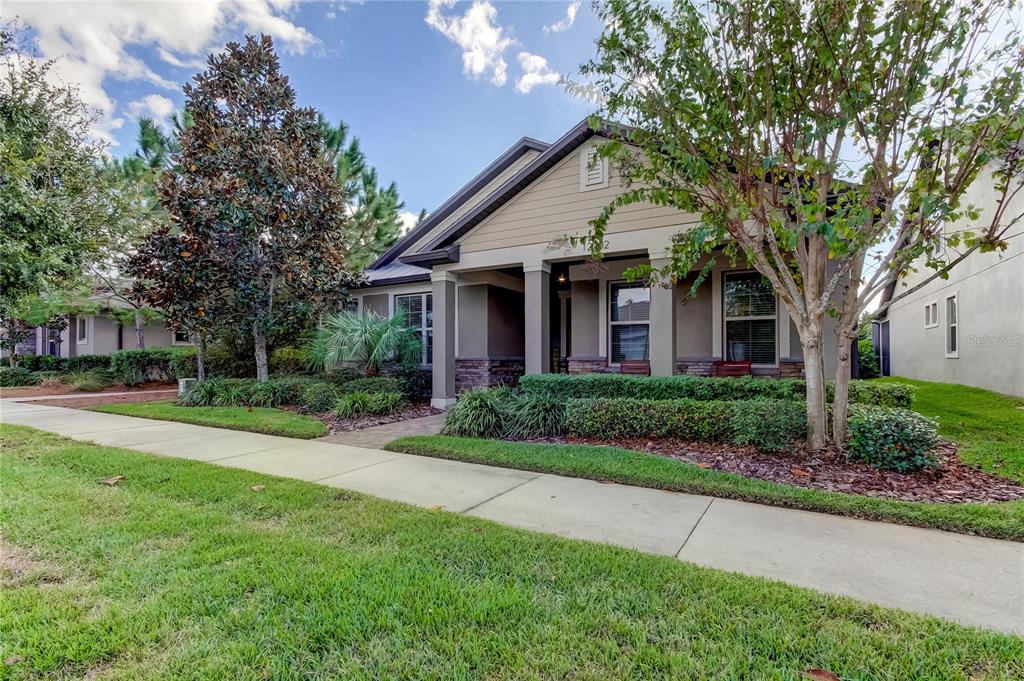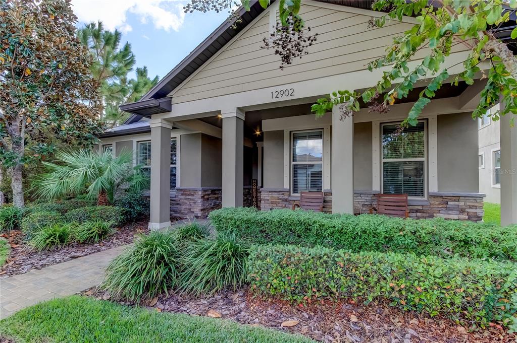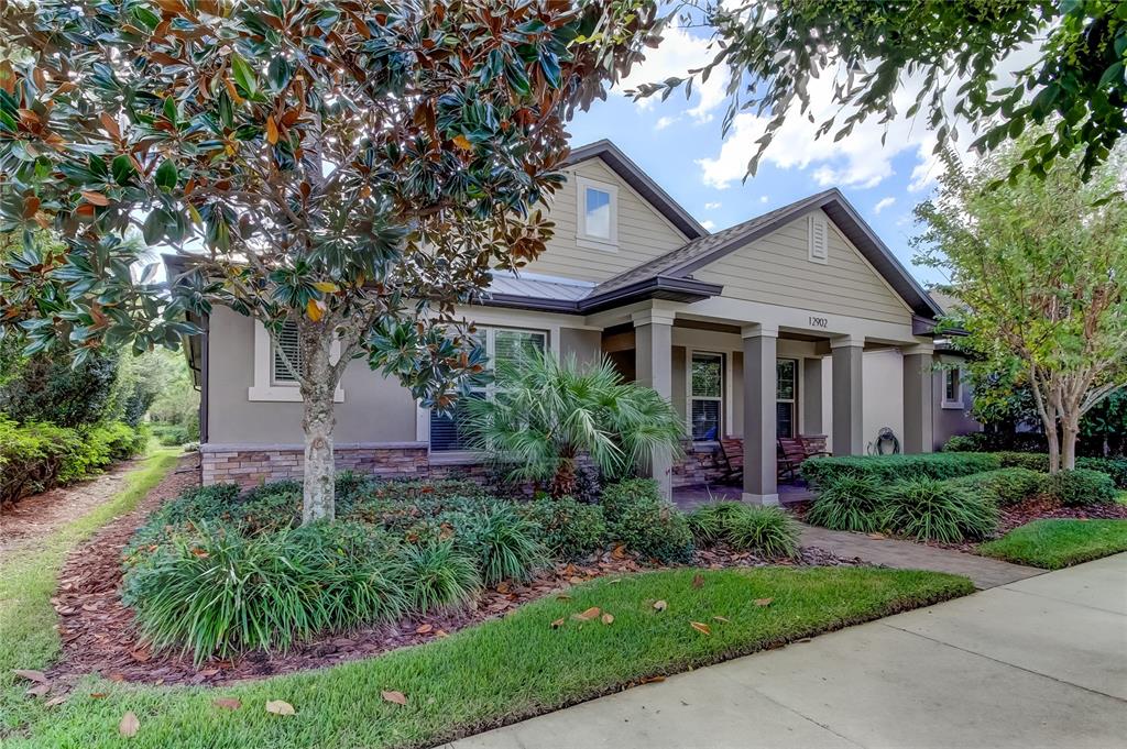 House beautiful!!! located in highly sought "homestead park" enclave of award winning starkey ranch! meticulously maintained one story pulte arbordale home consists of 3 bedrooms plus office space, 2 bath, with large screened enclosed lanai and 2 car garage! appealing craftsman's style exterior! inviting front porch to enjoy your morning coffee! open great room concept wonderful for hosting gatherings for your friends and family! neutral decor! ceiling fans! window treatments! neutral upgraded tile flooring flows throughout the house with exception of carpet in bedrooms. gourmet kitchen features 42 inch white cabinetry, granite countertops, tile backsplash, stainless steel appliances featuring a 5 burner gas range top and built in microwave! pantry! desirable large island with pendant lights overlooking family room great for entertaining! spacious owner retreat! desirable his and hers large, walk in closets! ensuite has double vanities and oversized walk in shower with built in bench seat! 2 generously sized guest bedrooms with one featuring a board and batton feature wall and has a large walk in closet! pavered driveway! tankless water heater, hurricane shutters, newer water softener! (march 2023yr)transferrable termite warranty with top notch! (preventative) epoxy flooring in the garage! if you are seeking an "active lifestyle" starkey ranch is for all ages! amenities include: 3 community pools, tennis courts, soccer fields, baseball diamonds, track, playgrounds, dog parks, theater, library, community garden, grilling stations, lake cunningham offers free kayaks & canoes for residents! top rated schools k-8! 22 miles of scenic trails for walking, jogging or biking! easy access to tampa international airport, world renowned best of the gulf coast beaches, shopping and restaurants! nearby tgh urgent care center, trinity hospital and an animal hospital! not in a flood zone! must see inside to appreciate! you will not be disappointed!12902 PAYTON, ODESSA, FL 33556