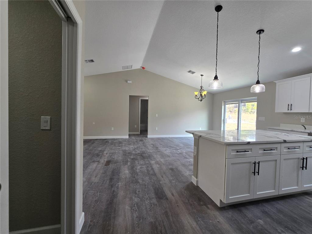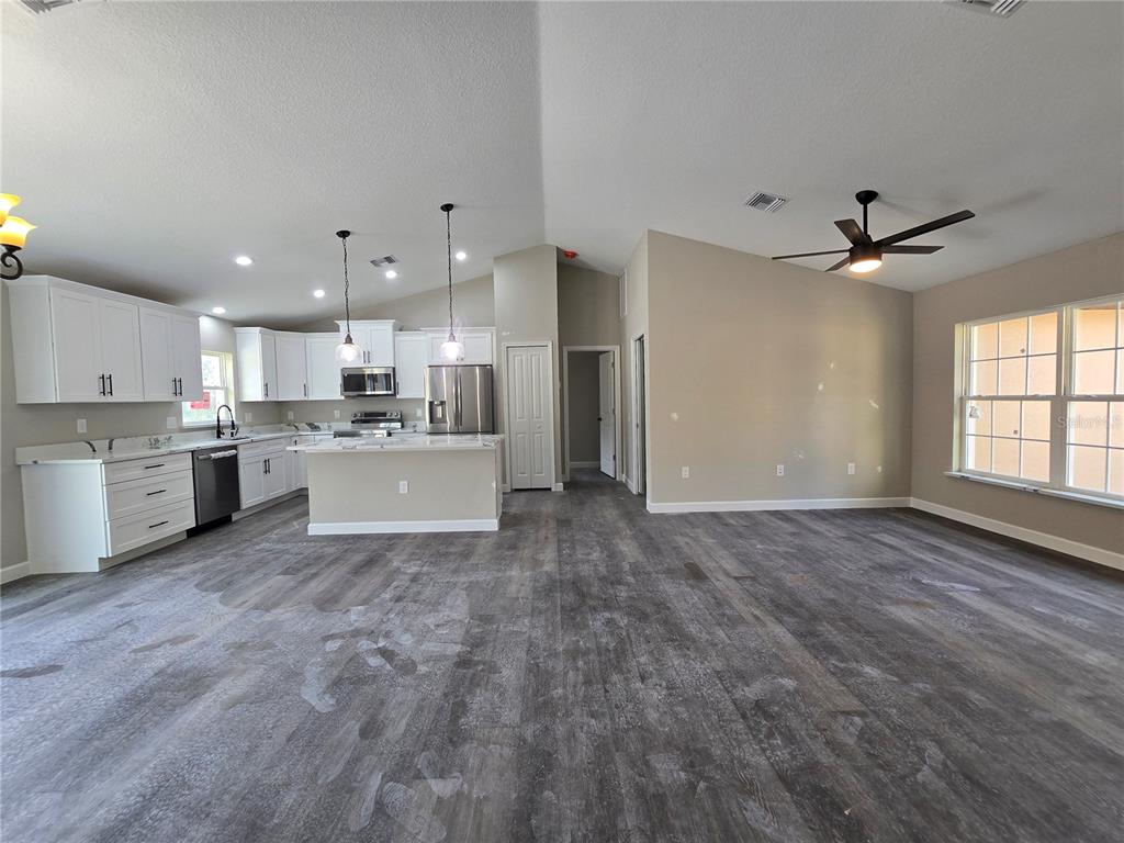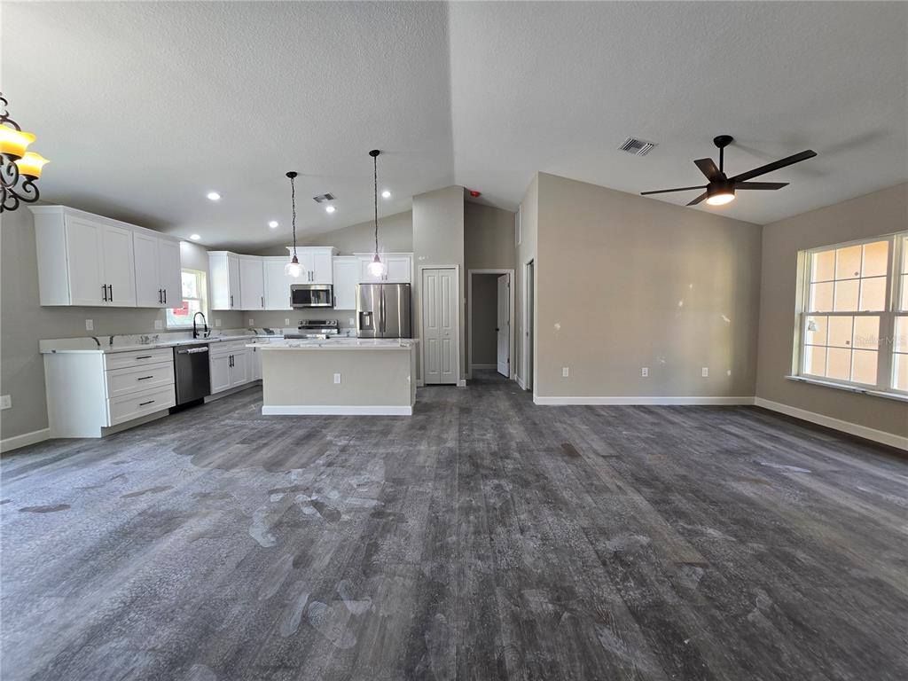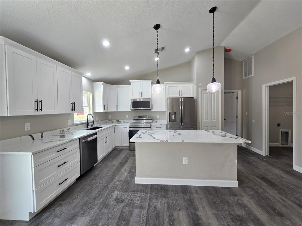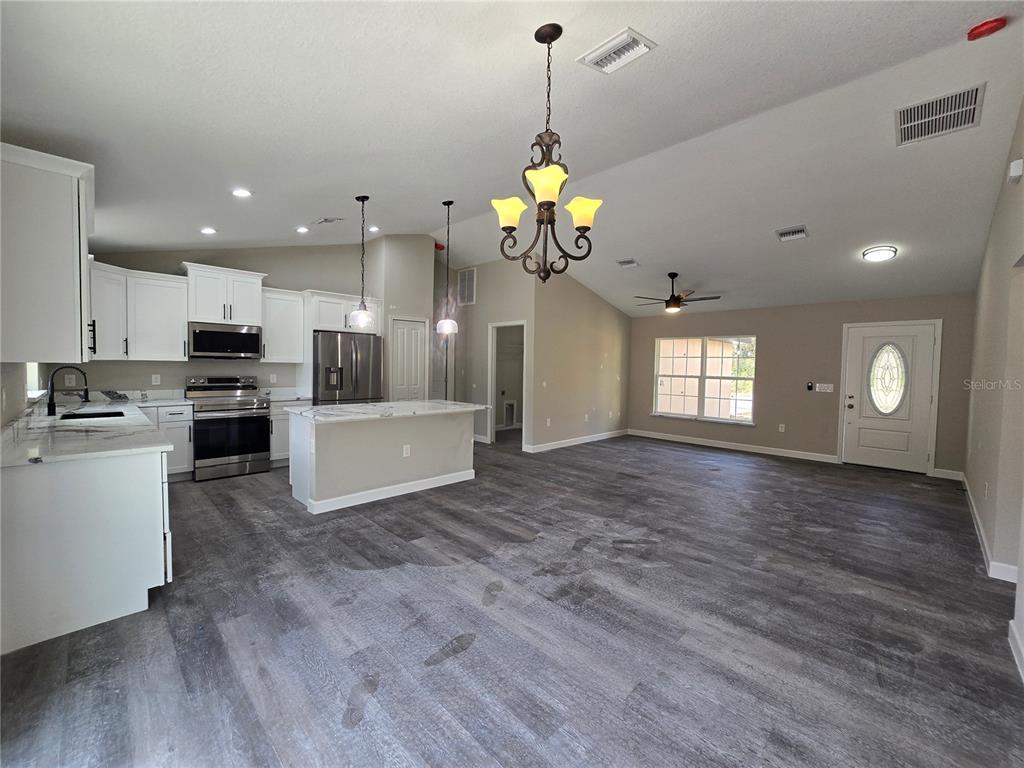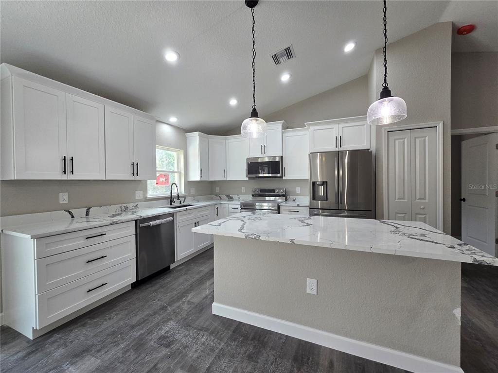 Come see this traditionally styled, 3 bedroom, 2 bath, 2 car garage on a oversized .32 ac lot in the very popular silver springs shores area. this home features a split plan, high ceilings & quartz stone counters in the kitchen, bathrooms & window ledges! when you step in side, you will notice the open design with tall ceilings and a split floor plan. the primary bedroom features an oversized closet & en suite bathroom with a fully tiled, ez entry shower & linen closet. the kitchen, has whisper quiet drawers & upgraded cabinets with stylish knobs. gorgeous go deep sink with a beautiful open view. deluxe samsung smart appliance package includes stainless steel fridge, dishwasher, stove & microwave comes with the home. a beautifully patterned quartz counter island comes with room for chairs. nearby, you have access to the laundry room & garage via a handy pocket door. across the house, the secondary rooms share the bathroom and will have good space for a full size bedroom set, office, or a game room. the choices are endless! ample closet space has been supplied as well for all of their storage needs. the .32 acre lot gives you plenty of room for all of your toys! not in an hoa so you are free to build a fence, add a pool, do what you want, how you want! on a well and septic system so no utility bills is also a great plus! if you install back up power in preparation for any possible outage, you will still have use of water and sewer as long as you have electric! close enough to give you access to belleview, summerfield, the villages, the interstate and beyond. less than 10 min to wal-mart, publix, aldi & save a lot, the post office, 3 auto parts stores & car washes as well as many food & medical offices nearby for ease. a short drive in either direction will lead to ocala downtown square or to our famous lake weir, where you can boat, kayak, jet ski, or enjoy a meal on the lake over looking the sunset. in a usda eligible area & we are first time homebuyer & veteran friendly!13 LOCUST TRAK, OCALA, FL 34472