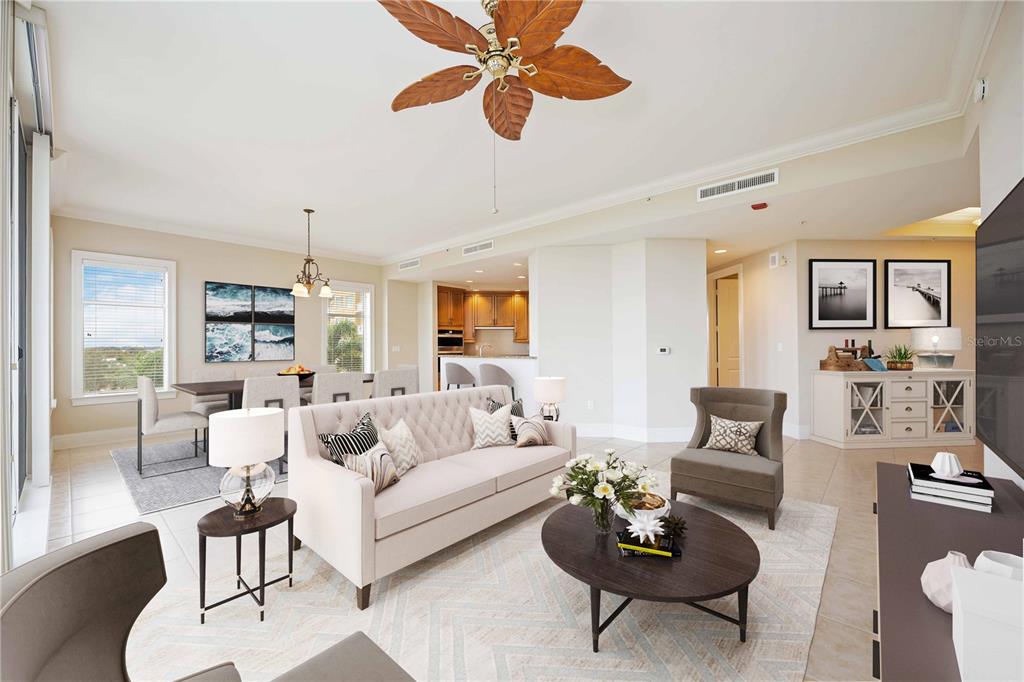 Split BedroomElevator Walk-In Closet(s)Ceiling Fan(s) Living Room/Dining Room Combo Stone Counters Open Floorplan Window TreatmentsCrown MoldingExterior Features: