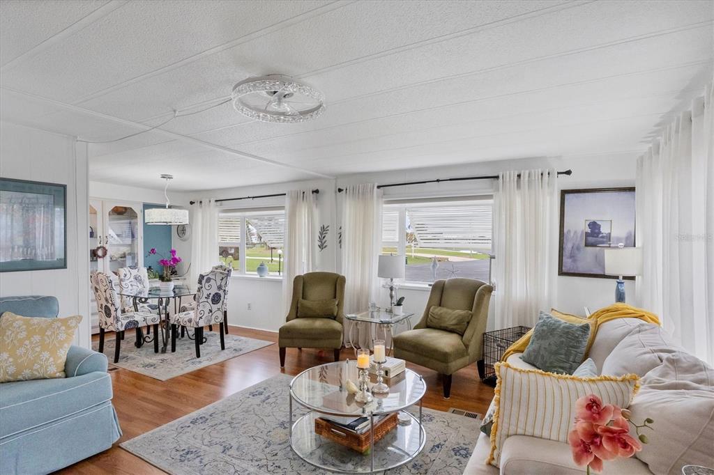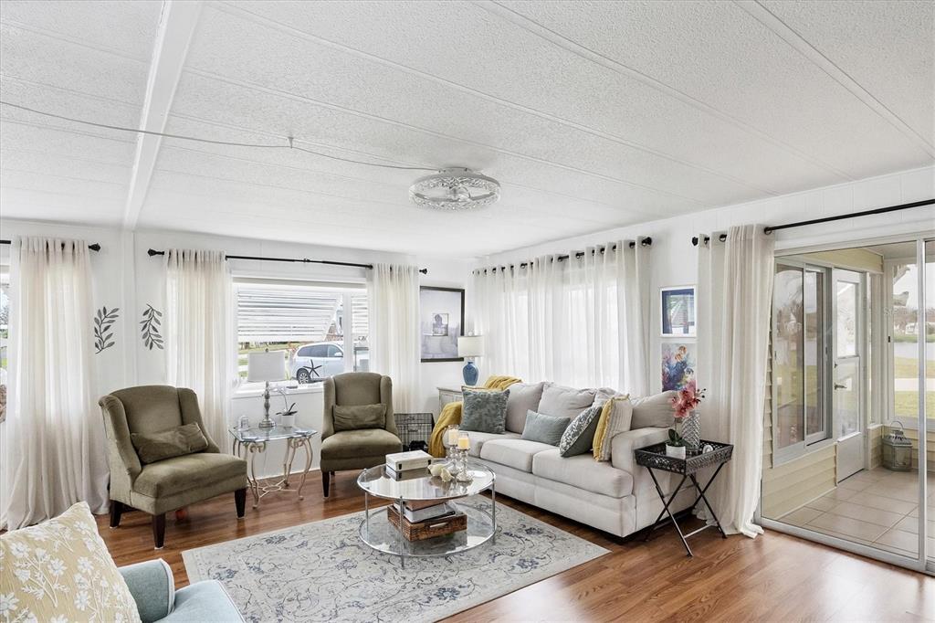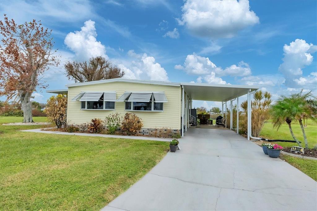 Come see this beautiful waterfront home roughly 3.5 miles from englewood beach! the home suffered zero damage from hurricanes helene and milton. this home was also high and dry with no flooding during either storm. this home is a two-bedroom, two-bath home with a large living room, formal dining, and a peaceful new florida room completed this year to current hurricane codes. enjoy morning coffee or evening cocktails while enjoying the expansive water views overlooking bird island. the kitchen is designed with a flat cook top, plenty of cabinets, decorative backsplash with stainless steel appliances. the dining room is located off the kitchen with access to the living room making it perfect for family gatherings. the living area is 18 x 14 giving you plenty of room to stretch out with windows all around to let in the natural light. the primary bedroom has beautiful views of the lake, built in desk / make-up counter with a large closet. the primary bathroom has dual sinks and a enclosed shower with grab bars. bedroom two is 12 x 11 with fan light combo. this home has many features, including a finished florida room with a few furnishings staying, new vapor barrier installed under the entire home, irrigation from the lake, new covered carport built in 2024 to current hurricane standards. the oversized waterfront lot has roughly 169 feet on the lake, which gives you incredible water views. nature lovers paradise with water birds and song birds of all kinds on bird island. the home has water and sewer with an irrigation pump to water from the lake. home comes partially furnished as well making it an easy transition for the new owners. in the holiday mobile estates 3rd addition 55 plus community, you own your land by fee-simple. golf carts and pets are welcome. the hoa fee is only $35 a year. for $300 per year, the edgewater clubhouse gets you access to the heated swimming pool, tennis courts, shuffleboard, pickle ball, bocce ball, and additional outdoor activities. secure your piece of paradise today.1300 SANDERLING, ENGLEWOOD, FL 34224