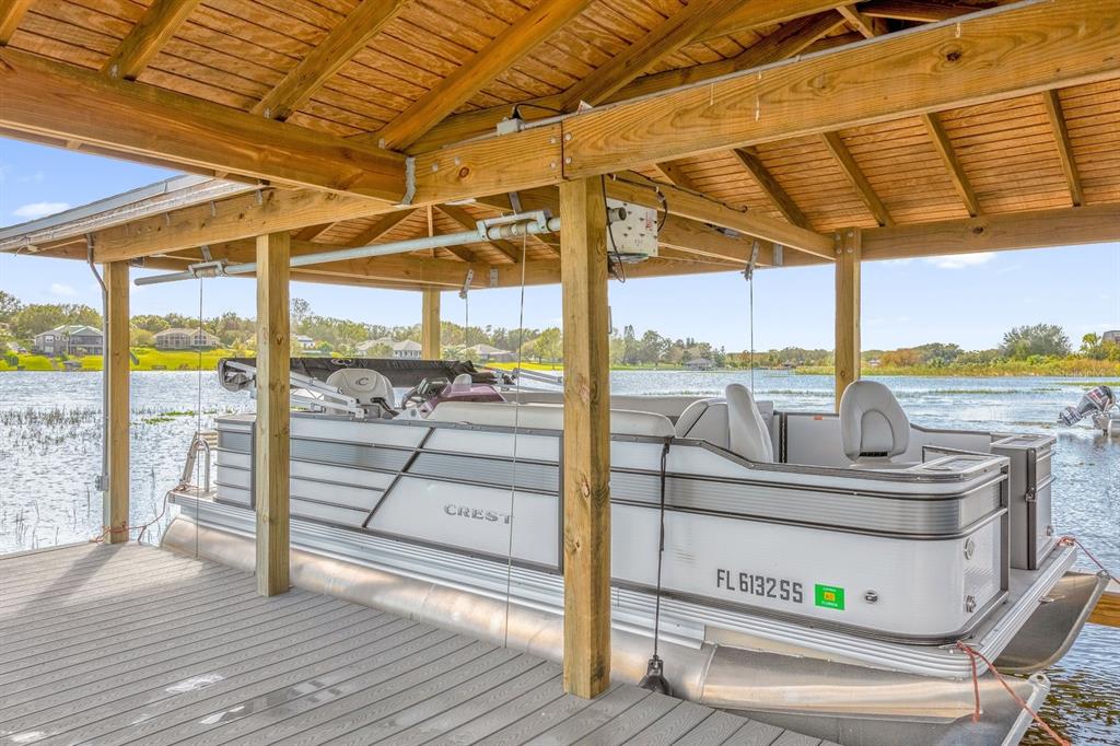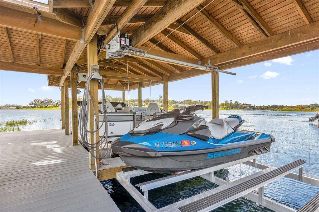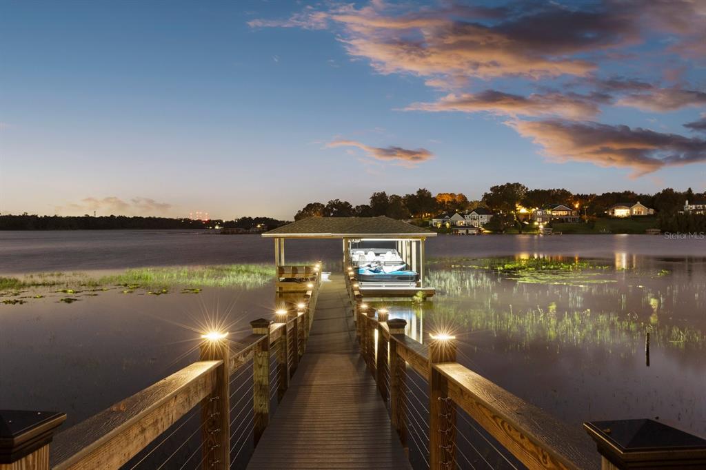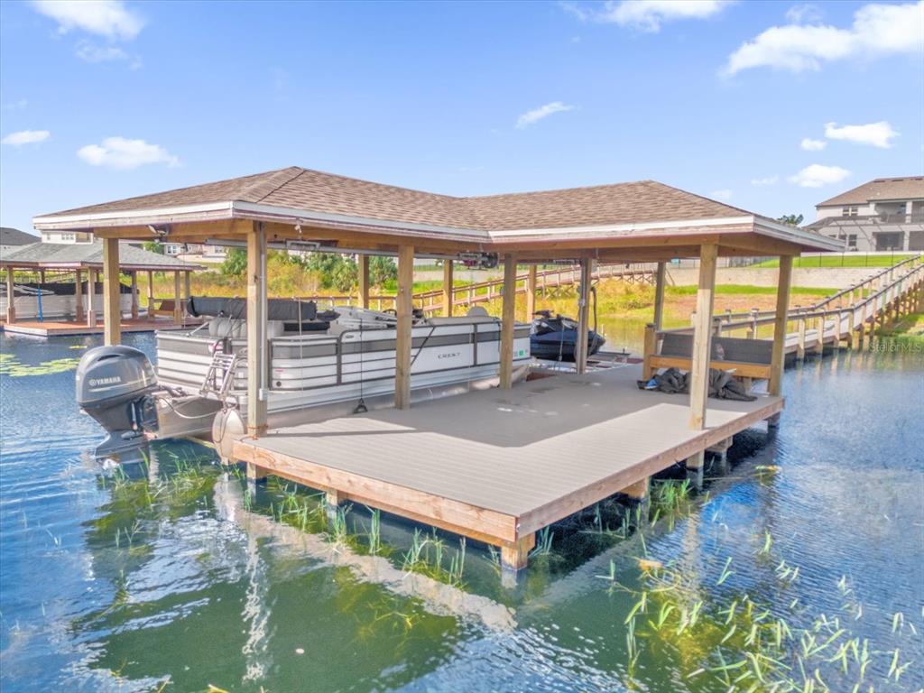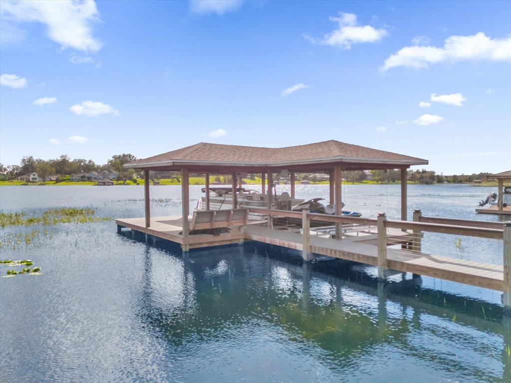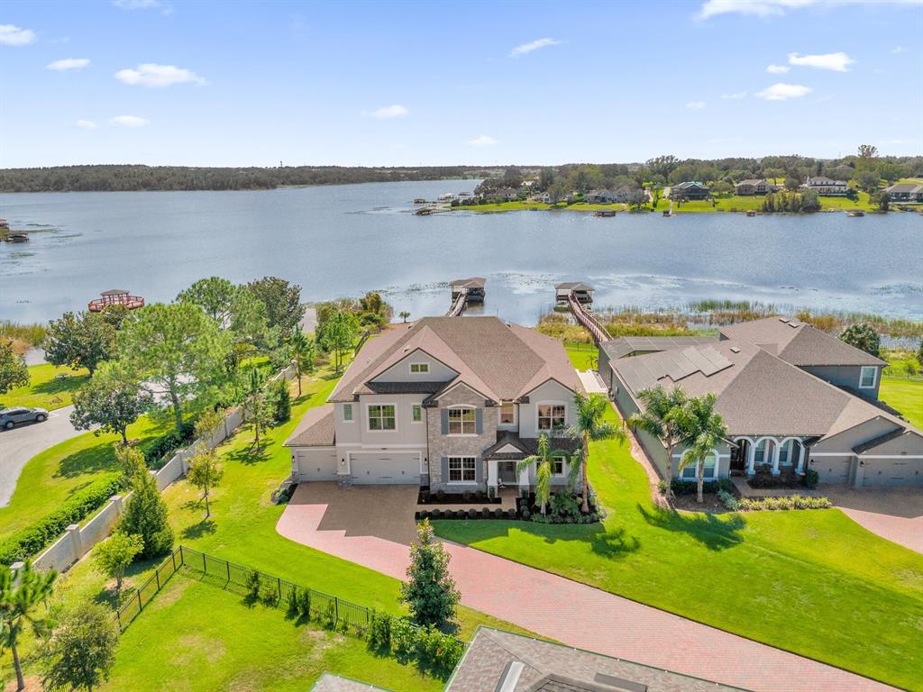 **huge price reduction** this luxurious two-story 2021 m/i home is in the coveted john’s lake landing community. set on the largest lot in the neighborhood, this property combines high-end upgrades and outdoor amenities, creating a perfect lakeside retreat. (to see the full video visit https://media.floridahomephoto.com/13016-shady-retreat-loop/idx or click the link for the virtual tour!) upon entering, you are welcomed by 8 foot raised panel interior doors that emphasize the home’s grand feel. the open-concept kitchen features a large island with pietra quartz countertops and solid hardwood cabinets, along with a samsung bespoke refrigerator and a custom butler’s pantry with a built-in ge microwave. for added convenience, the kitchen includes a farmhouse sink, soft-close drawers, and a pot filler, ideal for meal preparation. a ge stainless steel double oven and dishwasher complete the upscale kitchen, which also features a walk-in pantry. the living spaces are adorned with custom light fixtures and indoor and outdoor fans, while the family room features a cozy electric fireplace and 85" samsung tv. the primary suite is a true haven, with french doors opening to a private balcony overlooking the lake complete with swings and two oversized walk-in closets. the primary bathroom includes a dual sink vanity, a waterfall shower head with four additional moen jets, providing a spa-like experience. each of the five bedrooms features its own walk-in closet, with an en suite bedroom offering stunning lake views. the laundry room is equipped with a samsung washer and dryer, along with a drop-in sink for convenience. the home also includes comfort-height toilets with new toilet seats throughout. the south-facing backyard features a saltwater pool and spa with a pool heater, surrounded by a panoramic pool cage, offering uninterrupted views. for cozy evenings, the backyard also includes an outdoor stone firepit. a 10-zone irrigation system ensures the lush landscaping remains pristine year-round. the dock includes a 20' boat slip, a double jet ski slip, and has been upgraded with solar lighting along the walkway. the dock is equipped with electric and plumbing, perfect for those who love to spend time on the water. additional features include a wasatch floor safe, water filtration system with reverse osmosis, a 24-hour safetouch security system covering all entry points, driveway, and dock views, and floodlights at the rear of the house for added security. the home also features uv lighting in the hvac system, energy-efficient windows, a 240-volt outlet in the garage for high-voltage equipment or an electric vehicle charger. the property includes an expansive 25-car driveway and a 5-car garage, with each garage door built to custom height standards a foot higher than standard garage doors, accommodating large commercial vehicles, boats, or trucks. the landscaping features black rubber mulch, which can last up to 10 years. home builder's 15-year structural warranty is also transferrable! this home offers unparalleled luxury, security, and space, all in the serene john’s lake landing community while still being close to major highways, the best schools and restaurants, as well as amazing views of the disney fireworks every night! schedule your showing today!13016 SHADY RETREAT, CLERMONT, FL 34711