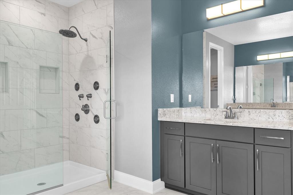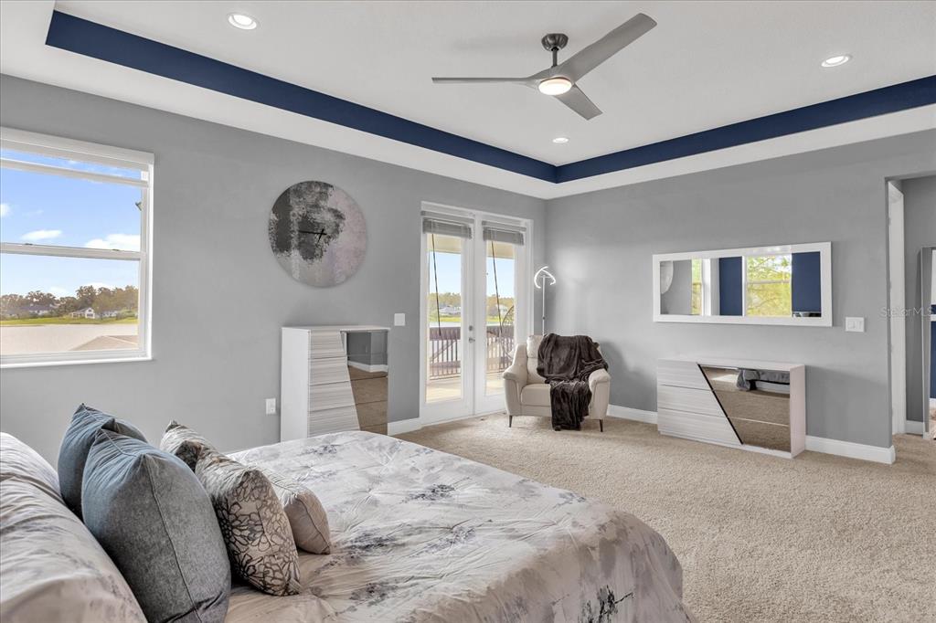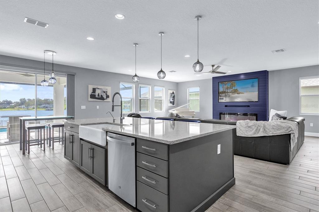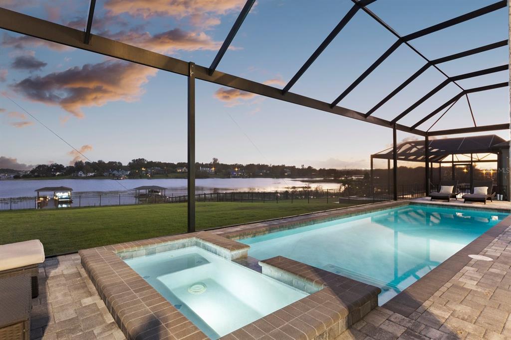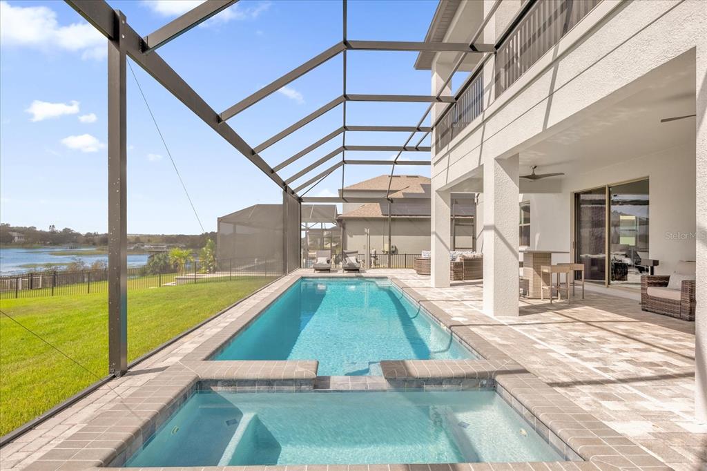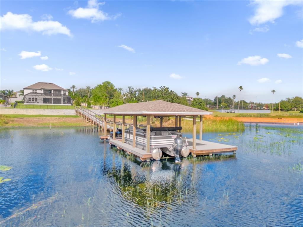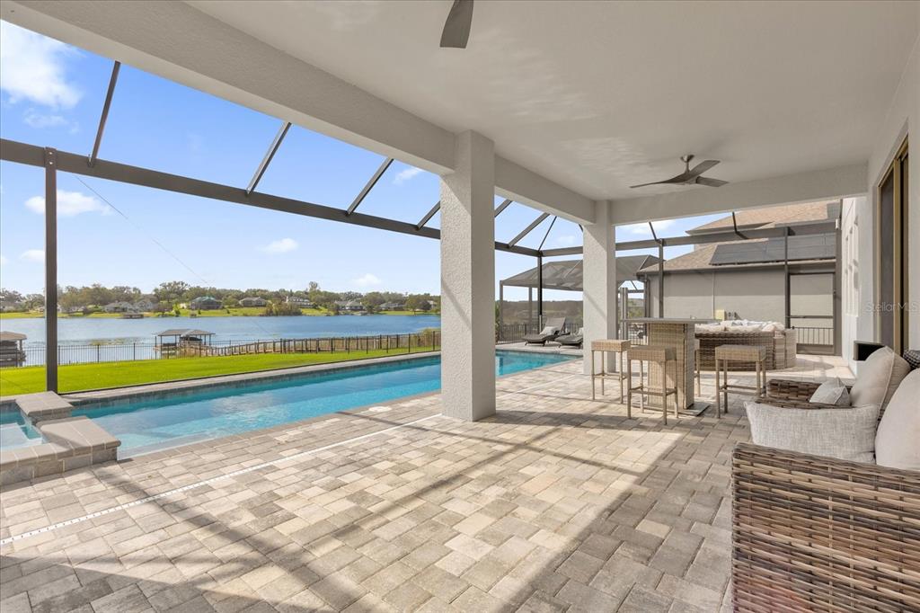 **huge price reduction** this luxurious two-story 2021 m/i home is in the coveted john’s lake landing community. set on the largest lot in the neighborhood, this property combines high-end upgrades and outdoor amenities, creating a perfect lakeside retreat. (to see the full video visit https://media.floridahomephoto.com/13016-shady-retreat-loop/idx or click the link for the virtual tour!) upon entering, you are welcomed by 8 foot raised panel interior doors that emphasize the home’s grand feel. the open-concept kitchen features a large island with pietra quartz countertops and solid hardwood cabinets, along with a samsung bespoke refrigerator and a custom butler’s pantry with a built-in ge microwave. for added convenience, the kitchen includes a farmhouse sink, soft-close drawers, and a pot filler, ideal for meal preparation. a ge stainless steel double oven and dishwasher complete the upscale kitchen, which also features a walk-in pantry. the living spaces are adorned with custom light fixtures and indoor and outdoor fans, while the family room features a cozy electric fireplace and 85" samsung tv. the primary suite is a true haven, with french doors opening to a private balcony overlooking the lake complete with swings and two oversized walk-in closets. the primary bathroom includes a dual sink vanity, a waterfall shower head with four additional moen jets, providing a spa-like experience. each of the five bedrooms features its own walk-in closet, with an en suite bedroom offering stunning lake views. the laundry room is equipped with a samsung washer and dryer, along with a drop-in sink for convenience. the home also includes comfort-height toilets with new toilet seats throughout. the south-facing backyard features a saltwater pool and spa with a pool heater, surrounded by a panoramic pool cage, offering uninterrupted views. for cozy evenings, the backyard also includes an outdoor stone firepit. a 10-zone irrigation system ensures the lush landscaping remains pristine year-round. the dock includes a 20' boat slip, a double jet ski slip, and has been upgraded with solar lighting along the walkway. the dock is equipped with electric and plumbing, perfect for those who love to spend time on the water. additional features include a wasatch floor safe, water filtration system with reverse osmosis, a 24-hour safetouch security system covering all entry points, driveway, and dock views, and floodlights at the rear of the house for added security. the home also features uv lighting in the hvac system, energy-efficient windows, a 240-volt outlet in the garage for high-voltage equipment or an electric vehicle charger. the property includes an expansive 25-car driveway and a 5-car garage, with each garage door built to custom height standards a foot higher than standard garage doors, accommodating large commercial vehicles, boats, or trucks. the landscaping features black rubber mulch, which can last up to 10 years. home builder's 15-year structural warranty is also transferrable! this home offers unparalleled luxury, security, and space, all in the serene john’s lake landing community while still being close to major highways, the best schools and restaurants, as well as amazing views of the disney fireworks every night! schedule your showing today!13016 SHADY RETREAT, CLERMONT, FL 34711