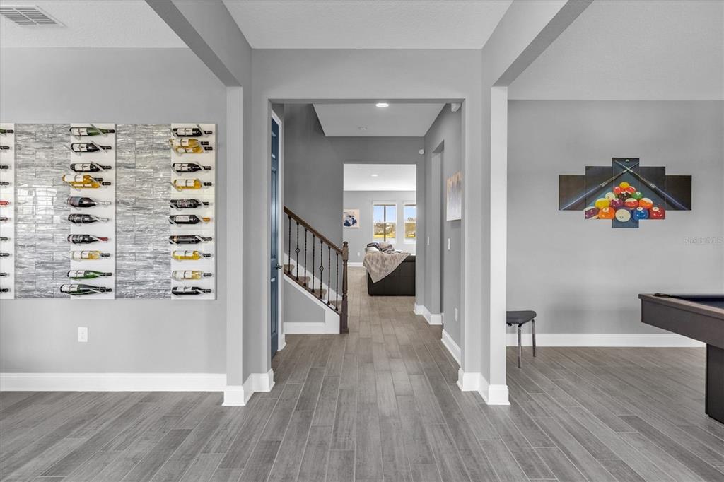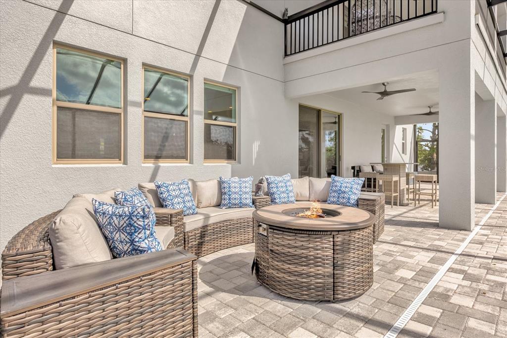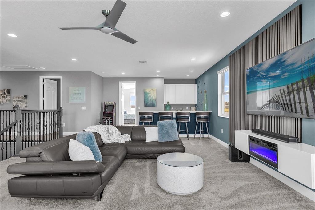 Wet BarBuilt-in Features Walk-In Closet(s)Ceiling Fan(s) Eating Space In Kitchen High Ceilings Stone Counters Thermostat Open Floorplan Solid Surface Counters Solid Wood Cabinets Kitchen/Family Room Combo PrimaryBedroom Upstairs Tray Ceiling(s) Dry BarExterior Features: