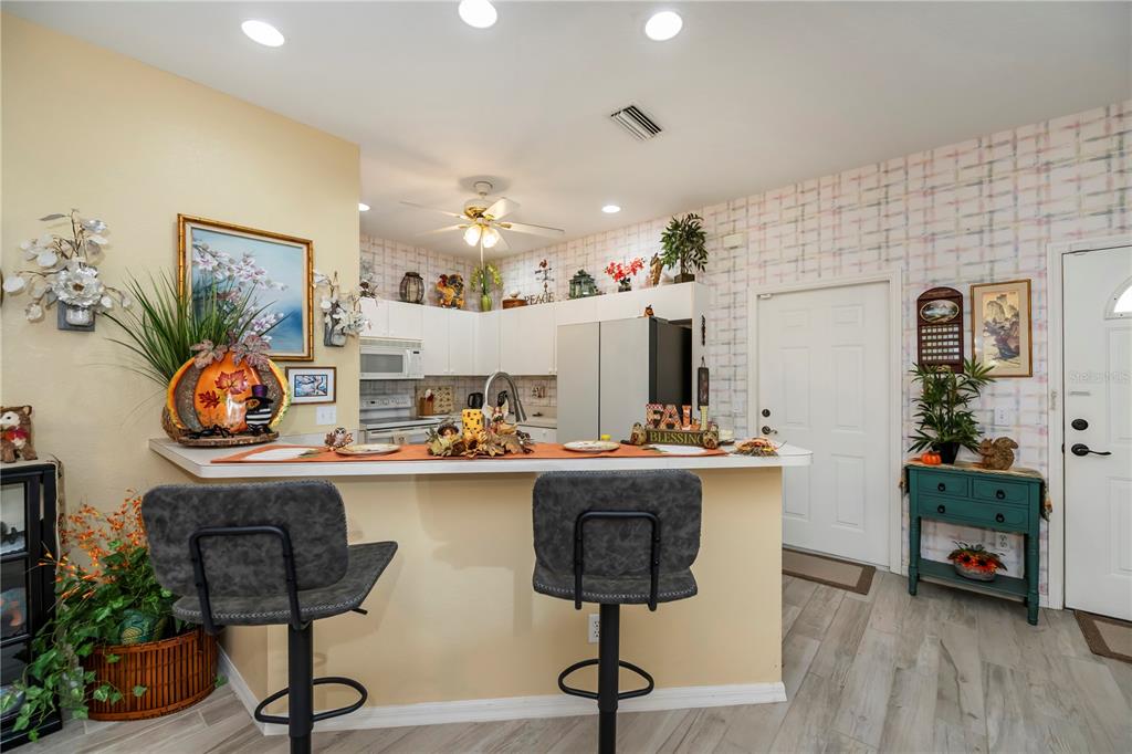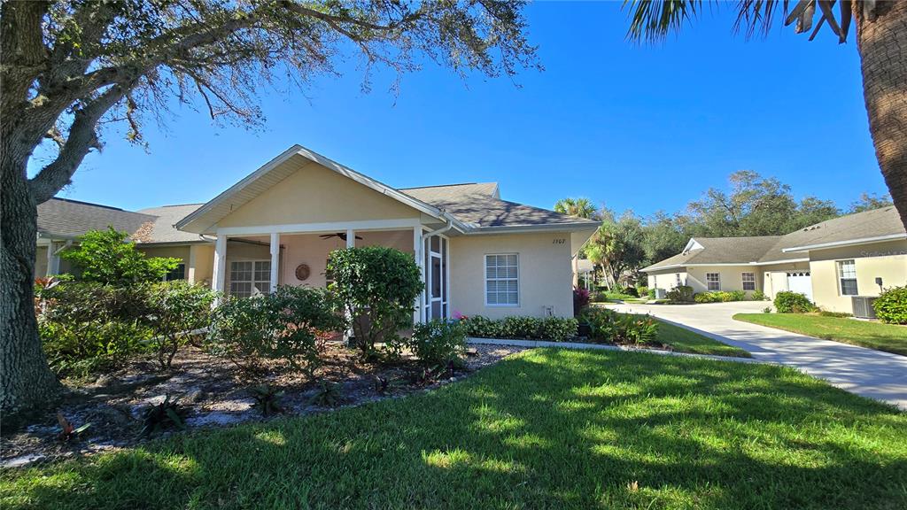 Welcome to popular gated heritage oak park! built around all the native oak trees with tree lined streets, you feel like you are in the country, yet conveniently located close to shopping, restaurants, medical facilities & only a short drive to the beach. this well-maintained villa shows pride of ownership & boasts 2 bedrooms, 2 full baths, bonus room/den (now used as a dining room) & large 2 car garage. villa has an inviting screened front porch to enjoy your morning coffee. as you enter thru the front door (w/an addl. storm door for light) into the large great room you will see that it opens to the kitchen which makes it a perfect setting for entertaining. volume 9' 4' ceilings thru-out villa makes it feel even larger. kitchen has breakfast bar, closet pantry, & is totally equipped with all the appliances inc. newer bosch dishwasher & french door refrigerator. roomy master bedroom w/large walk-in closet, & ensuite master bath w/dual sinks & walk-in shower. split floorplan w/2nd bedroom and bath on other side of villa for privacy. there is an addl. side door w/screen door from the driveway into the villa. laundry area is in the garage w/newer front load washer & dryer. garage has pull down staircase for storage, laundry tub, electric screen on garage, & newer a/c-heat in 2020. other features inc. porcelain tile plank floors in entire villa, tile floor on the front porch, ceiling fans thru-out, window treatments thru-out, & more. truly move in condition! heritage oak pak is an active gated community with an activity's director on staff planning many activities for your enjoyment. community offers many amenities inc. a large clubhouse, heated pool, tennis courts, pickle ball, bocce ball, shuffleboard, horseshoes, lending library & billiard's room & is a pet friendly community! not in flood zone.Villa 2 bedrooms - HERITAGE OAK PARK for Sale