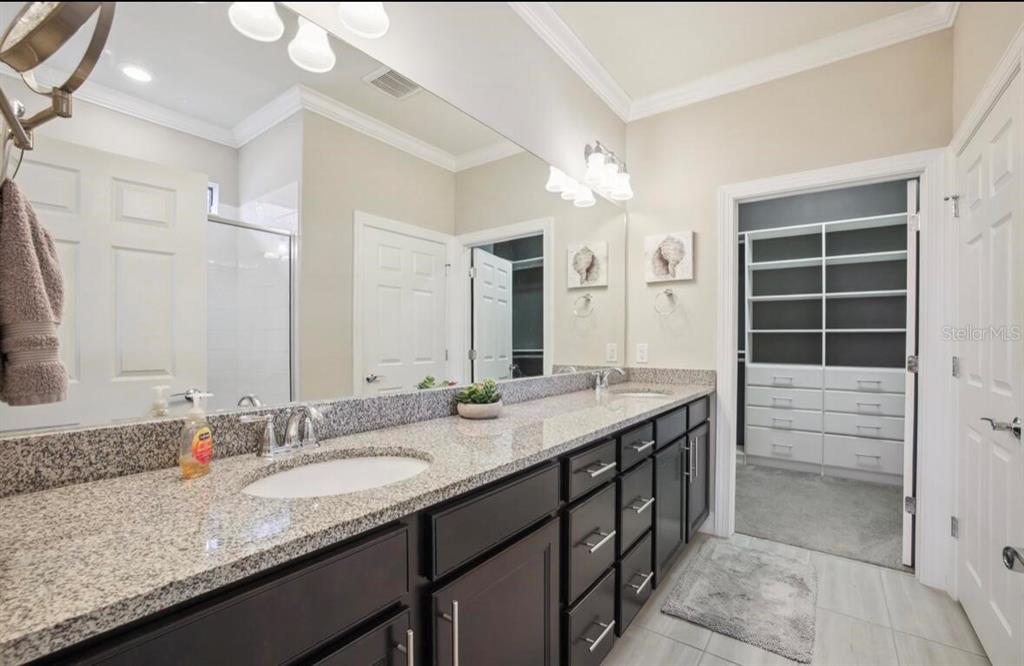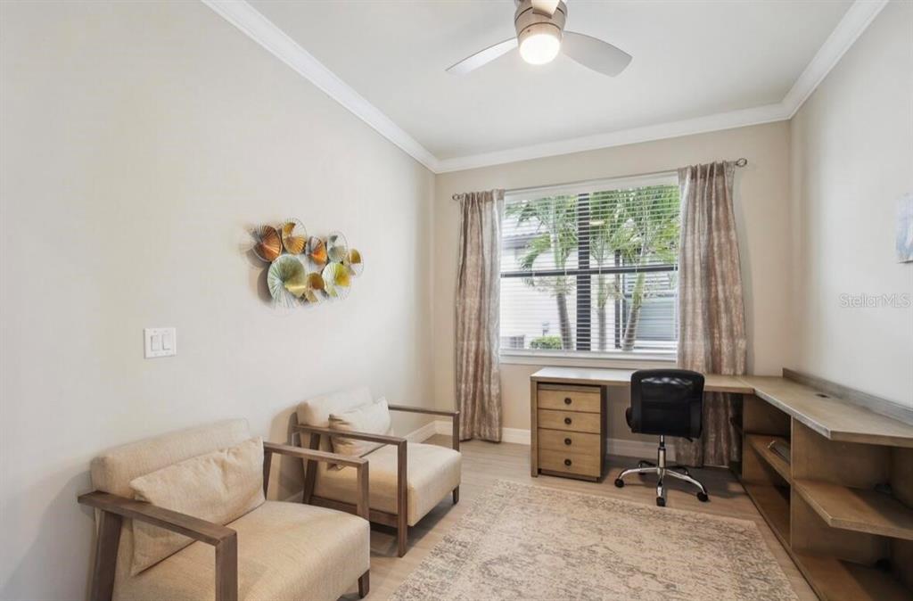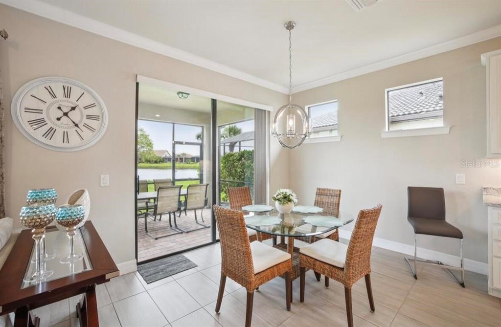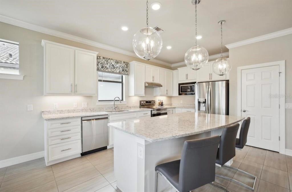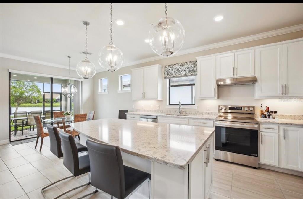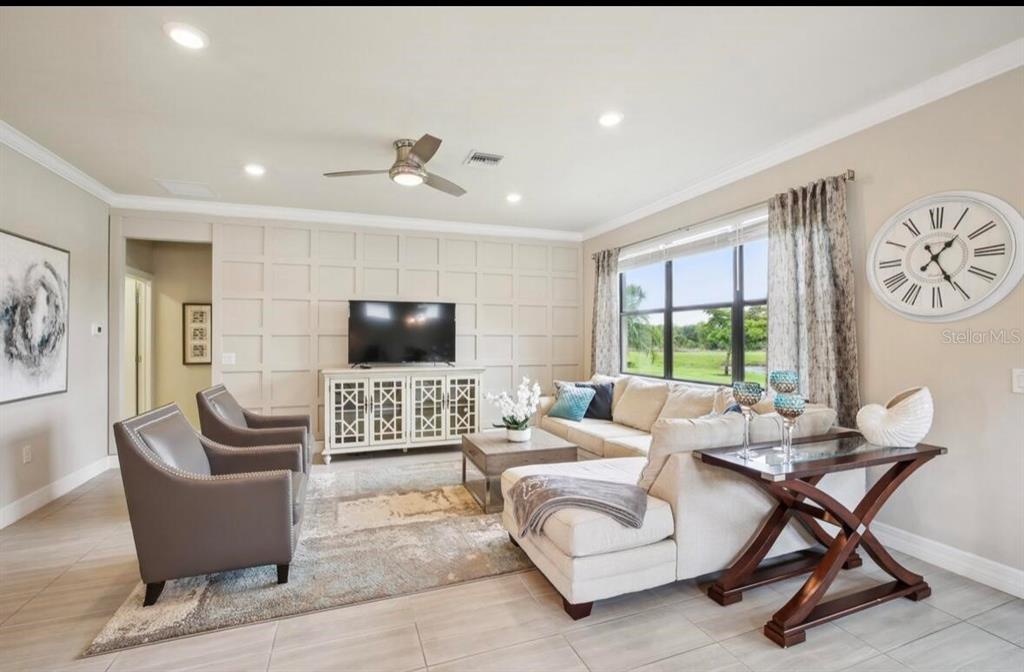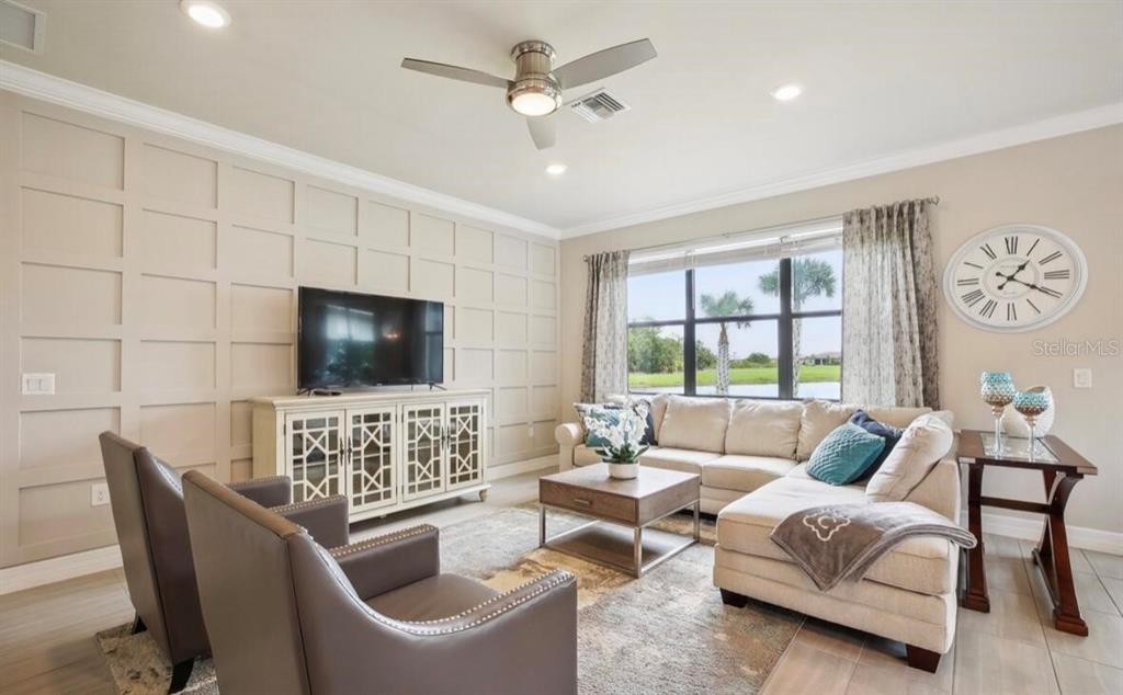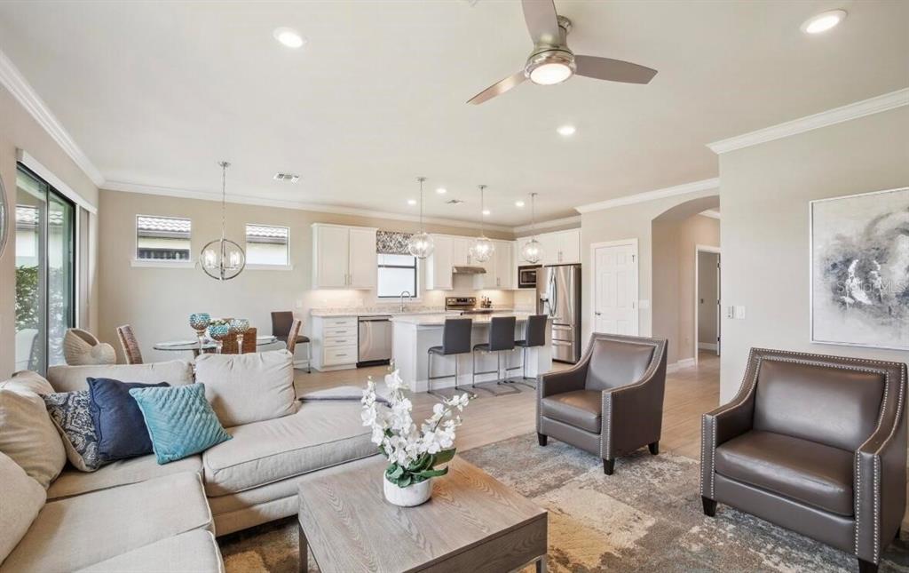 Welcome to the stunning, fully furnished two bedroom, two bath ranch home with a den, located in the highly desirable resort community of islandwalk. from the moment you enter through the newly installed leaded glass front door, you’ll be greeted by a light filled foyer and an open floor plan ideal for entertaining. this beautifully decorated home includes all furniture, decor, and accessories in the sale price, making it truly move-in ready. interior features include extensive crown molding, 5 1/4 inch baseboards, an architectural accent wall in the family room, and upgraded tile flooring throughout the main living areas and baths. the gourmet kitchen is a chef’s dream offering upgraded cabinetry, quartz countertops, brand, new stainless steel appliances, and large pendant lights that add ambience and style. the spacious family room is filled with natural light, thanks to a trio of windows and a sliding glass door that opens to stunning water views. ceiling fans grace the family room, and both bedrooms while a glass chandelier in the master suite. the large laundry room comes fully equipped with washer, dryer, and a walk-in pantry for extra storage. step outside to your private screened-in lanai where you can relax and enjoy florida’s natural wildlife. a generous two car garage completes the package. living in islandwalk means access to world class amenities, including two club houses, two resort style pools, pickleball, bocce ball, hard tru tennis courts, two fitness centers, and miles of scenic, walking, and biking trails. the community is golf cart friendly, and high-speed internet, and cable tv are included in your hoa fees. located just minutes from cool today park, home of the brave spring training, and the many restaurants, shops, and events nearby wellen park. you’re also just a short distance from i 75, downtown venice, and the beautiful gulf coast beaches. with its luxurious upgrades, unbeatable location, and included furnishings, this light and bright home offers an incredible opportunity to live the resort lifestyle every day.13084 RINELLA, VENICE, FL 34293