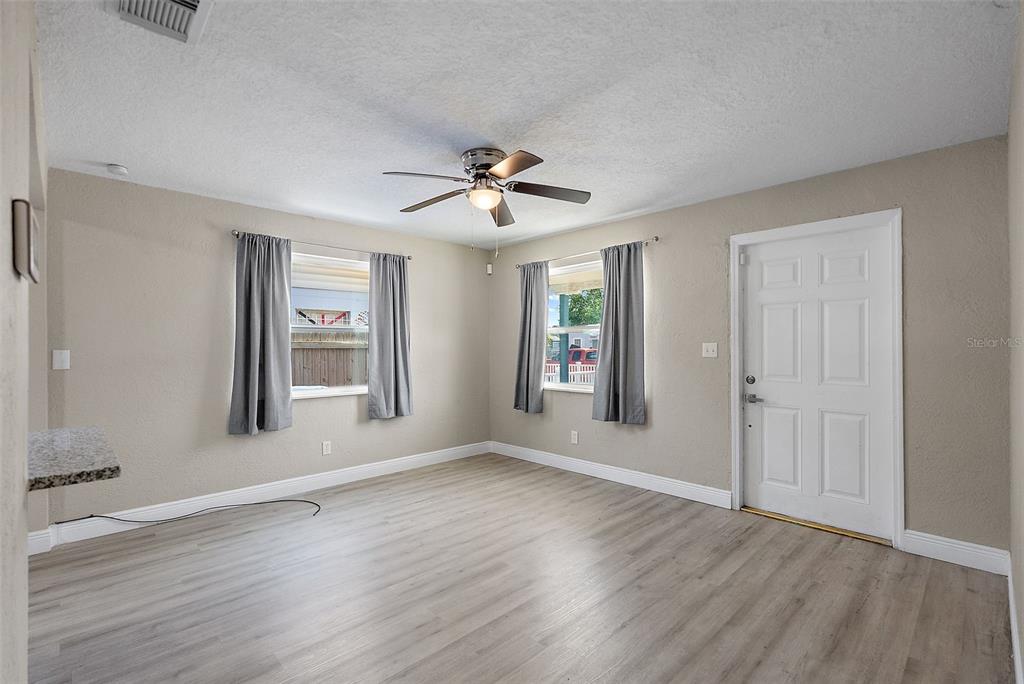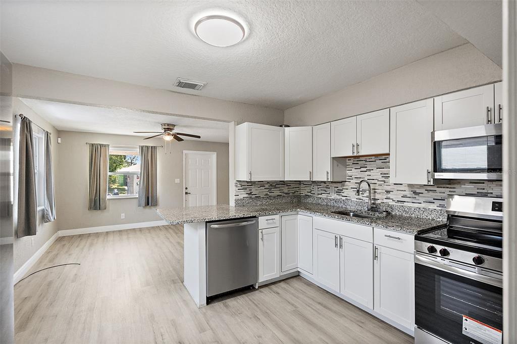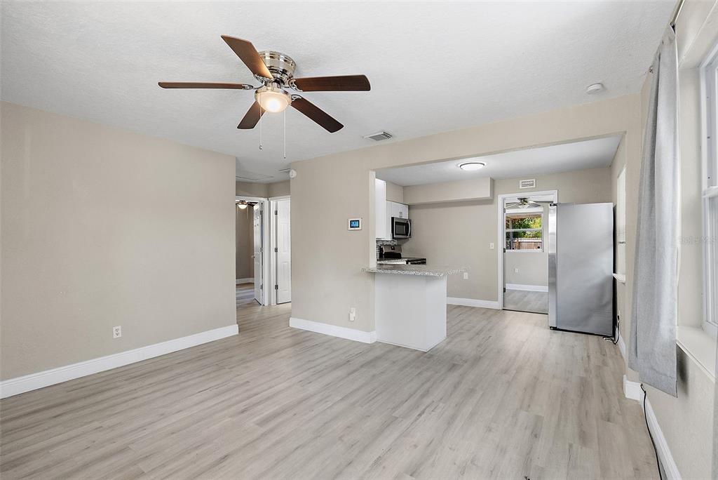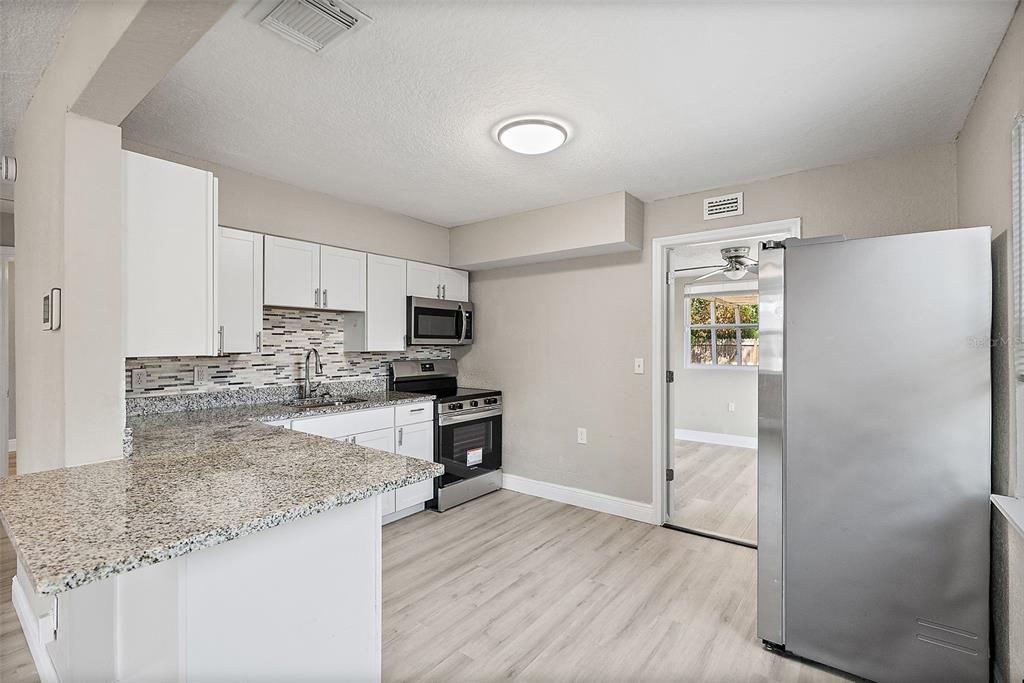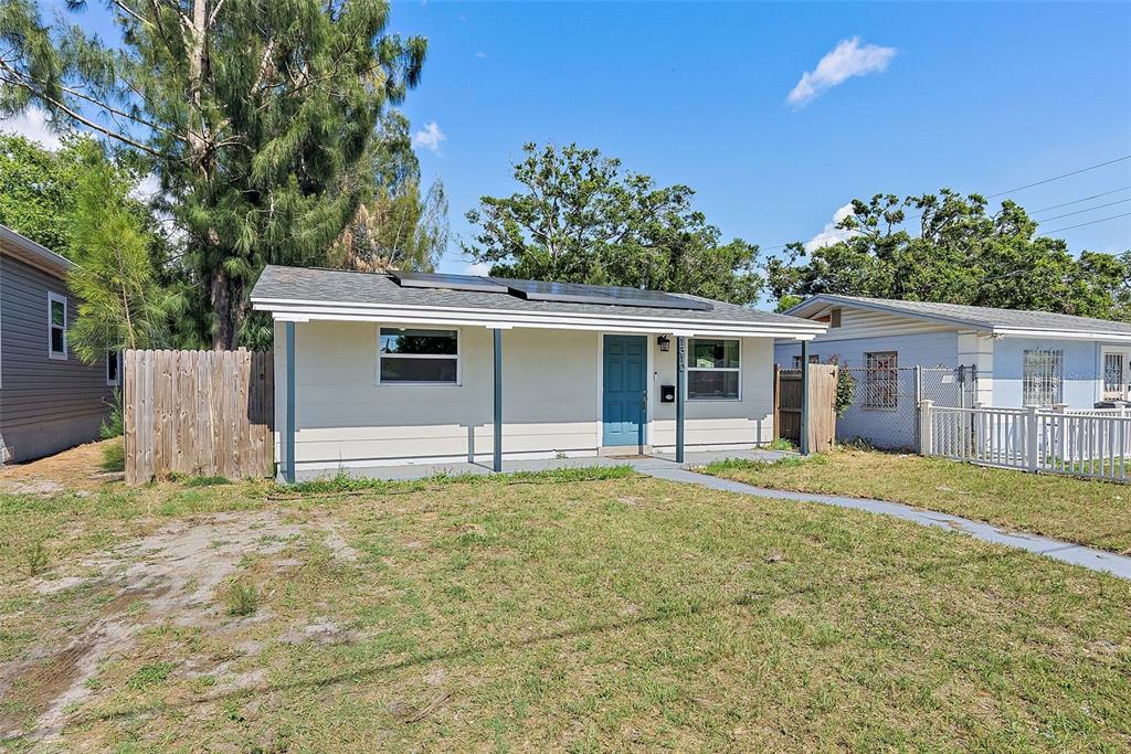 Welcome to this beautifully remodeled st. petersburg home, offering inviting curb appeal with a charming front porch and a fully fenced backyard, perfect for outdoor enjoyment. step inside to discover a bright and stylish interior featuring vinyl plank flooring throughout and an open layout that maximizes the space. the updated kitchen boasts newer cabinets, gleaming granite countertops, and stainless steel appliances, creating a modern and functional cooking space. the home includes three well-sized bedrooms and an updated bathroom, providing comfort and convenience for everyday living. recent upgrades such as solar panels, a newer roof, impact windows, updated power panel, and newer water heater offer peace of mind for years to come. located directly across from the childs park recreation and fitness center with a water park, this home is just under 10 minutes from vibrant downtown st. pete and the world-renowned gulf beaches, making it an ideal spot for those seeking both comfort and convenience in a central location.1310 43RD S, ST PETERSBURG, FL 33711