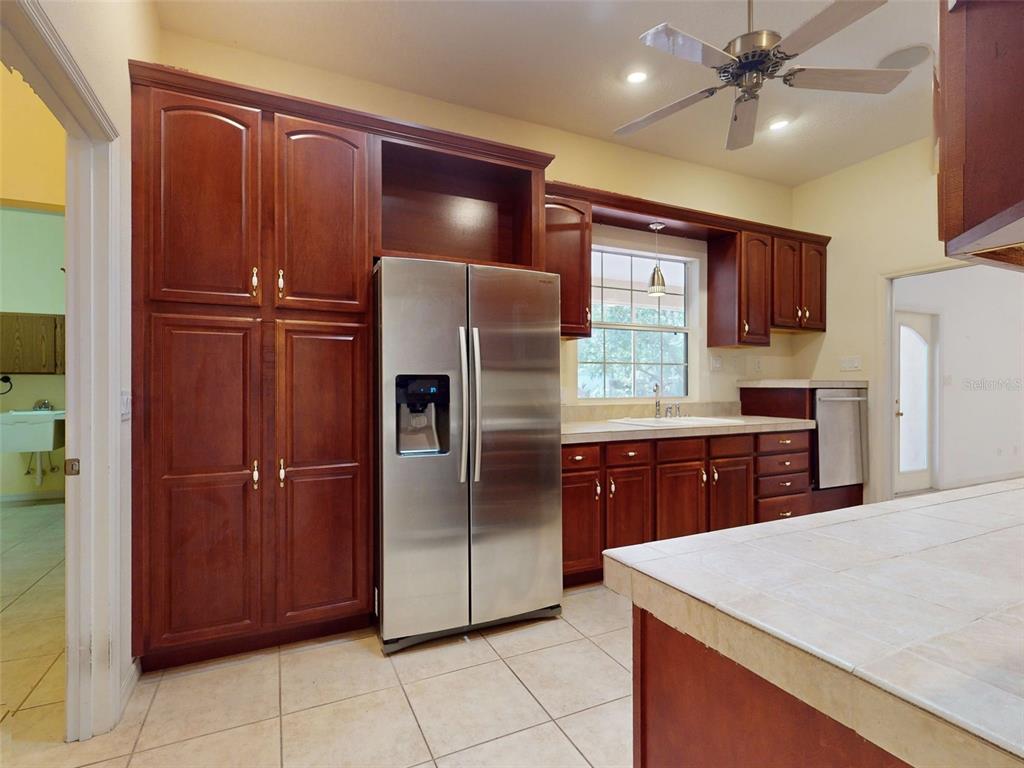 Price improvement!! just 1-mile from the villages!! nestled in the picturesque community of fruitland park, this exceptional 3-bedroom, 2-bathroom custom home is a true gem, offering easy access to the villages, with its array of restaurants, shopping, and entertainment options. as you approach this beautifully designed property, you’re welcomed by an elegant entry that opens into a spacious foyer. to your left, a formal dining room awaits your family gatherings, while to the right, a versatile den that can double as a third bedroom offers a perfect retreat or home office. the heart of this home is the gourmet kitchen, a cook’s dream featuring exquisite cherry cabinets, stainless steel appliances that include a natural gas stove and an elevated dishwasher for ease of access, a large pantry, built-in spice cabinets, and a wine cooler. natural light floods the space through multiple solar tubes and a large window, creating a warm and inviting atmosphere. adjacent to the kitchen, the generously sized laundry room offers ample space for crafts or hobbies, while the expansive 2.5-car garage includes a workshop area, ideal for any project. the inviting family room is perfect for entertaining with a cozy wood-burning fireplace. two additional large closets behind the fireplace offers even more storage. from here, step out onto the large screened-in lanai, where you’ll find a relaxing hot tub and a stunning view of the meticulously landscaped backyard. this outdoor oasis includes a tiki hut, a tranquil pond stocked with large koi, and plenty of room to add a pool, making it a true tropical paradise. retreat to the master suite, featuring a spacious 9x8 walk-in closet and a luxurious master bath complete with dual vanities, a spa tub, and a walk-in shower with multiple nozzles for an indulgent experience. additional highlights of this home include kohler plumbing fixtures, marble flooring in the master bath shower, tile flooring throughout with no transitions, and architectural shingles. this home also has a brand-new a/c unit installed in 2024. the backyard is fully fenced with a chain-link fence, and a separate utility shed that provides extra storage space. located just a short drive from leesburg and lake griffin, this property offers the perfect blend of peaceful living and convenience. whether you enjoy fishing, boating, or simply relaxing at home, this custom-built residence has it all. don’t miss your chance to own this incredible property! call today to schedule your private showing!1311 MANDARIN, FRUITLAND PARK, FL 34731