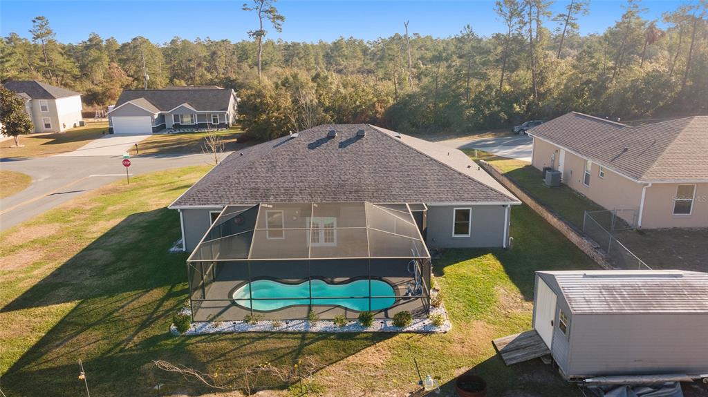 New price!! welcome to 13198 sw 29th cir., ocala, fl 34473! this move-in-ready home, built in 2006, combines modern updates with timeless design. constructed with a durable block build and stucco façade, the property features 4 bedrooms, 2 bathrooms, and a 2-car garage, offering 2,118 square feet of finished heated living space and a total of 2,518 square feet under the roof. situated on a 0.24-acre corner lot, this home exudes curb appeal and charm. inside, the open floor plan includes an office, spacious family room, formal living room, and a large kitchen with granite countertops, a breakfast bar, and an eat-in dining area. the large owner’s bedroom suite includes a walk-in closet and boasts a luxurious ensuite bathroom with a double vanity featuring granite countertops, a soaking tub, and a separate shower. newly installed luxury vinyl plank flooring throughout the home in 2024 adds a fresh, contemporary feel, complemented by vaulted ceilings, recessed lighting, updated appliances, light fixtures, and ceiling fans. outdoor living is a highlight with an inground fiberglass saltwater swimming pool with pool screen enclosure, perfect for relaxing and entertaining. added features include an outdoor shed for storage and significant updates to the property includes a new 40-year architectural shingled roof installed in 2023 along with energy-efficient double-pane, low-e with tinted windows installed in 2021 and whole lawn irrigation system. nestled in a quiet, established neighborhood with no hoa, this property is conveniently located near shopping, dining, and other amenities. this home is a true gem and a must-see for buyers seeking comfort, style, and convenience.13198 SW 29TH, OCALA, FL 34473