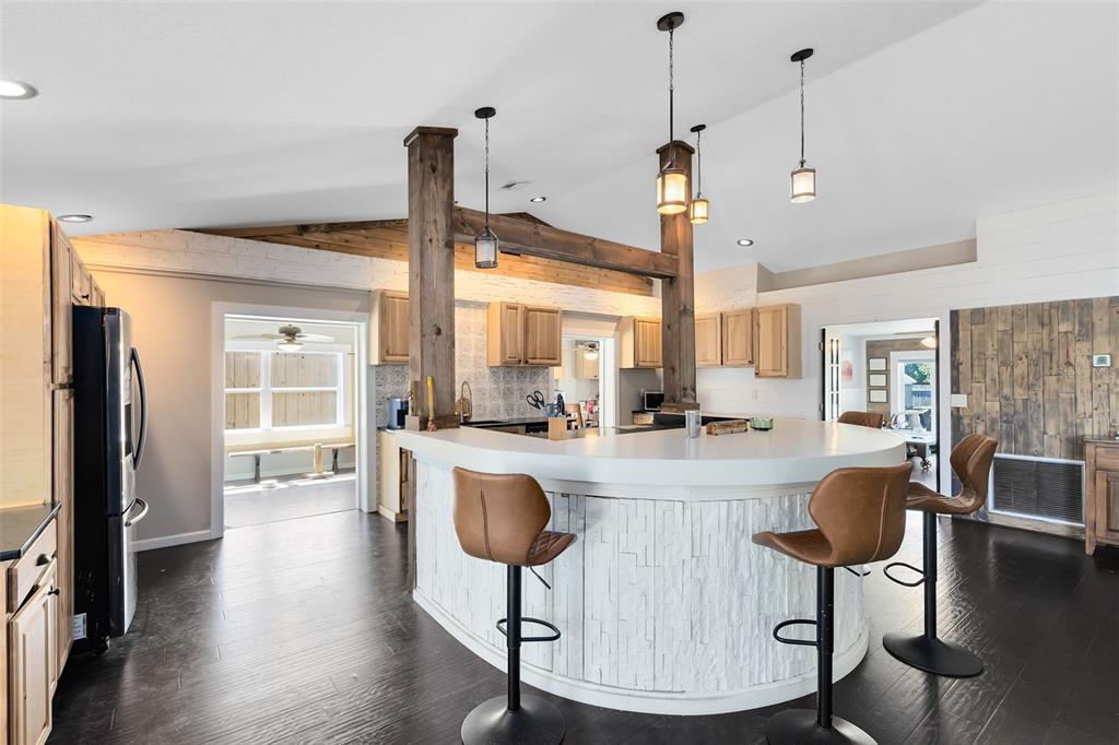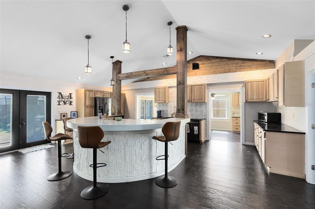 Welcome to a home unlike any other in winter haven! just minutes from legoland and local shopping, this stunning 3-bedroom, 2-bath home offers a unique, spacious floor plan perfect for entertaining, relaxing, and everyday living — all with no hoa restrictions! step inside to soaring high ceilings, large open rooms, and a flexible layout designed for fun and comfort. the bonus room features new laminate flooring, ceiling fans, and expansive panoramic windows, creating a bright and airy space perfect for a media room, fitness space, or game room. cozy up in the sunken family room with an electric fireplace — a perfect spot for movie nights or quiet evenings. at the heart of the home, the semi-circular kitchen island becomes a natural gathering space, featuring a range/oven, granite countertops, and stainless steel appliances. a separate dining area with a butler’s pantry makes entertaining easy and elegant. throughout the home, you'll find beautiful wood and stone accents, adding warmth and character you won’t find in typical homes. the oversized backyard is fully fenced and offers endless possibilities — from backyard bbqs to adding a pool. two decks create even more space for relaxing or entertaining outdoors. plus, there's room to park your boat, rv, or add extra storage. immerse yourself in luxury with a host of recent upgrades that include a new a/c (2024), drain field/septic tank (2023), newer double-pane windows, updated electrical panel, and more. the extended driveway easily fits 4+ vehicles and if you’re tired of cookie-cutter homes and want something truly memorable, this is the one you’ll remember! this residence is move-in ready and "will not last". don't miss out on the opportunity to own one of the nicest homes in the area for the price! call us now for a private showing.132 ALACHUA, WINTER HAVEN, FL 33884