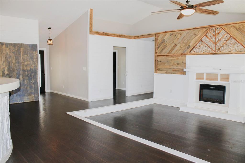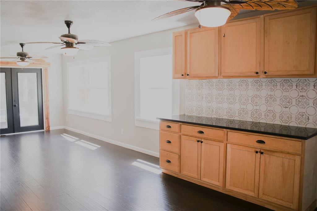 Vaulted Ceiling(s)Ceiling Fan(s) Eating Space In Kitchen High Ceilings Stone Counters Thermostat Open Floorplan Window Treatments Solid Wood Cabinets Kitchen/Family Room ComboCathedral Ceiling(s)Exterior Features: