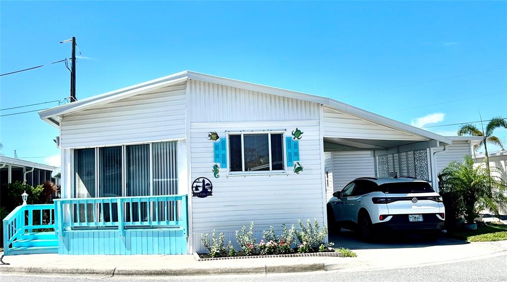 Relax you just found your spot in the sun. welcome to harbor lights a waterfront 55+ community. you just found the perfect home for family holiday gatherings. the moment you enter the door it feels like vacation time. be impressed with the gorgeous custom marmoleum inlaid flooring thru out in soft muted sand tones. designer paint in soft natural light fills the open space living, dining, kitchen area, dishwasher. spacious master painted in soft aqua with built in drawers, second bedroom pale blue with built inn cabinetry. inviting enclosed lanai to watch the world go by. small outdoor storage shed. carport and outdoor sitting area! stacked washer/dryer, stove top, microwave. metal roof. amenities include clubhouse, heated pool, boat slips, launch ramp, dry boat parking, tennis, pickleball, shuffleboard, ceramics, woodshop, legacy trail, sunset park. no lot rent! maintenance $250 monthly. ev charger. happy people live here. many community events! golf? free sunsets daily. pets ok.132 SOUTH PARK, VENICE, FL 34285