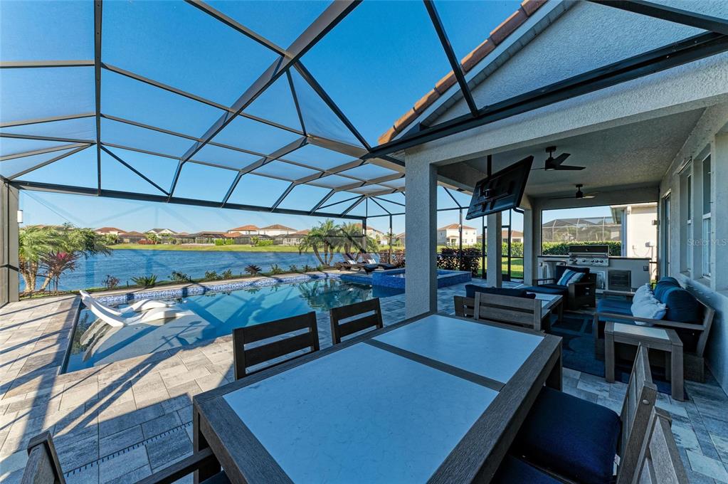 This gorgeous 4-bedroom plus study, 3-bath home features many new upgrades and an incredible custom pool & spa with a soothing backdrop of a tranquil lake view. the home is filled with soft natural light, centered around a beautiful kitchen with all new high-end appliances. the current owners have spared no expense, adding over $60k of recent upgrades including plantation shutters, an outdoor kitchen, custom closet shelving, new designer lighting, new landscaping, a new island counter, and new appliances. the living area is inviting. the kitchen is open and bright with overhead lighting, white cabinets, a new quartz island, and lovely designer details. the well-appointed primary bedroom is ensuite with a frameless shower, his-and-her sinks, and quartz countertops. three additional guest bedrooms provide flexible space and privacy for family and loved ones. the outdoor area is a resort setting - perfect for unwinding or entertaining. savanna is in a prime lakewood ranch location and features a pool, clubhouse, fitness center, basketball court, playground, and two dog parks. enjoy the convenience of being near world-class shopping and dining at university town center, st. petersburg, and downtown sarasota. located within an a+ rated school system. don't miss the opportunity to experience the best of florida living in this exceptional home.13228 SAW PALM CRK, LAKEWOOD RANCH, FL 34211