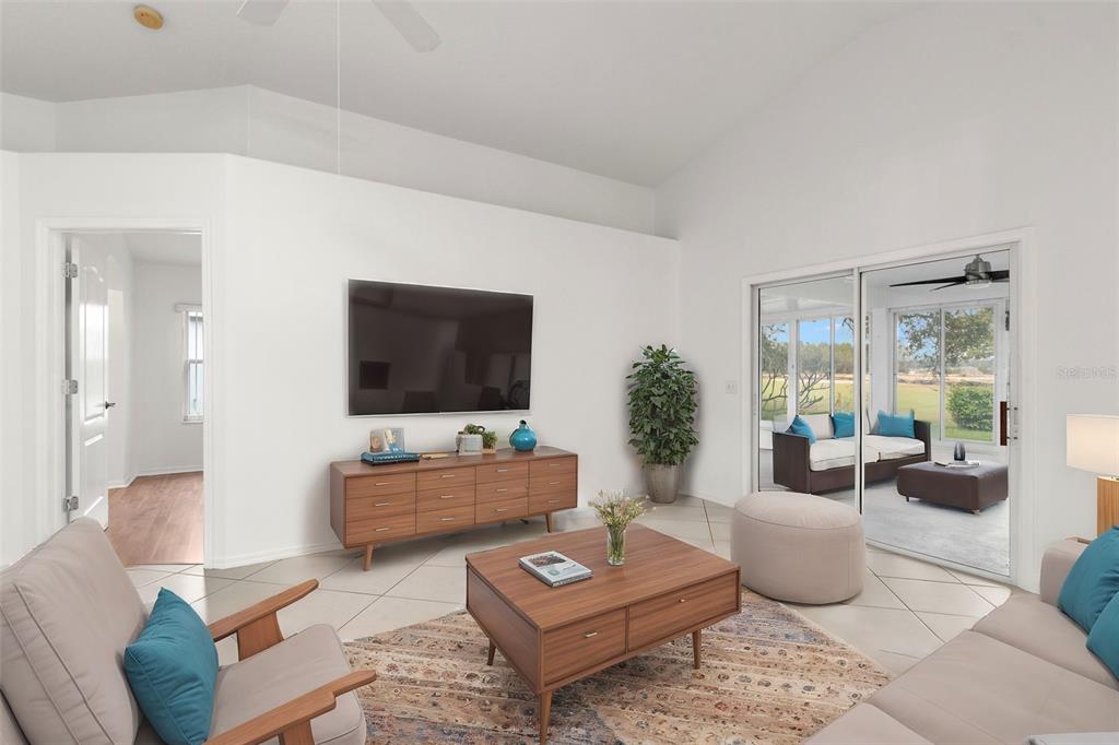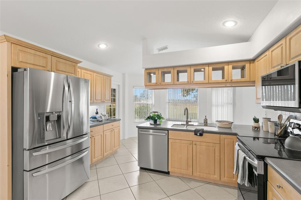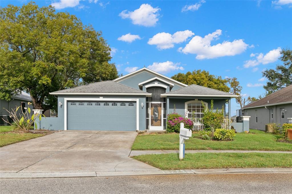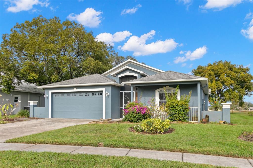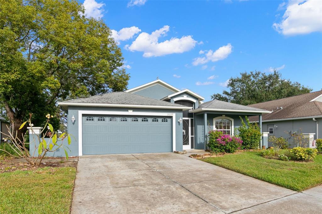 One or more photo(s) has been virtually staged. welcome to your dream home on the golf course! this stunning bungalow style property welcomes you with an inviting open porch, the perfect spot to unwind and savor sunsets. the beautifully landscaped yard, featuring vibrant jacaranda and plumeria trees, creates a serene, tropical ambiance. step inside through a screened entryway to a spacious family room with soaring vaulted ceilings. the space flows seamlessly into an enclosed lanai with breathtaking golf course views. the lanai, equipped with screened windows and an overhead fan, offers year-round comfort—ideal for morning coffee or evening cocktails overlooking the serene landscape. the formal dining area, accented by a modern chandelier, sets the stage for memorable gatherings. the chef-inspired kitchen boasts solid countertops, sleek stainless steel lg appliances, blonde wood-tone cabinetry, a large pantry, and a sunny bay window with a cozy breakfast nook. this home offers a thoughtfully designed layout: the front bedroom is bright and airy, with a spacious closet and ample natural light. the common bathroom features white raised panel cabinetry and clean, modern finishes. an additional bedroom doubles as an office or guest room, with double pocket doors connecting to the family room. the primary suite is a true retreat, with a walk-in closet, a secondary wall closet, and an en-suite bathroom featuring a walk-in shower, raised panel cabinetry, excellent lighting, and a built-in linen cabinet. additional features include: raised panel doors and clean, modern finishes throughout, a laundry room conveniently located off the two-car garage, top-quality appliances and cabinetry with crown molding trim, ensuring both style and functionality. this property perfectly blends comfort, style, and a picturesque setting—don’t miss the chance to call it home! community perks include living in a vibrant neighborhood featuring a clubhouse, pool, and an array of amenities. hop on your golf cart and explore the scenic surroundings or enjoy the community golf course at your leisure. this home is move-in ready and waiting for you. schedule your visit today and make meadow oaks your forever home! ***seller will replace the roof with an acceptable offer.**13229 GOLF RDG, HUDSON, FL 34669
