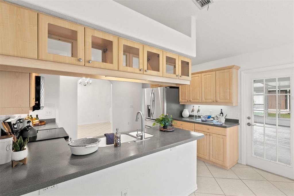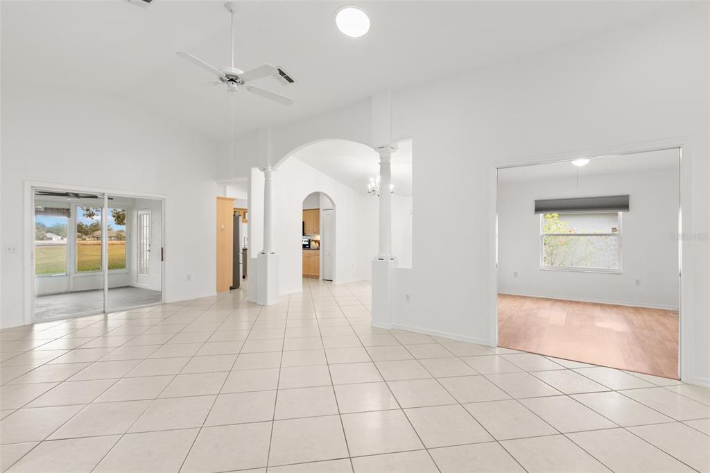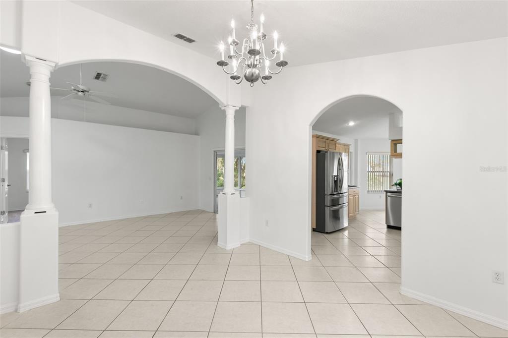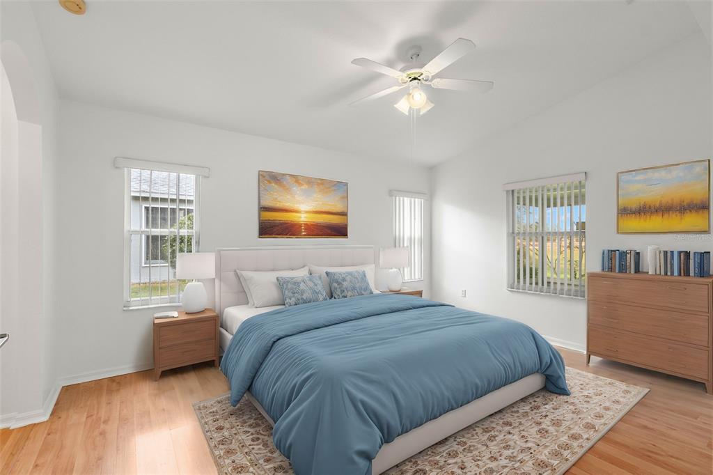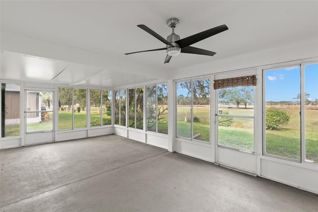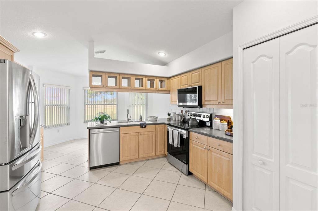 One or more photo(s) has been virtually staged. welcome to your dream home on the golf course! this stunning bungalow style property welcomes you with an inviting open porch, the perfect spot to unwind and savor sunsets. the beautifully landscaped yard, featuring vibrant jacaranda and plumeria trees, creates a serene, tropical ambiance. step inside through a screened entryway to a spacious family room with soaring vaulted ceilings. the space flows seamlessly into an enclosed lanai with breathtaking golf course views. the lanai, equipped with screened windows and an overhead fan, offers year-round comfort—ideal for morning coffee or evening cocktails overlooking the serene landscape. the formal dining area, accented by a modern chandelier, sets the stage for memorable gatherings. the chef-inspired kitchen boasts solid countertops, sleek stainless steel lg appliances, blonde wood-tone cabinetry, a large pantry, and a sunny bay window with a cozy breakfast nook. this home offers a thoughtfully designed layout: the front bedroom is bright and airy, with a spacious closet and ample natural light. the common bathroom features white raised panel cabinetry and clean, modern finishes. an additional bedroom doubles as an office or guest room, with double pocket doors connecting to the family room. the primary suite is a true retreat, with a walk-in closet, a secondary wall closet, and an en-suite bathroom featuring a walk-in shower, raised panel cabinetry, excellent lighting, and a built-in linen cabinet. additional features include: raised panel doors and clean, modern finishes throughout, a laundry room conveniently located off the two-car garage, top-quality appliances and cabinetry with crown molding trim, ensuring both style and functionality. this property perfectly blends comfort, style, and a picturesque setting—don’t miss the chance to call it home! community perks include living in a vibrant neighborhood featuring a clubhouse, pool, and an array of amenities. hop on your golf cart and explore the scenic surroundings or enjoy the community golf course at your leisure. this home is move-in ready and waiting for you. schedule your visit today and make meadow oaks your forever home! ***seller will replace the roof with an acceptable offer.**13229 GOLF RDG, HUDSON, FL 34669