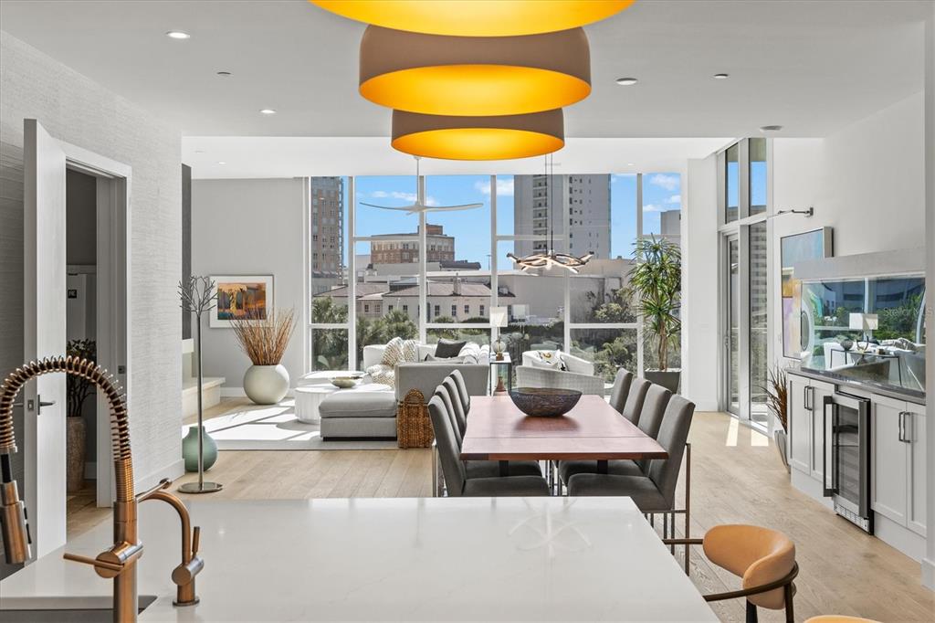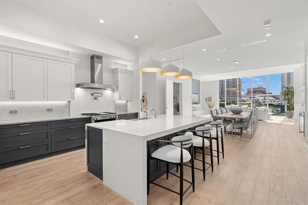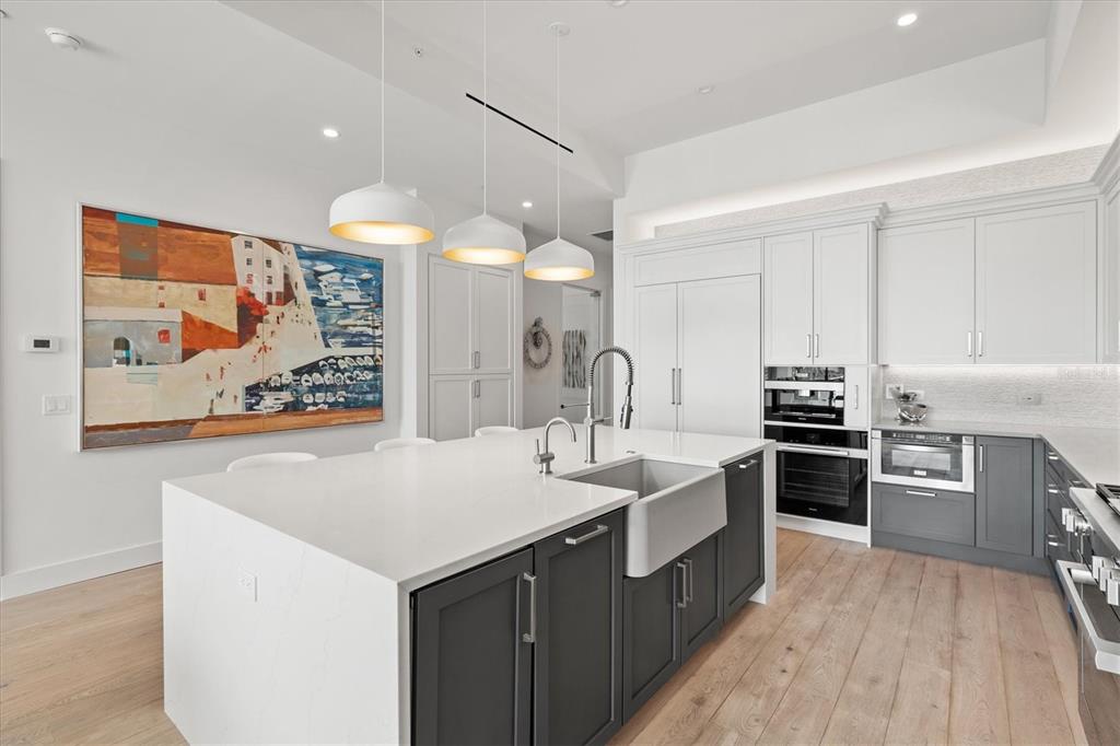 Welcome to 3w at the collection, where you will experience the epitome of modern luxury in this one-of-a-kind, boutique condo located in the heart of downtown sarasota just steps away from world-class dining, shopping, and cultural attractions. every detail of this custom residence has been meticulously curated with high-end designer selections and finishes, offering an unparalleled living experience. as you enter the unit by way of private elevator access, you’ll be delighted by the beautifully styled entrance leading into the home. immediately you will notice an abundance of natural light shining through the 12-ft-floor-to-ceiling windows and doors. the sleek, open-concept floor plan showcases premium finishes throughout the units 3,300+ sq ft of interior living space and 1,000 sq ft of private patio space. no expense was spared for upgrades. the kitchen is a true masterpiece with custom soft-close wood cabinetry, quartz countertops with a waterfall edge island and stone backsplash, top-of-the-line miele appliances including a built-in smart coffee system and ice maker, under and over cabinet lighting, and additional storage. each bedroom is equipped with a custom closet system, a luxurious en-suite bath with marble flooring, flash tile and custom vanities and led illuminated mirrors, and private balcony access. the office features built-in storage with stone countertops and a beautiful glass door. stunning stone accents, vibrant wallpaper, european white oak flooring and exquisite light fixtures throughout the residence perfectly blend sophistication and comfort, creating a masterpiece of contemporary design. home automation, including interior automated shades by wicked smart homes, allows for an easy lock and leave process. the exterior living space is just as remarkable and perfect for entertaining with a pizza oven, refrigerator, sink, a firepit and multiple seating areas. situated in the heart of the art district in downtown sarasota with only 12 units in the building, residents of the collection enjoy a very private and exclusive living experience. the state-of-the-art building has a 24-hour camera and building access system in place with key fob, entry code, remote, card, and phone entry. the ground floor ensures residents have everything they need right at their fingertips with a concierge, mail room, covered private parking, and a temperature-controlled storage area. 3w has two parking spaces: the handicap parking space and the space directly across from that. the second floor is where residents will enjoy the impressive onsite amenities which include a pool and spa, daybeds, a yoga and fitness center, sauna, entertainment center with a fireplace, tv, and wet bar, and conference style meeting room. this rare gem is the ultimate expression of style and convenience, being sold furnished with some exclusions, and located within walking distance to bayfront park, sarasota main street, starbucks, whole foods, and more!1335 2ND #301, SARASOTA, FL 34236