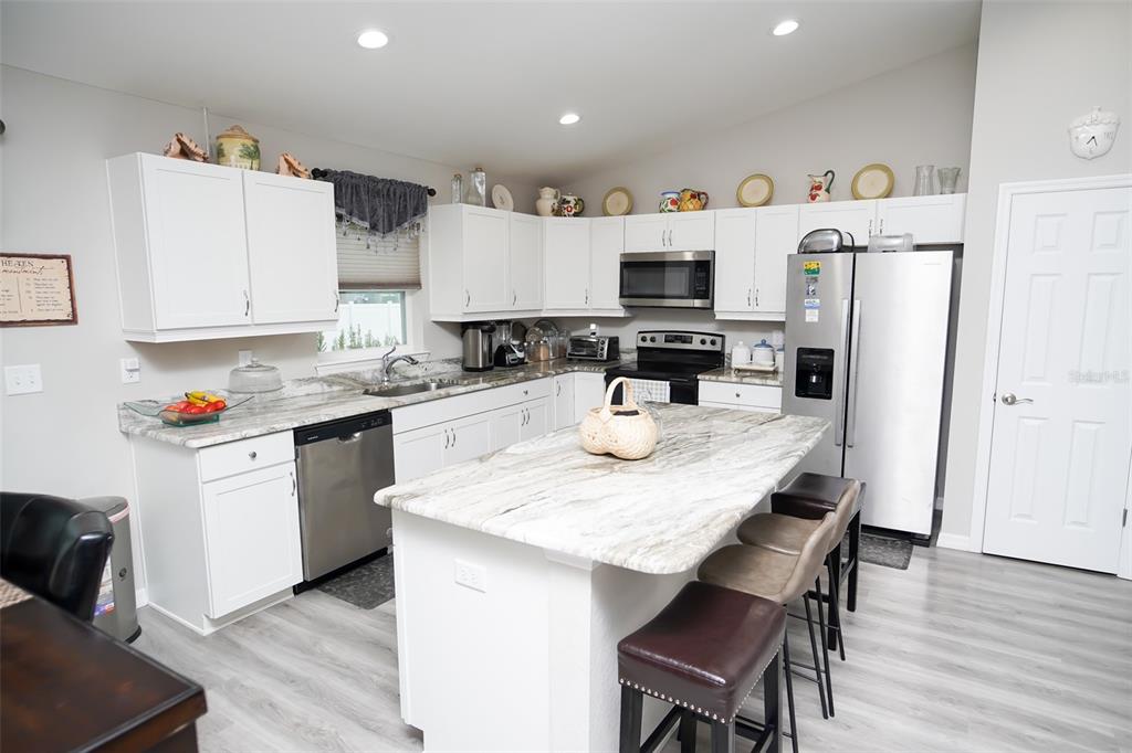 Welcome to this stunning 3-bedroom, 2-bath home featuring a spacious and thoughtfully designed open floorplan. the main living areas and bedrooms are finished with durable and stylish luxury vinyl plank (lvp) flooring, while the bathrooms showcase elegant tile for a clean and polished look. the heart of the home is the gourmet kitchen, complete with wood shaker cabinets, sleek granite countertops, stainless steel appliances, and a large island perfect for meal prep or casual dining. whether you're hosting guests or enjoying a quiet night in, the open layout seamlessly connects the kitchen to the living and dining areas, creating a warm and inviting atmosphere. additional highlights include a 2-car garage, a water softener system for added comfort, and modern finishes throughout. this move-in-ready home offers the perfect blend of function and style—ideal for families, entertainers, or anyone seeking a low-maintenance lifestyle in a beautifully appointed space.13358 SW 111, DUNNELLON, FL 34432
