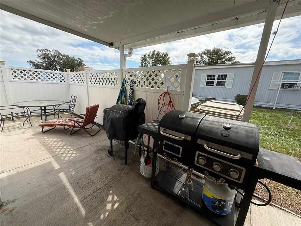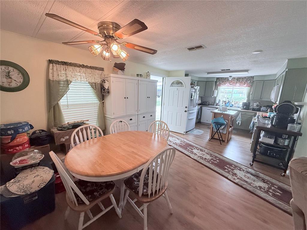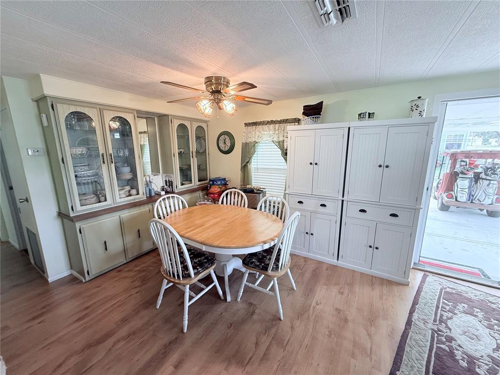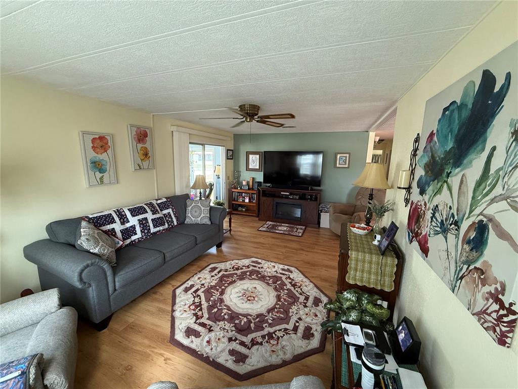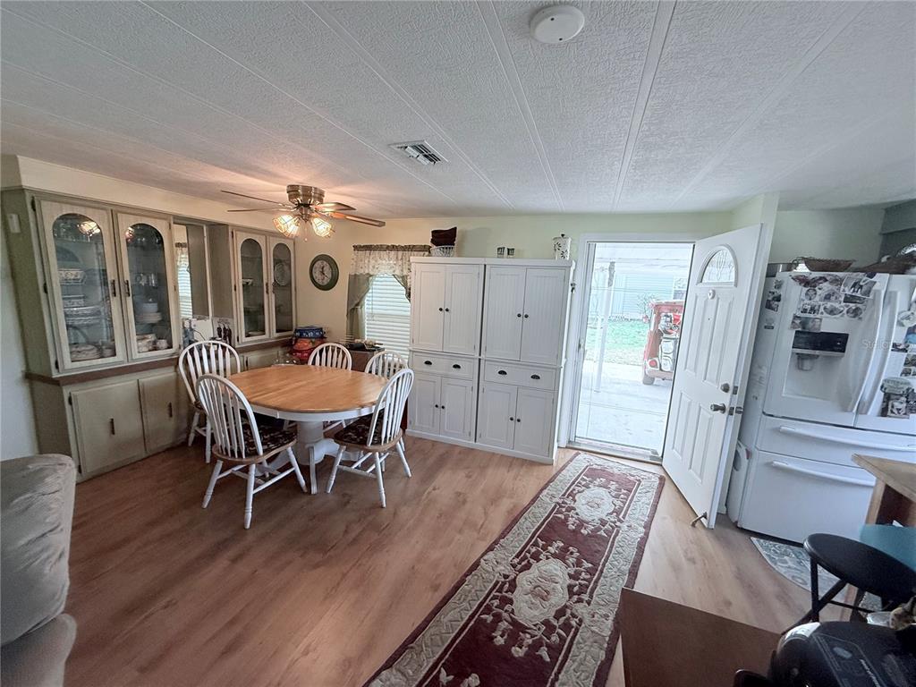 This land owned 2 bedroom, 2 bathroom home with a low hoa is ready for you to movie in. entering into the home you will notice that it is bright and airy with plenty of natural light and beautiful flooring throughout. the lovely kitchen has plenty of cabinet & counter space, electric range, built in microwave, dishwasher and large refrigerator with lower freezer drawers. the dining area features a built in china cabinet for display and extra storage. the large family room offers plenty of space to spread out and relax. the primary bedroom features an attached full bathroom with tub/shower and large walk in closet space. the second bedroom has plenty of storage and is perfect for your visiting guests. the main bathroom in the hall features a easy access walk in shower. the versatile florida room can be used as a craft space or home office. this charming residence is nestled in a vibrant, resort-style community, offering an all-inclusive lifestyle. this waterfront neighborhood enjoys access to a nine-hole golf course, gym, pool, sauna, baseball field, access to lake yale. the home itself sits on a spacious lot and features a private fenced patio creating the perfect setting for relaxing evenings in your private hot tub. this is a fantastic opportunity for a retirement retreat. schedule your private tour today to explore both the home and the incredible community!1340 LK, GRAND ISLAND, FL 32735