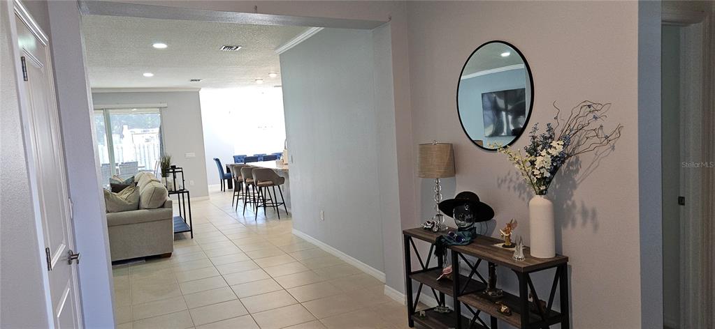 Split Bedroom Walk-In Closet(s) High Ceilings Stone Counters Thermostat Open Floorplan Window Treatments Solid Surface CountersCrown Molding Primary Bedroom Main Floor Kitchen/Family Room Combo Tray Ceiling(s) Smart Home In Wall Pest System Pest Guard SystemExterior Features: