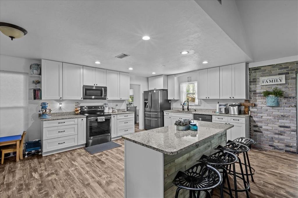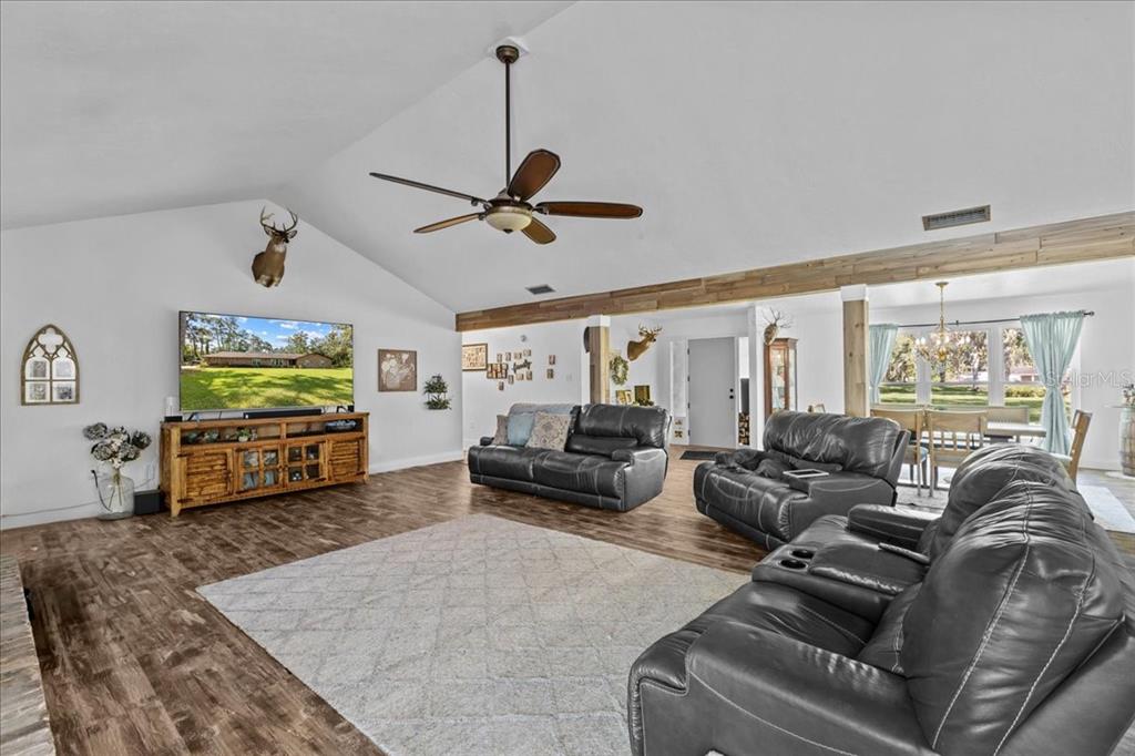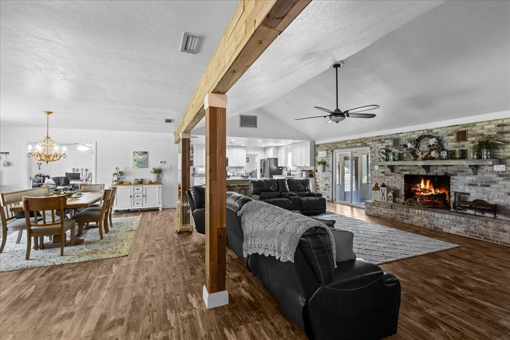 Serene country living and only minutes to town. this 4 bedroom/2.5 bathroom home has been beautifully updated with modern features while preserving the classic all brick ranch style. home is situated on five acres+ off a paved country road. a paved driveway leads up to this classic beauty--home is set back from the main road offering plenty of privacy. tall ceilings with exposed beam posts in the great room and a beautiful full wall brick wood burning fireplace are stunning focal points of the home. upgrades include luxury vinyl plank flooring in all areas except bathrooms, interior freshly painted, floor plan opened up to make the kitchen and living area open concept. the home has all new windows, sliding doors, light fixtures, new kitchen cabinets, granite counters, stainless steel appliances, deep luxury sink, and much more. you will enjoy four bedrooms on one side of home and a bonus office/flex room off the formal dining room. the kitchen has an island with seating. the bedrooms and bathrooms are very spacious. the home is on septic and city water and fiber internet for high speed internet. no more satellite internet! electric is provided by central florida electric. half of the property is cleared and manicured and the other half in the rear of the home is wooded. this home is surrounded by other beautiful homes. fully fenced backyard. a beautiful orchard awaits you with over 50 fruit trees including huckleberry, japanese plums, oranges, grapefruit, mulberries, figs, cumquats and 20 muscadine grape vines. it is like having your own private park. bonus outbuildings including rv carport on concrete pad, outbuilding with electric & carport w/chicken house tucked away behind building. enjoy low taxes in dixie county! not located in flood zone. "nestled between the suwannee and steinhatchee rivers, dixie county, florida is a hidden gem where untouched nature and timeless southern charm seamlessly intertwine. this enchanting destination offers a haven of tranquility and adventure, inviting visitors to immerse themselves in the unspoiled beauty and captivating allure of old florida.1363 NORTHEAST HWY 351, CROSS CITY, FL 32628
