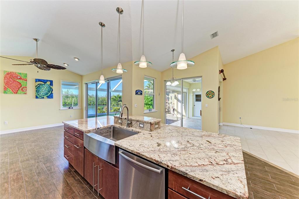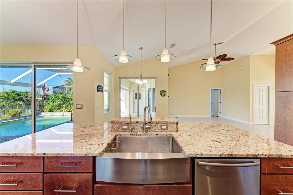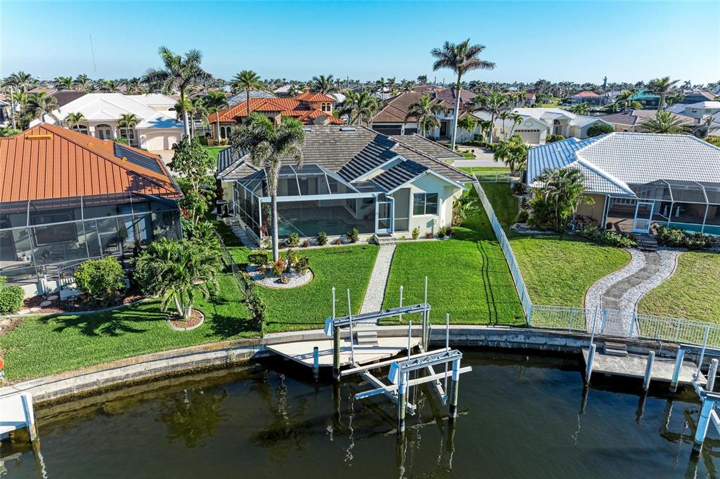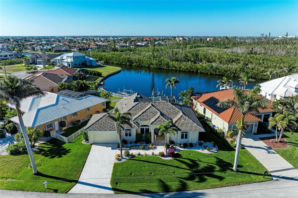 One or more photo(s) has been virtually staged. welcome to your dream home in beautiful punta gorda isles! this meticulously maintained three-bedroom, 2.5-bathroom residence radiates pride in ownership from the moment you arrive. the beautifully landscaped exterior and well-kept surroundings create an inviting first impression. enjoy peace of mind with a newer tile roof and storm smart hurricane shades. as you step inside, you’ll be welcomed by stunning views through the 8-foot sliding glass doors that lead to a paver pool deck, overlooking an expansive 200-foot-wide turnaround basin. this prime location allows for easy access to your concrete dock and 16,000-pound boat lift, making your water adventures effortless. enjoy breathtaking sunsets with the desirable northwestern exposure while relaxing by the heated saltwater pool, which features a dedicated half bath and an outdoor shower for added convenience. the undeveloped land across the canal engulfs the home with privacy and provides a serene setting not easily found in punta gorda isles waterways. spanning nearly 2,500 square feet, this home boasts a thoughtfully designed split floor plan that offers versatile living options, including two spacious living areas and a dedicated dining space. the soaring vaulted ceilings enhance the grand ambiance throughout the home. the spacious kitchen is a chef's delight, featuring a large island that’s perfect for quick meals or entertaining guests. enjoy your high-end wolf burner stove with a stylish range hood, a wolf oven/microwave combo, a stainless-steel farmhouse sink, a stainless-steel refrigerator, and dishwasher. beautifully combining functionality with modern elegance. the stunning granite countertops in a neutral tone complement the stylish backsplash and modern cabinetry making the kitchen a focal point of the home. your guests will feel right at home in their own retreat, as the third bedroom conveniently offers access to the pool deck, making it easy to enjoy the outdoor oasis. the oversized two-car garage with epoxy flooring provides ample storage space or the perfect workshop for your hobbies. the street is beautifully maintained, surrounded by other homes that also reflect a strong sense of pride in ownership. you’ll enjoy the lovely aesthetics of the neighborhood as you drive to and from your home each day, enhancing your overall living experience. don’t miss the opportunity to own this exceptional property in punta gorda isles—where luxury meets lifestyle! be sure to click the full virtual tour links for details!1368 GREBE, PUNTA GORDA, FL 33950