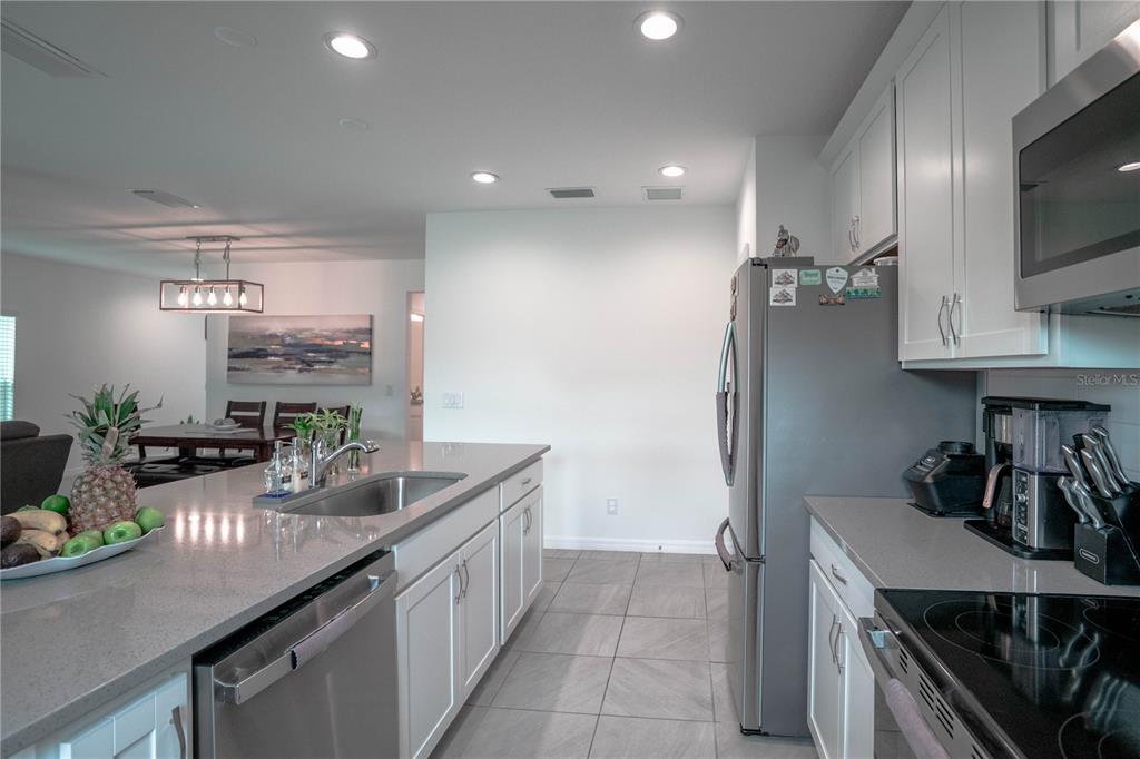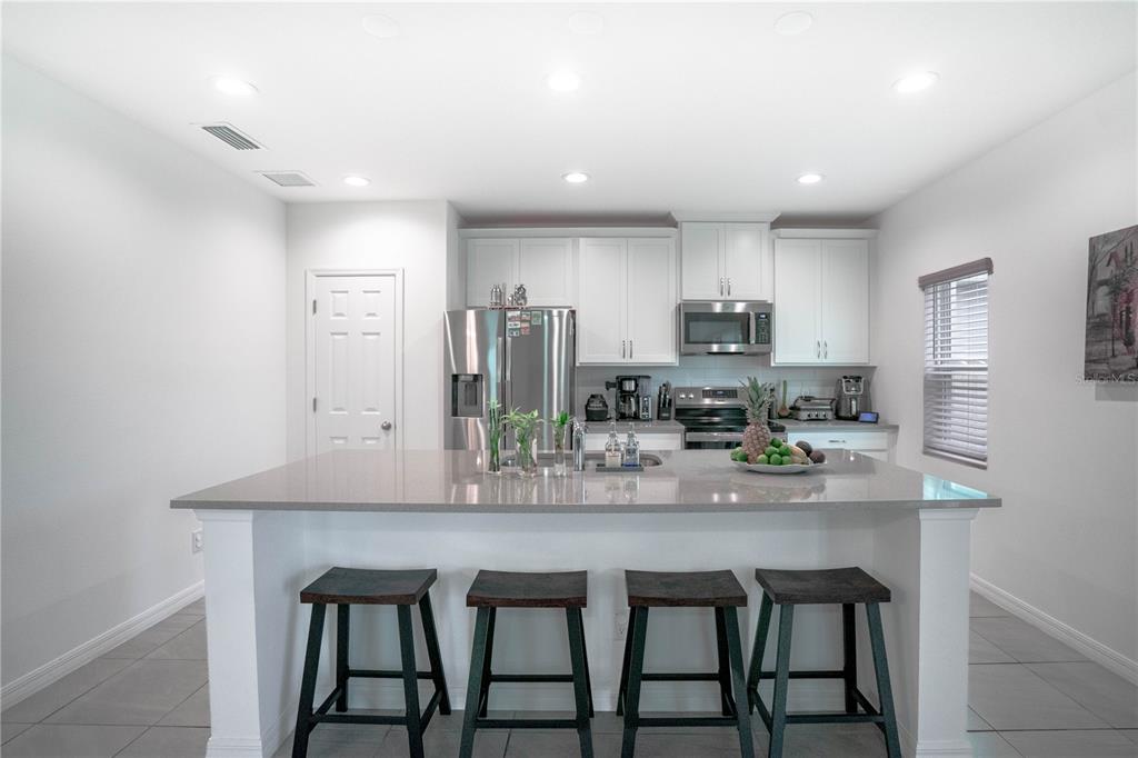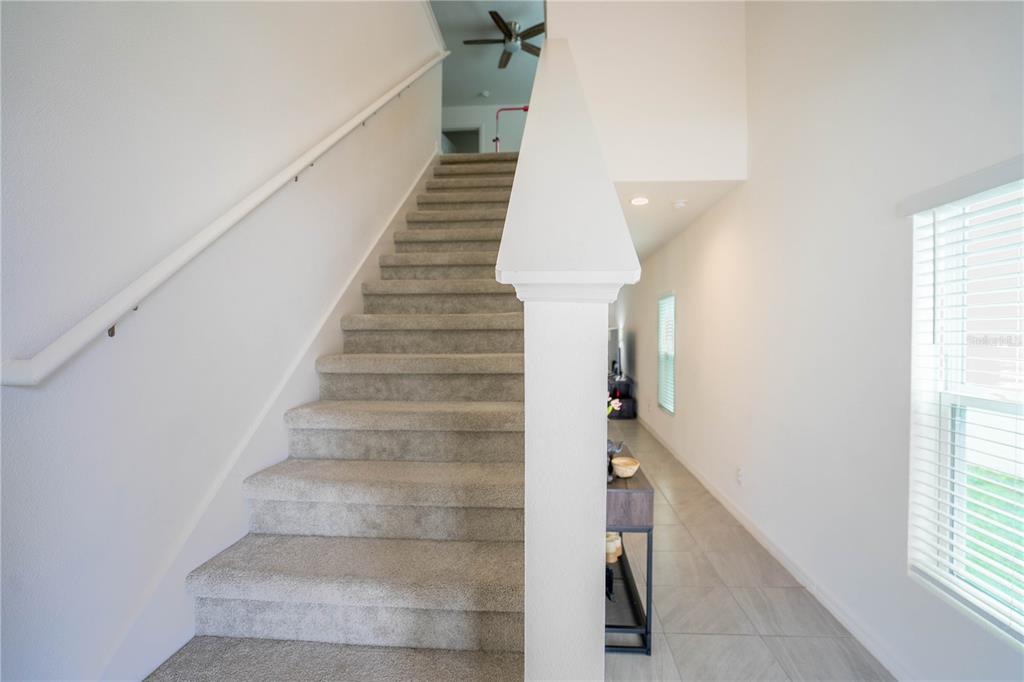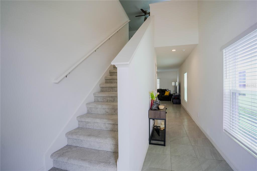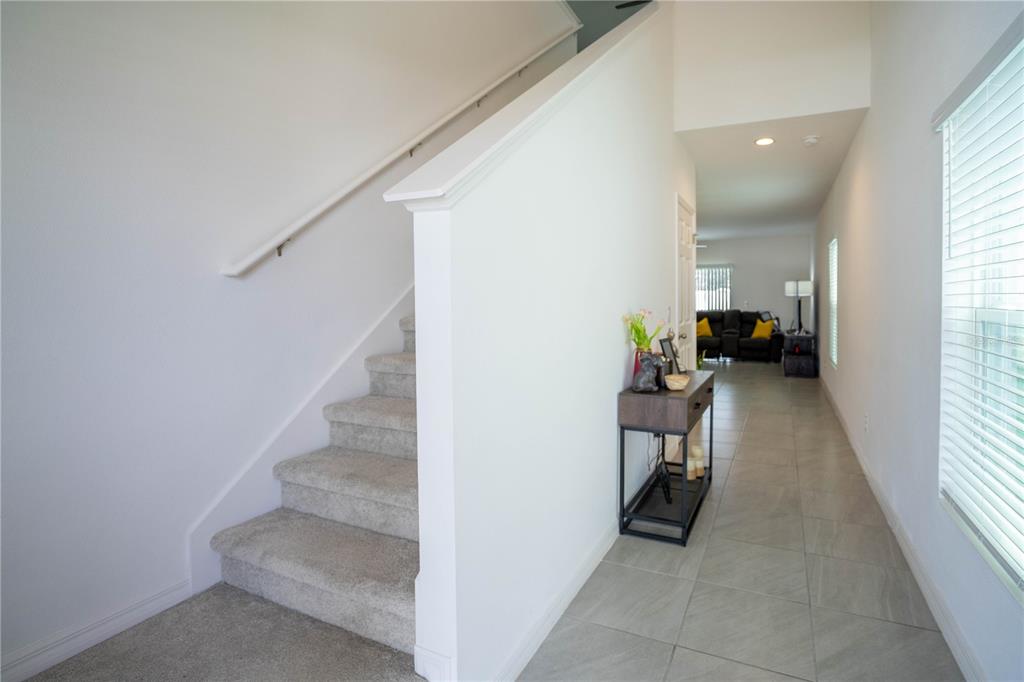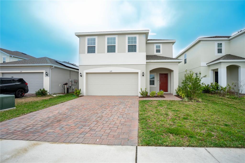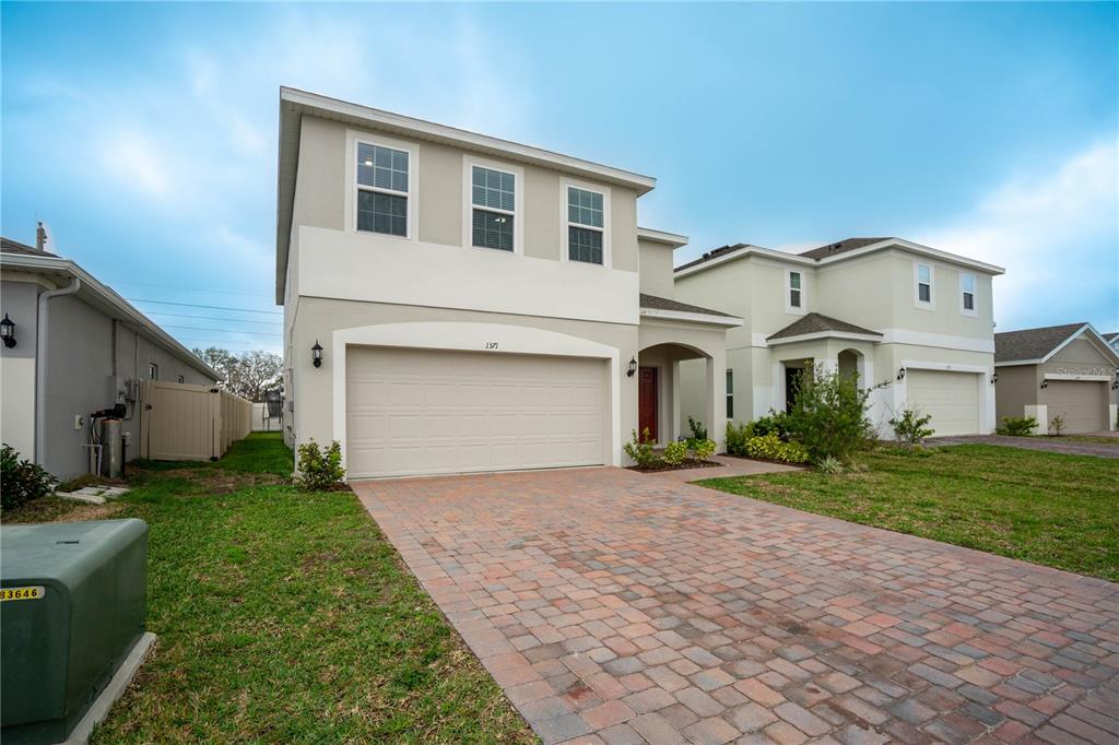 This beautiful house includes 4 bedroom, 2.5 baths, 2 car garage, and features a 1st floor den - perfect for a home office, and 2nd floor gathering space / loft. open concept family room overlooks rear covered lanai that's great for entertaining and outdoor living. beautiful kitchen features solid surface counter tops, 42" upper cabinets with crown molding, stainless steel appliances, and vented microwave. tile flooring is featured in 1st floor main living areas. primary en-suite includes spacious walk-in closet, dual sinks in adult-height vanity, and gorgeous shower with dual shower heads and frameless glass enclosure. high performance home with energy star appliances, led light bulbs, hybrid hot water tank and smart home technology. exterior features include brick paver driveway and lead walk, along with landscape package with front yard irrigation. community is close to shopping and dining areas and just 15 minutes to disney!1371 RED BLOSSOM, KISSIMMEE, FL 34746