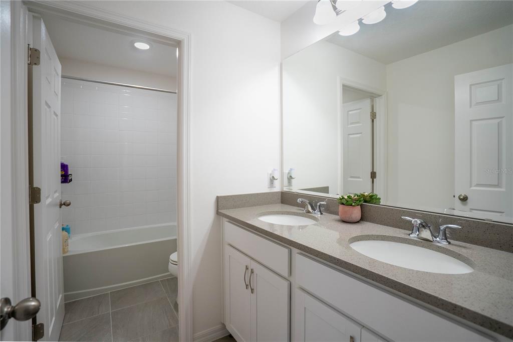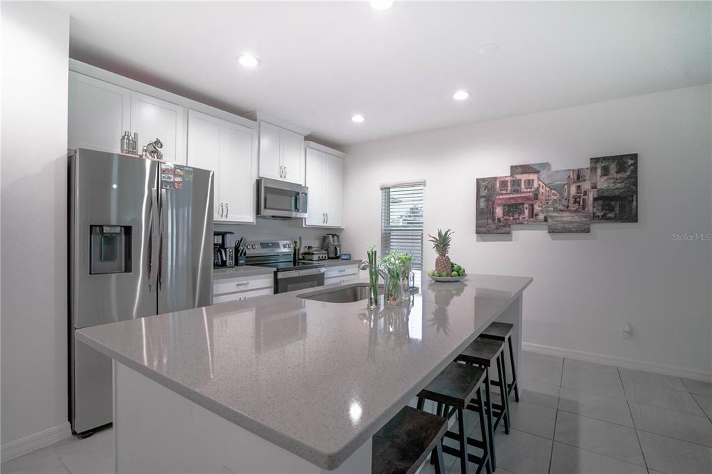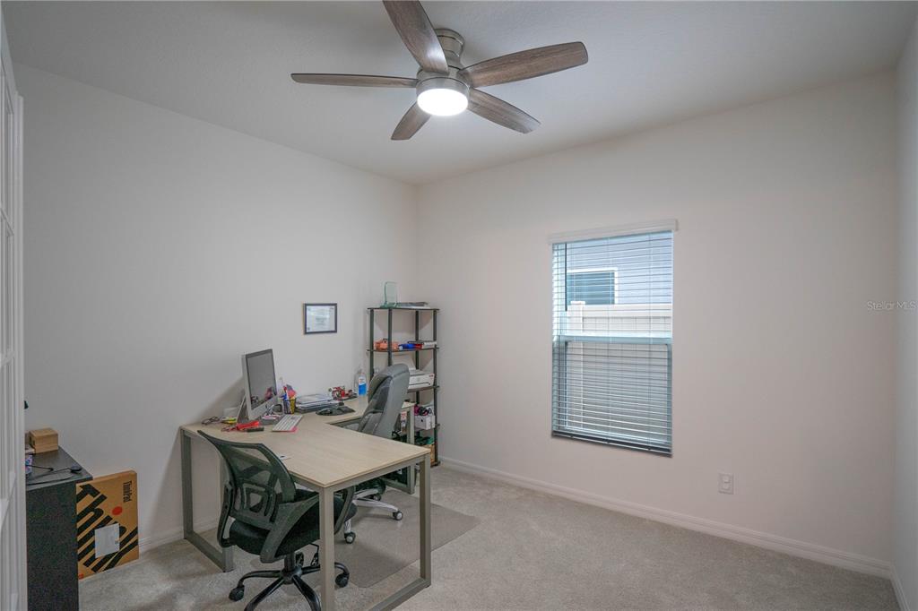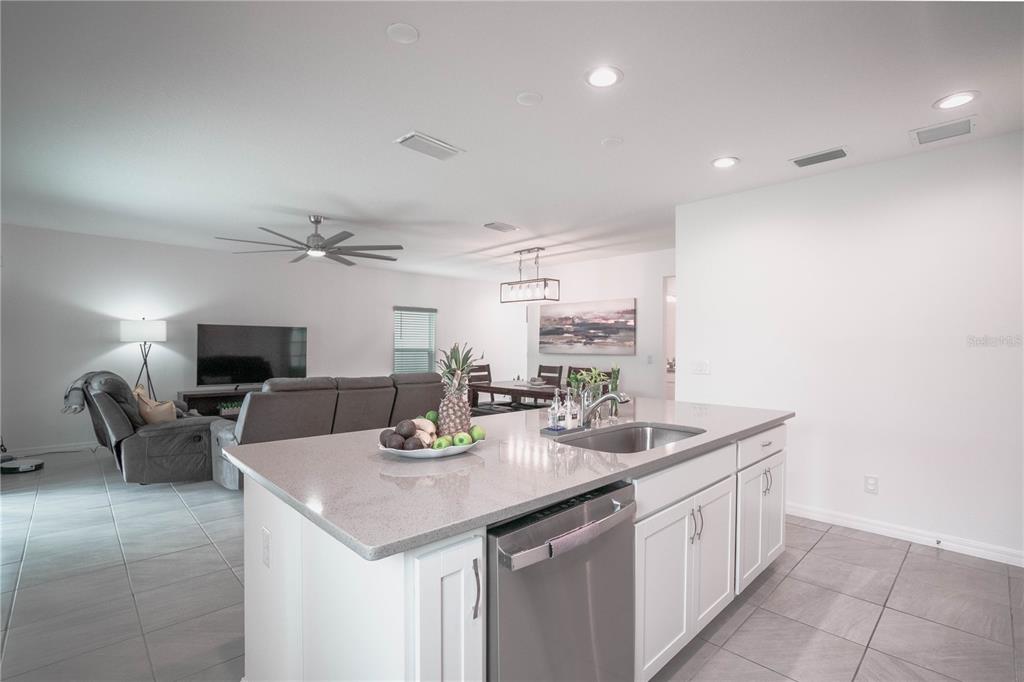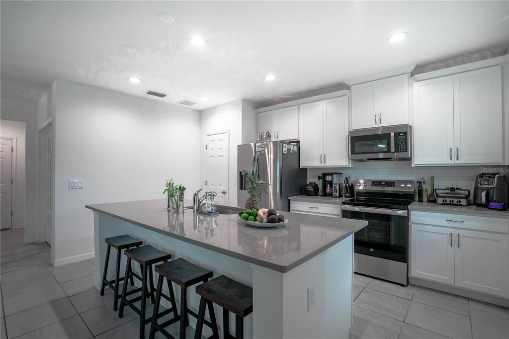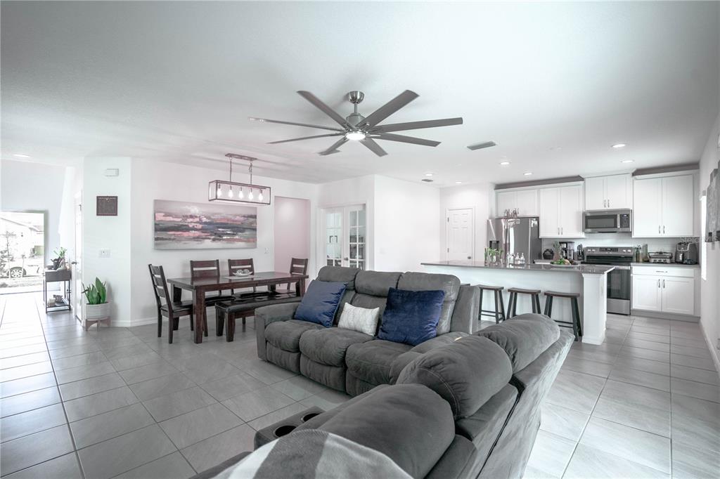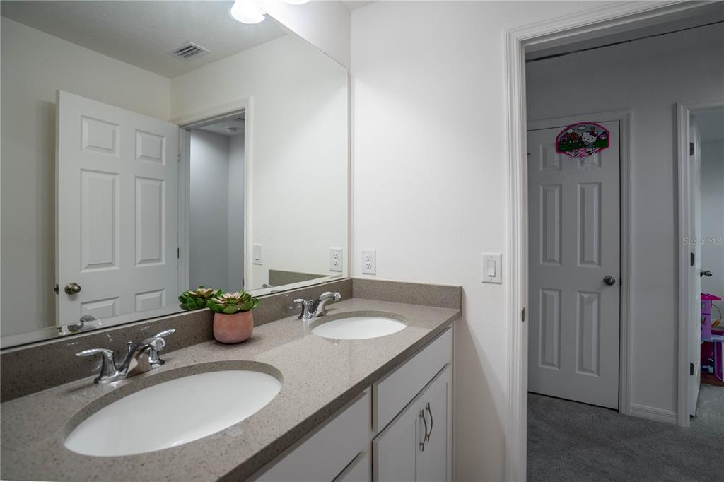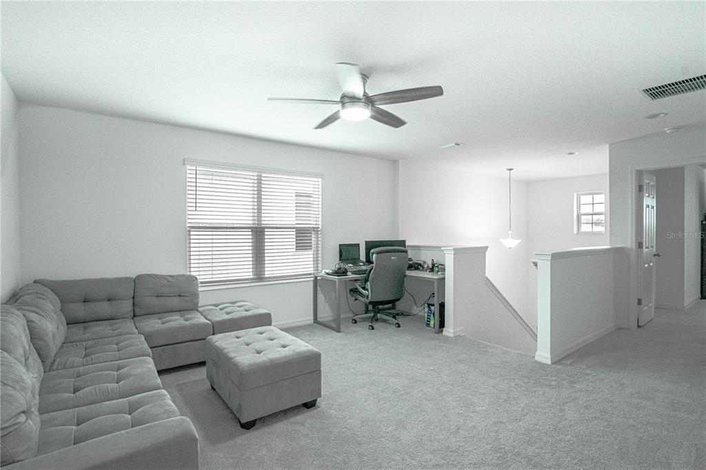 This beautiful house includes 4 bedroom, 2.5 baths, 2 car garage, and features a 1st floor den - perfect for a home office, and 2nd floor gathering space / loft. open concept family room overlooks rear covered lanai that's great for entertaining and outdoor living. beautiful kitchen features solid surface counter tops, 42" upper cabinets with crown molding, stainless steel appliances, and vented microwave. tile flooring is featured in 1st floor main living areas. primary en-suite includes spacious walk-in closet, dual sinks in adult-height vanity, and gorgeous shower with dual shower heads and frameless glass enclosure. high performance home with energy star appliances, led light bulbs, hybrid hot water tank and smart home technology. exterior features include brick paver driveway and lead walk, along with landscape package with front yard irrigation. community is close to shopping and dining areas and just 15 minutes to disney!1371 RED BLOSSOM, KISSIMMEE, FL 34746