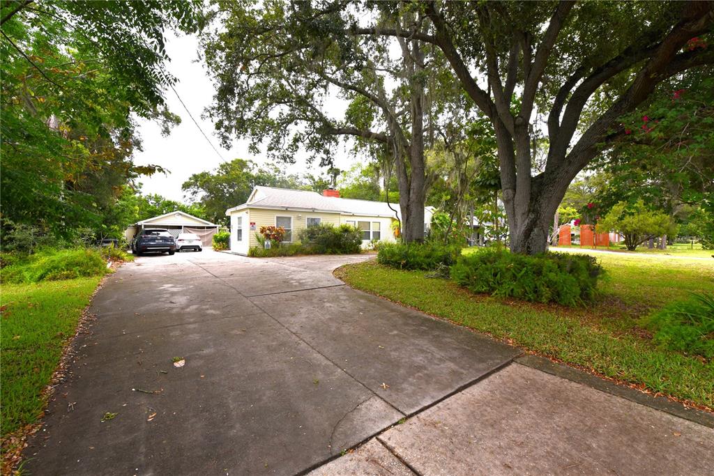 Amazing opportunity in clearwater florida! this home is located on an oversized lot, almost half an acre of land (0.41 acres) and has a front view on the clearwater country club, golf course. there are two separate homes, a 1780 square feet charming cottage with 4 bedrooms and 2 bathrooms and a separate in-law apartment, guests house with a car garage, a storage room and a carport attached to it, with 420 square feet of living area, 200 square feet of garage, 170 square feet of storage room that could be easily added to the guest home, 240 square feet of carport. the main 1780 sq ft home boasts a primary bedroom with an en-suite remodeled bath and two more bedrooms + another remodeled full guest bath on the same side of the house, while a large bedroom is on the opposite side with a separate entry door, that could work as a home office. the large kitchen has been partially remodeled, featuring a newer quartz countertop, white cabinets, newer appliances and it flows in to the dining room that then opens up into the large living room that centers onto the fireplace. the large covered florida screened room overlooks the large back garden. when you enter the guest house, in-law apartment, you will be pleasantly surprised by the front ample covered porch, the large remodeled kitchen that functions as a small dining living room as well and by the large extra room, and then one remodeled bath + large walk in closet off the kitchen. both the houses are tiled throughout. one of the best features of this home is the oversized expensive concrete parking pads and driveway that goes well into the side and back of the house, so you can park all of your toys. this home is located about 2 miles from downtown clearwater, 3.2 miles from downtown dunedin, and 5.2 miles from clearwater beach. centrally located, you will be able to live in it while you rent the in law apartment and cover part of your mortgage, or just enjoy your hoa free life. this home is not in a flood area, it is in a x zone, high and dry part of pinellas county.1372 PALMETTO, CLEARWATER, FL 33755