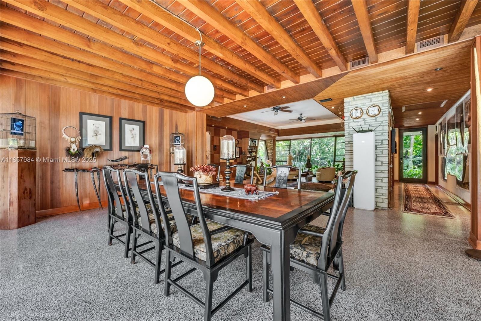5-acre mid-century modern masterpiece in the redland, designed by alfred browning parker (protégé of frank lloyd wright). this private, gated sanctuary offers 5,394 sf under a/c between the main home & two cottages, plus 1,499 sf of detached studios & a 410 sf open-air workshop. the main home stuns w/ soaring tongue & groove ceilings, terrazzo floors, walls of glass to the pool, viking/sub-zero/wolf kitchen, fireplace & hurricane-safe room. a 1,269 sf guest cottage & 667 sf casita generate up to $4k/mo rental income. grounds rival fairchild tropical garden—orchids, rare bamboos, exotic fruit trees—plus art studio & woodshop. features: well water, 3-phase power, ag exemption, tesla-ready electrical. no neighbors for ¼ mile. seller financing. 2 folios (30-6915-000-0660 & 30-6915-000-0670)13831 SW 232ND ST, MIAMI, FL 33170