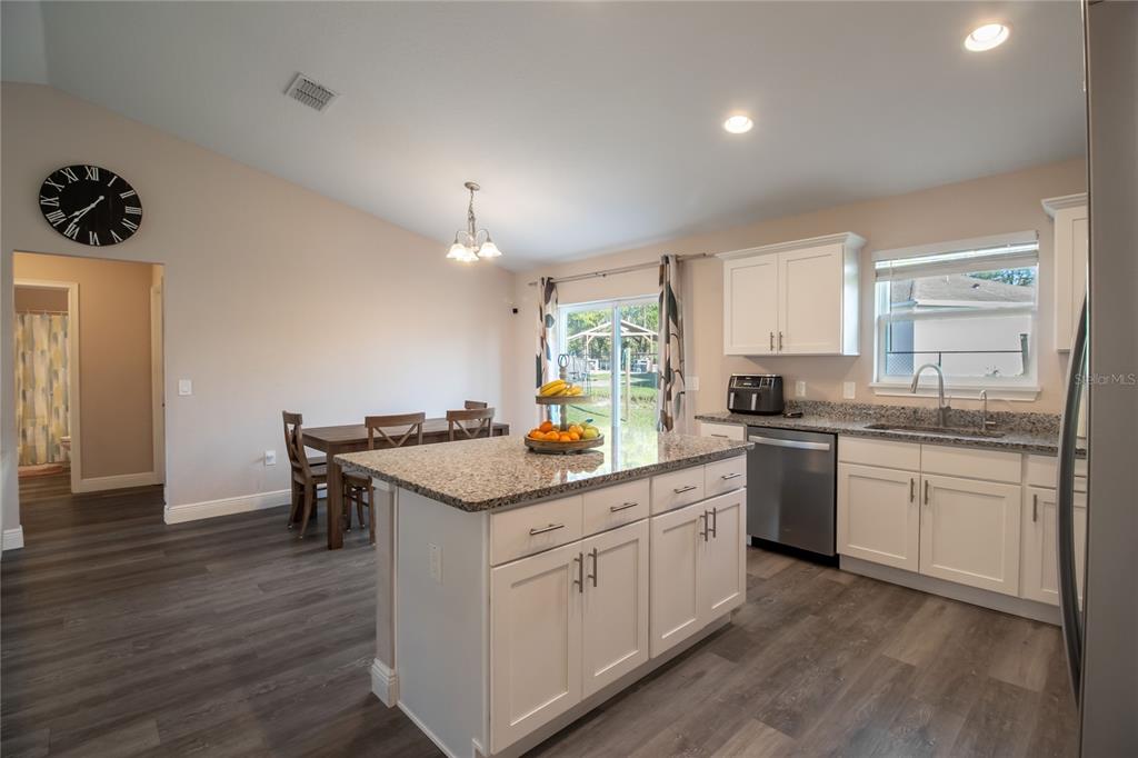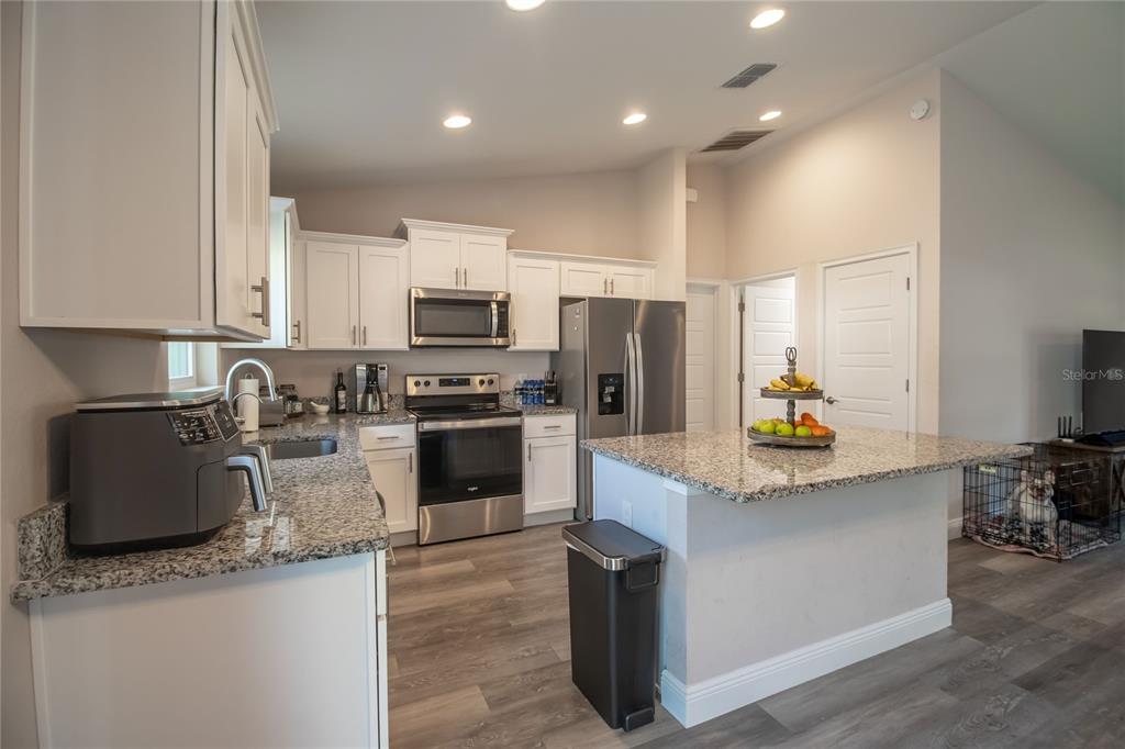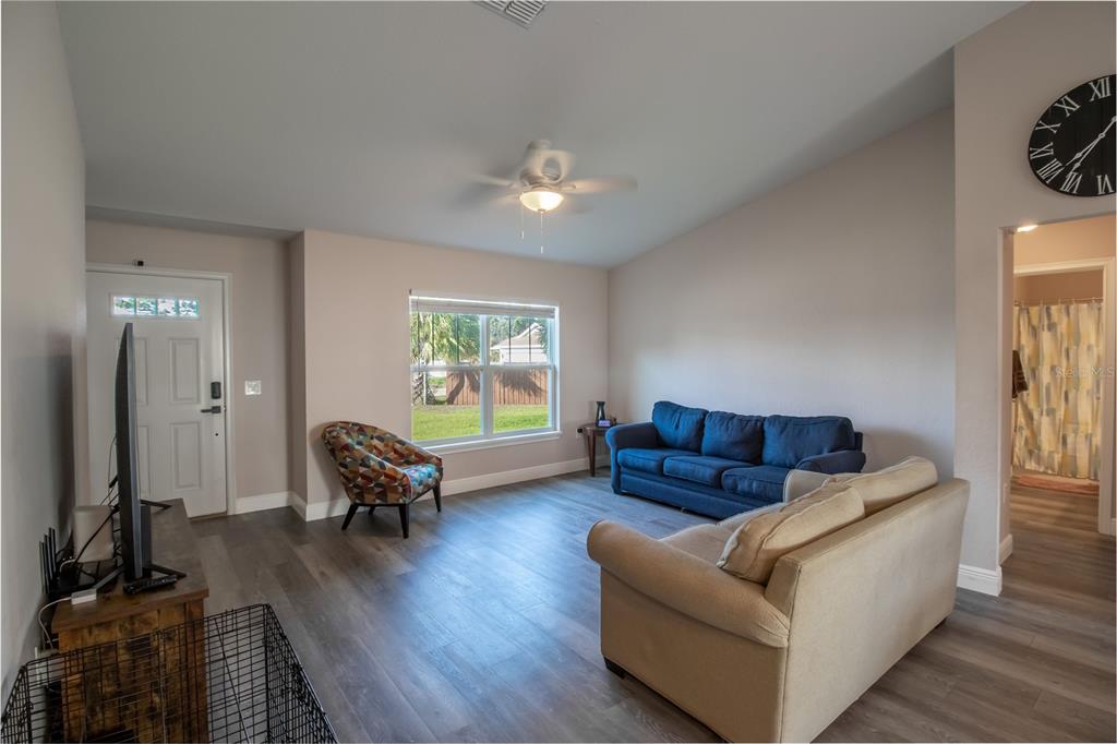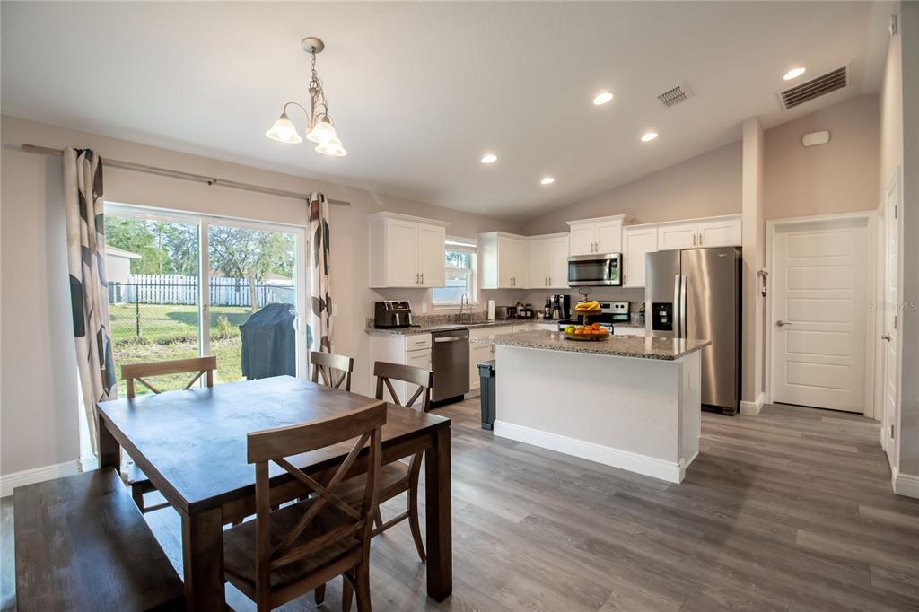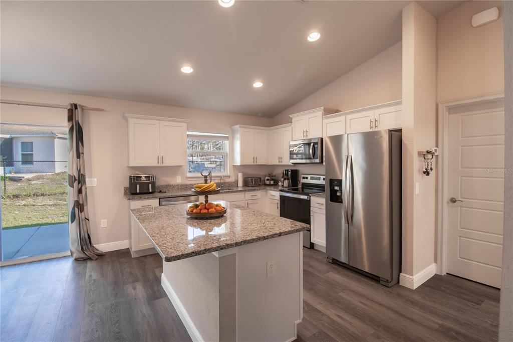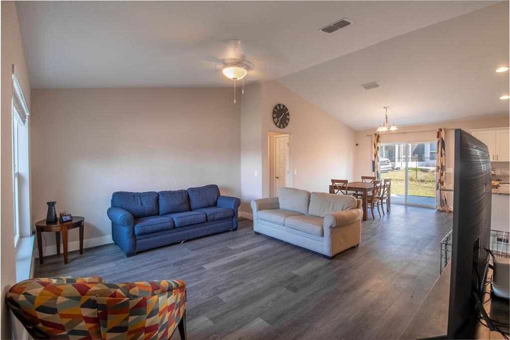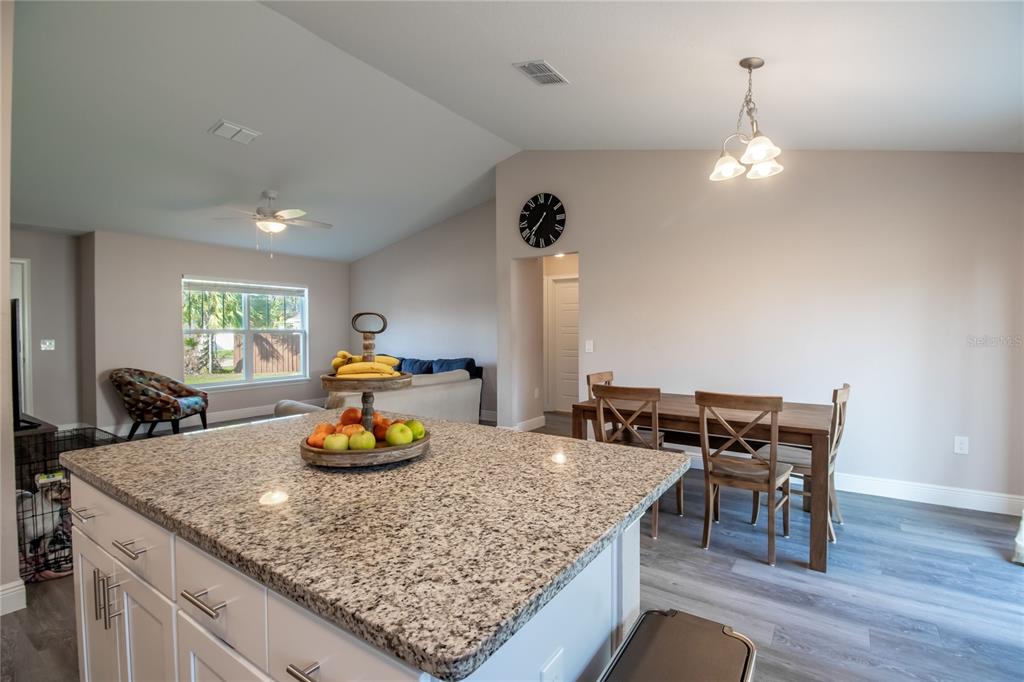 The popular hemlock ii model offers a spacious, open-concept design with a vaulted ceiling that enhances the sense of space. this home is filled with thoughtful upgrades throughout. the kitchen boasts elegant granite countertops and soft-close all-wood cabinetry. throughout the home, you'll find stylish plank-style flooring with no carpeting. the expansive concrete patio provides a perfect view of the large backyard. the master suite is a true retreat, featuring a tray ceiling, a walk-in closet, dual vanities, and a beautifully tiled recessed shower stall. a designer lighting and plumbing package adds to the home's appeal. this is a must-see property!14 HEMLOCK LOOP CT, OCALA, FL 34472