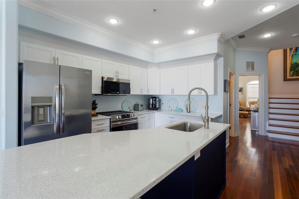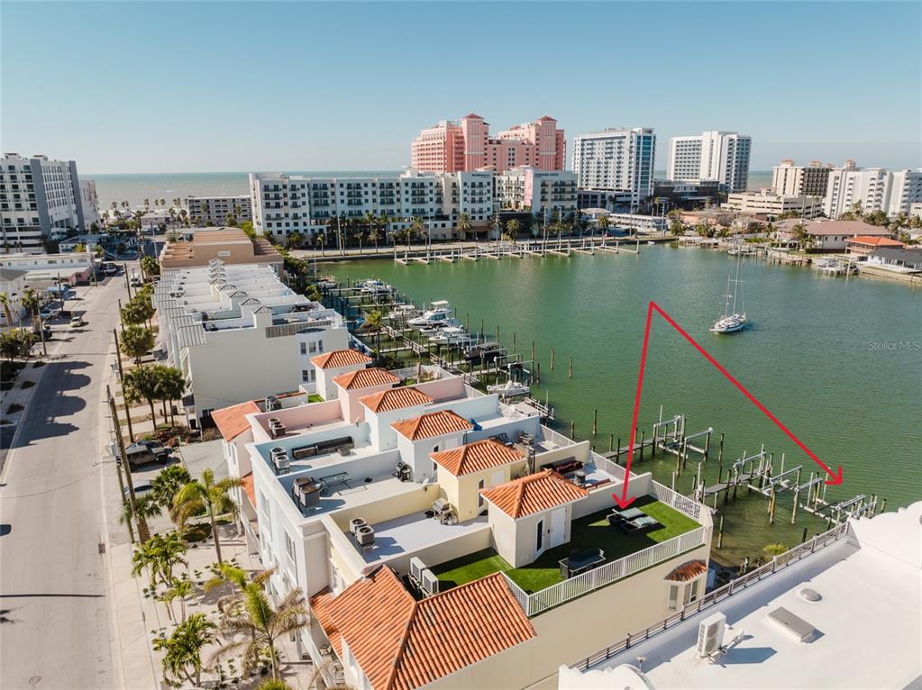 Rare find - all this and a 5-minute walk to clearwater beach, restaurants and shopping! premium waterfront community – harborside townhomes! 4 level luxury townhome with deepwater boat slip with lift, 3 car garage - half converted into bonus room, rooftop terrace with $11k turf upgrade, impact windows, private elevator that services all floors including rooftop terrace, low $575 monthly fee and allows 7-day rentals - a very rare find! this well-kept 3 bedroom, 3 bath townhome has 10-foot ceilings and a private elevator that serves all 4 floors. the updated kitchen, with pantry, opens to a light and bright spacious living area with amazing water views and slider access to your private balcony. brazilian cherry wood floors grace the kitchen, hallways and living/family areas. the master suite is a retreat in itself with a sitting area, adjacent walk-in closet and spacious bathroom boasting dual vanities, a jacuzzi garden tub, spacious shower and water closet. the expansive roof top terrace, with $11k artificial turf upgrade, has great views of the intercoastal, partial gulf views and spectacular sunsets. only 6 units in the complex ensures there is plenty of space in and around the heated waterfront pool area. new 2022: ac, rooftop turf, boat lift, stove, dishwasher, microwave, refrigerator. kitchen remodel 2023 including beautiful new quartz countertop. located alongside the popular clearwater beach and all it has to offer: recreation, shopping, fine dining and nightlife. two international airports 30-40 minutes away. tv’s and mounts have been removed from the living room, 2nd level guest bedroom and ground floor bonus room. included: american home shield complete 1 year buyer’s warranty.140 BRIGHTWATER #6, CLEARWATER BEACH, FL 33767